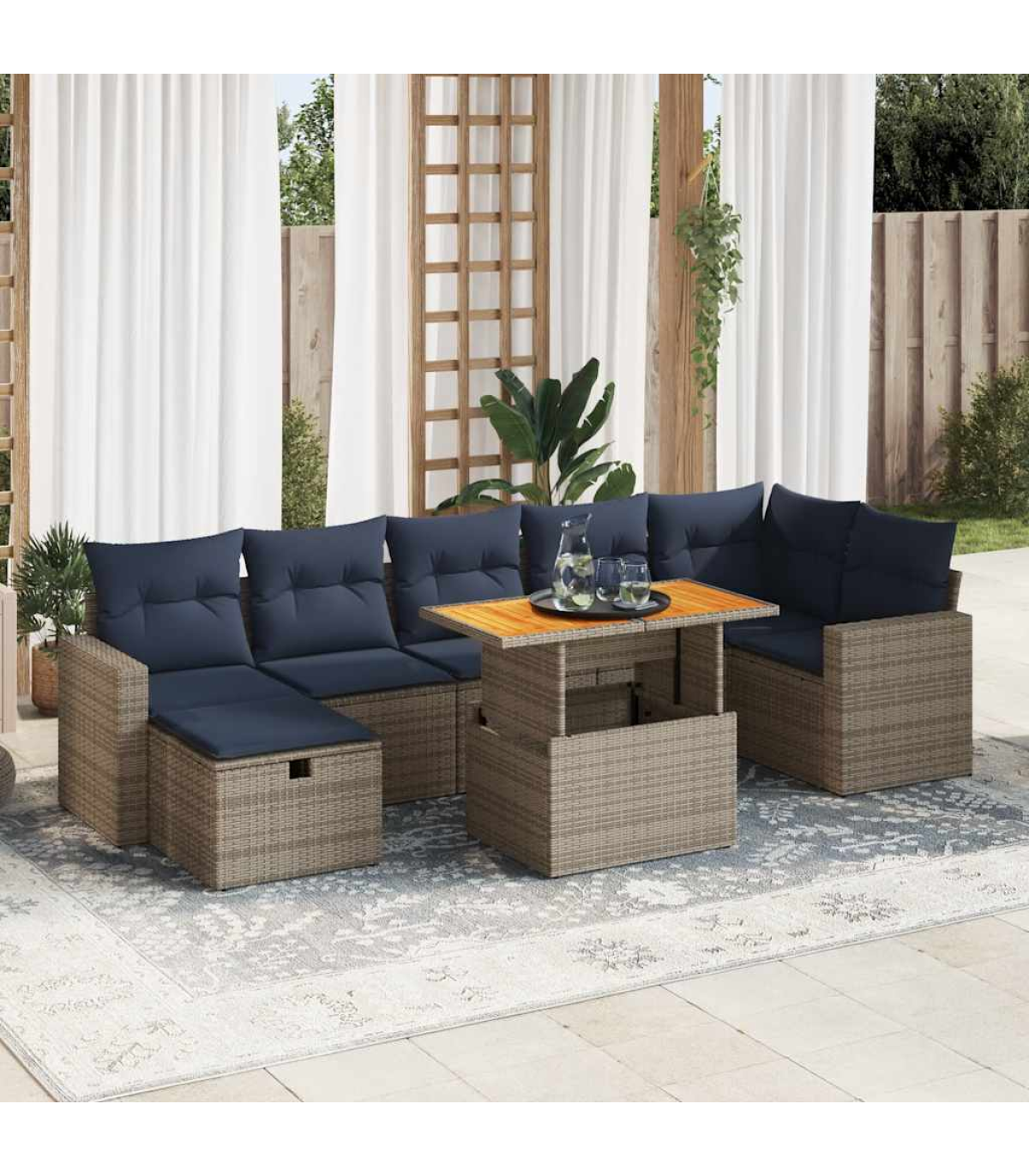 vidaXL 8 Piece Garden Sofa Set with Cushions Brown Poly Rattan Acacia