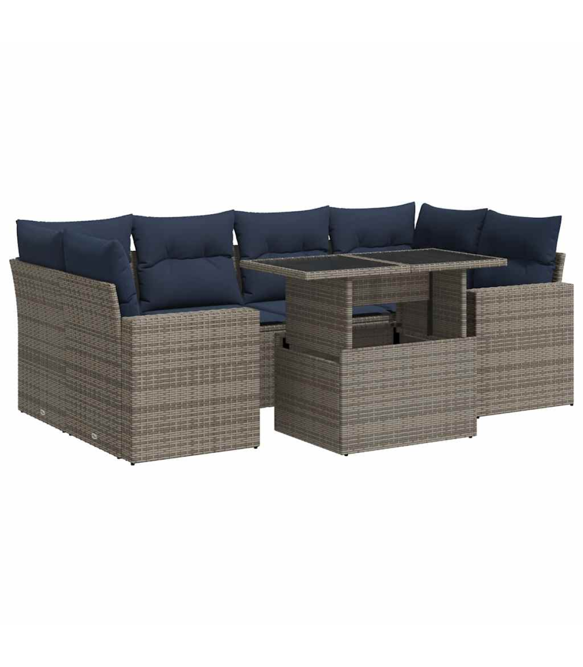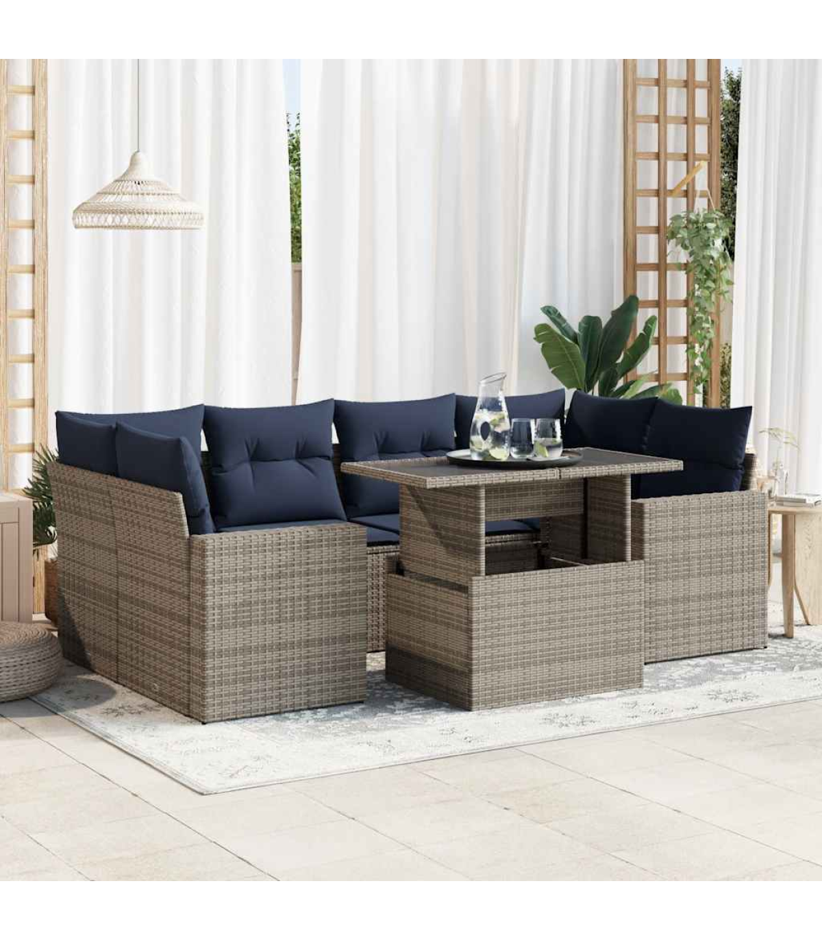 vidaXL 7 Piece Garden Sofa Set with Cushions Grey Poly Rattan Acacia