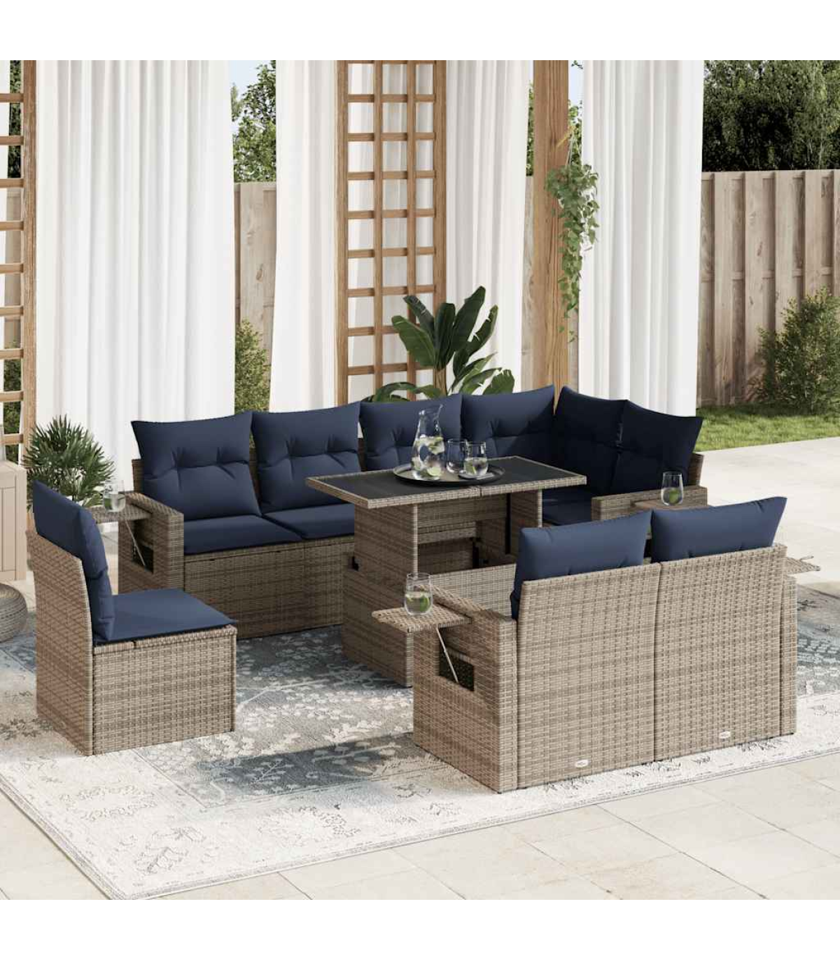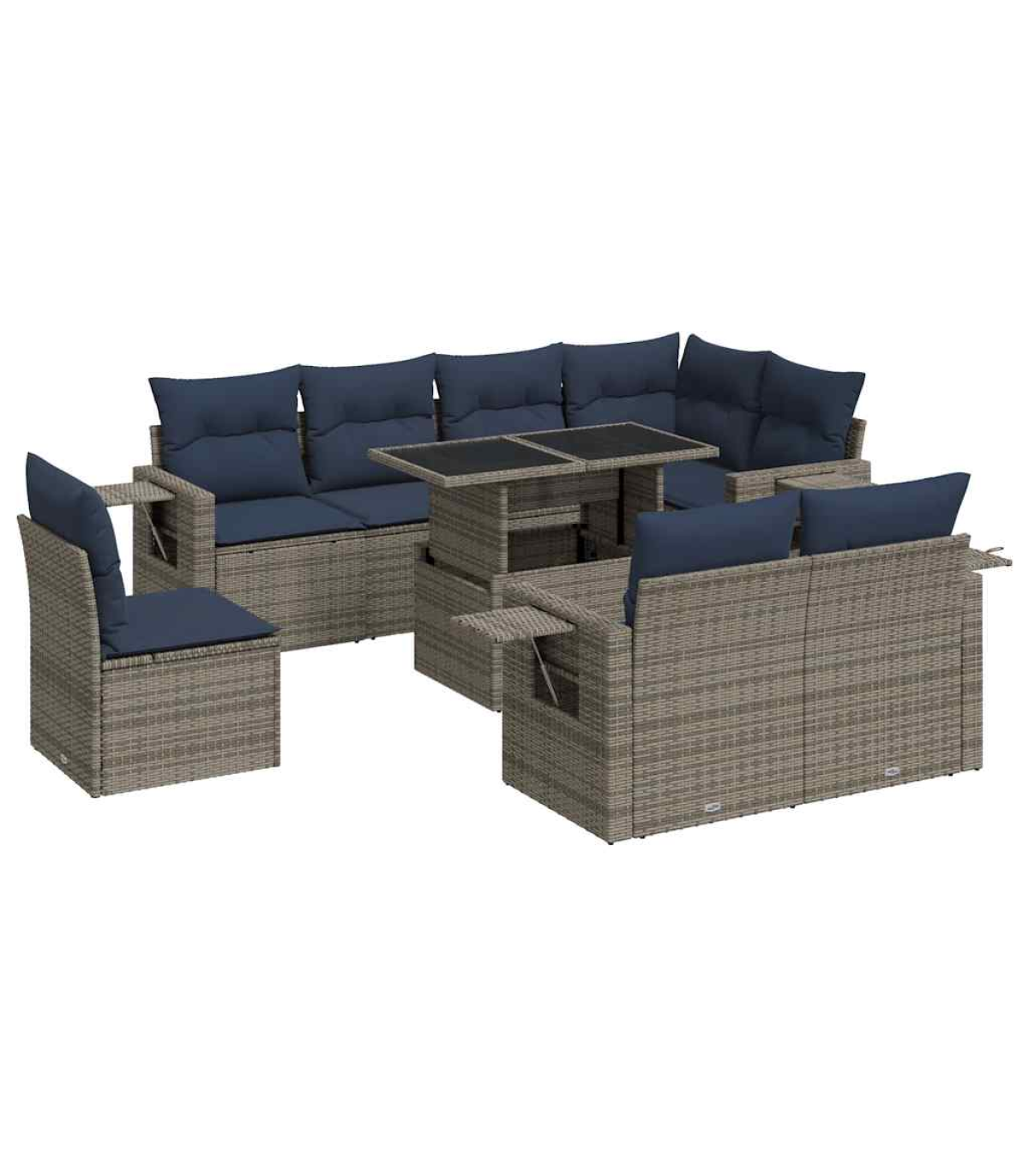vidaXL 9 Piece Garden Sofa Set with Cushions Brown Poly Rattan Acacia