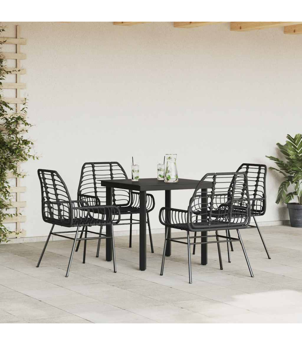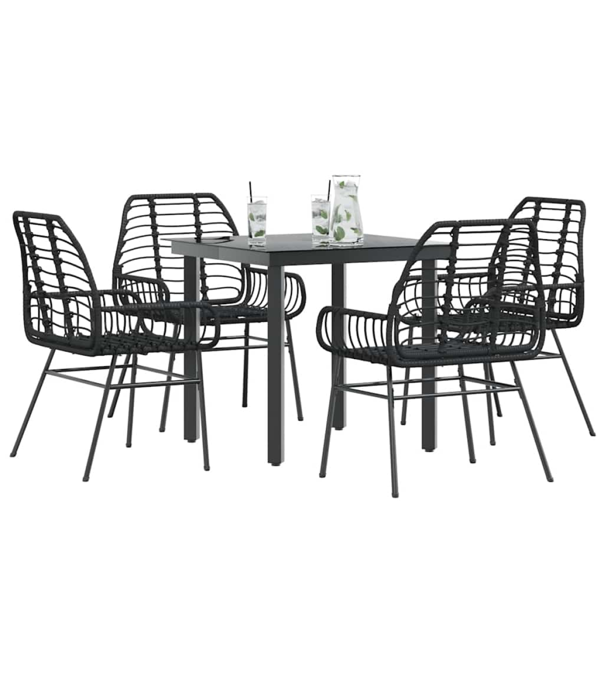 vidaXL 5 Piece Garden Dining Set Black Poly Rattan Glass