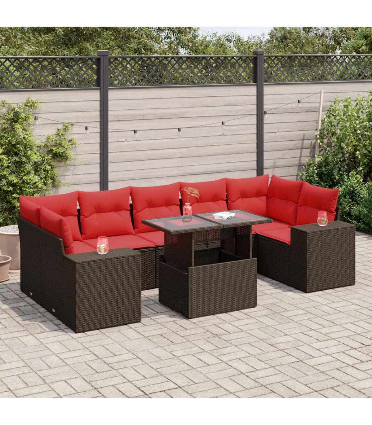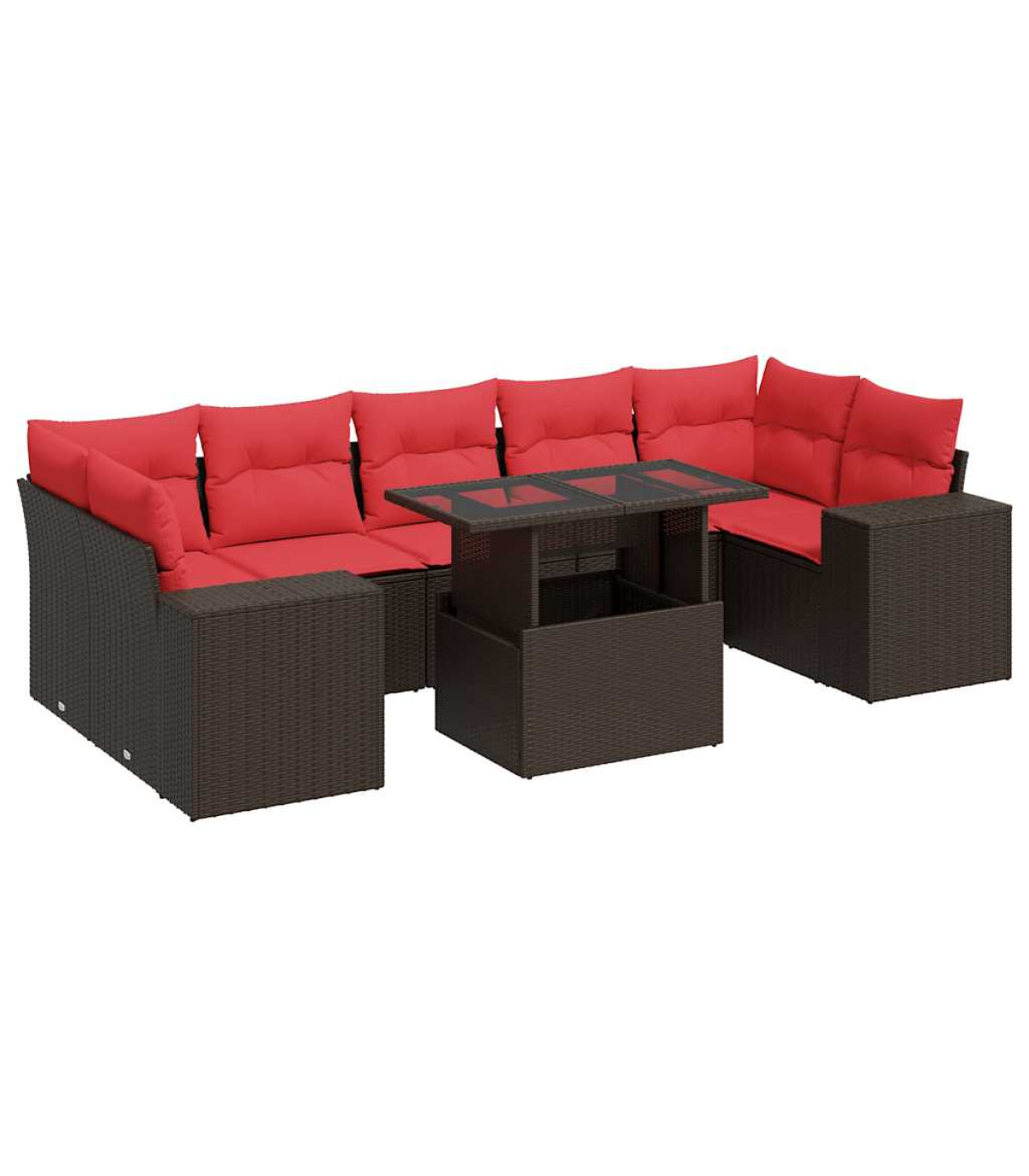 vidaXL 8 Piece Garden Sofa Set with Cushions Brown Poly Rattan Acacia