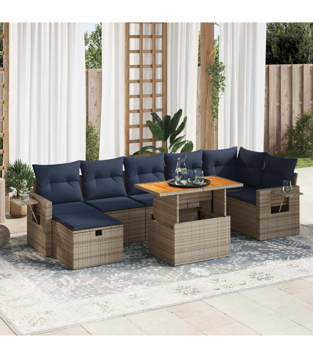 vidaXL 8 Piece Garden Sofa Set with Cushions Brown Poly Rattan Acacia