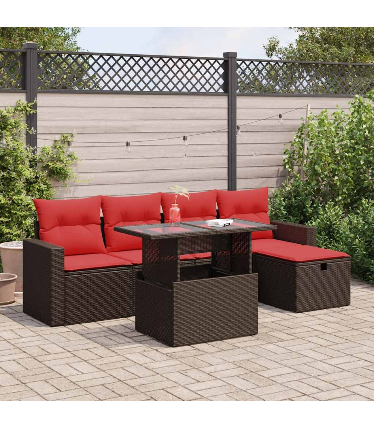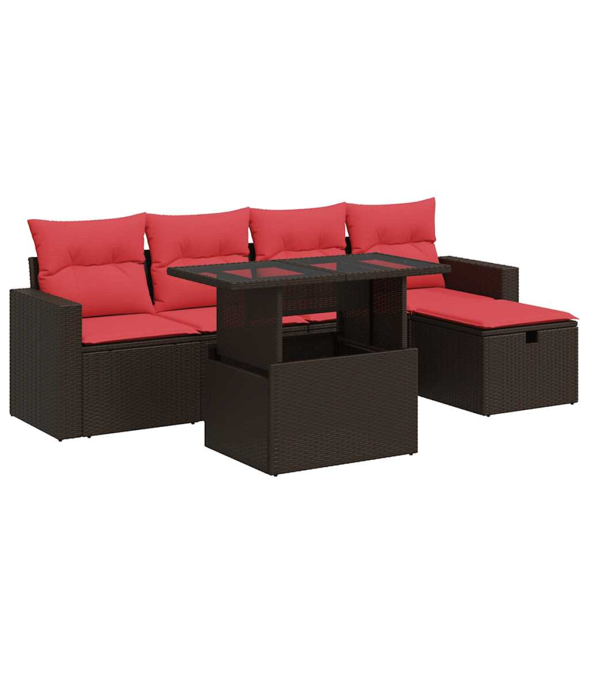 vidaXL 6 Piece Garden Sofa Set with Cushions Black Poly Rattan Acacia