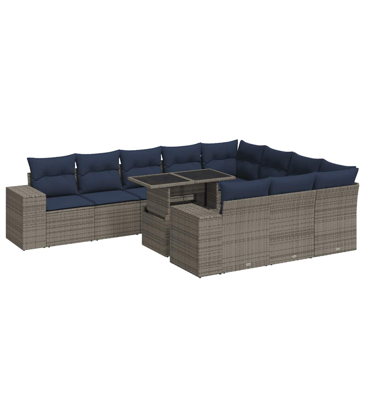 vidaXL 15 Piece Garden Sofa Set with Cushions Grey Poly Rattan Acacia