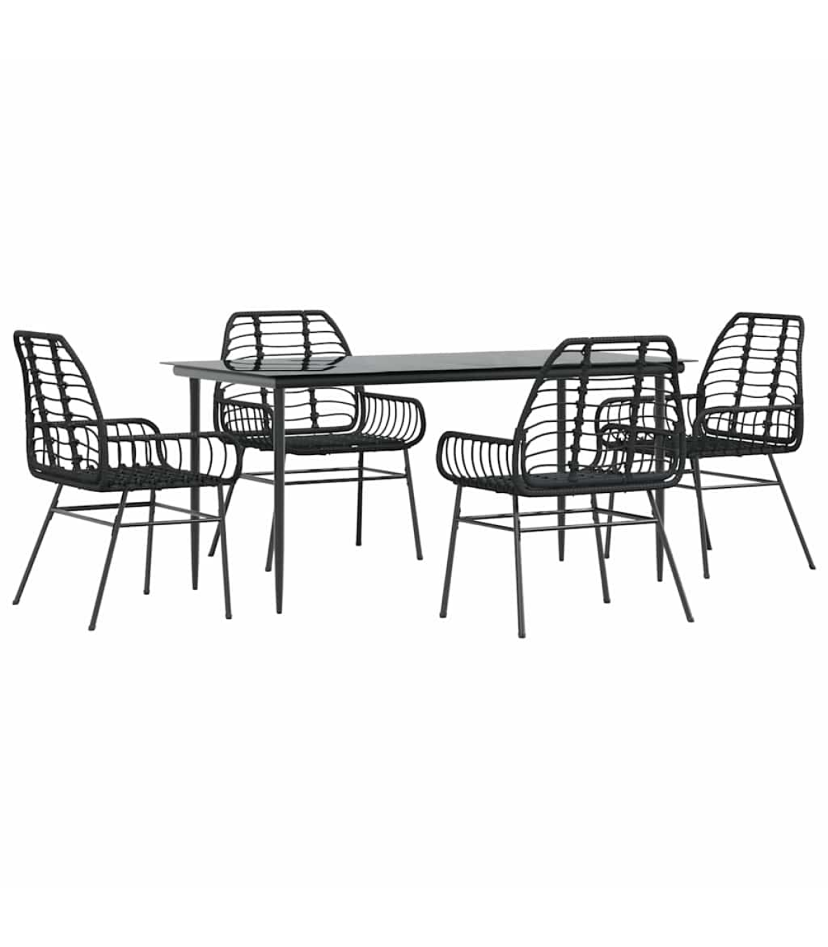 vidaXL 5 Piece Garden Dining Set Black Poly Rattan Glass