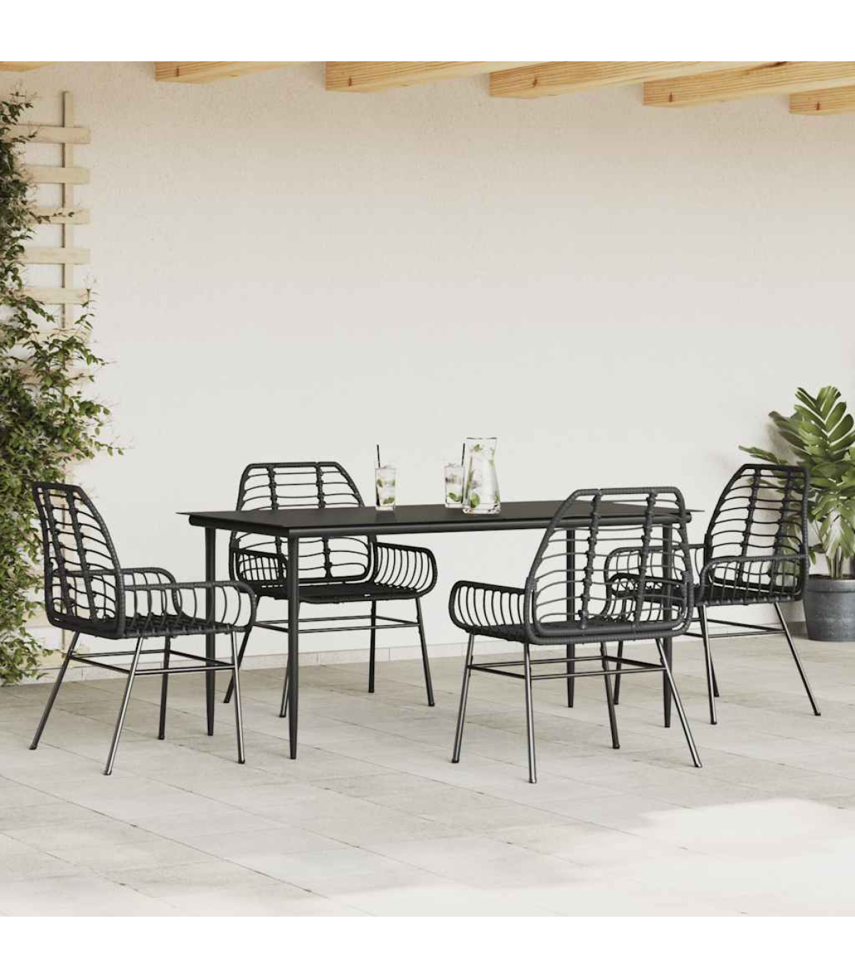 This garden dining set is a great choice for al fresco dining or just relaxing in the garden, backyard, or on the patio. Durable material: PE rattan, also known as poly rattan, is a strong, low-maintenance synthetic material that looks like natural rattan. It's lightweight, easy to clean, and commonly used for outdoor furniture due to its durability and weather-resistant properties.Robust and stable frame: The powder-coated steel frame is strong, stable, durable, and resistant to corrosion and harsh weather, ensuring long-lasting performance.Practical backrest and armrest: This garden chair features a backrest and two armrests that offer optimal support and comfort for users.Glass tabletop: The outdoor table's top is made from strong and durable tempered glass, making it easy to clean with a damp cloth and adding a touch of elegance to your outdoor space. Good to know:To make sure your outdoor furniture stays beautiful, we recommend protecting it with a waterproof cover. Maximum 110 kg per seat.