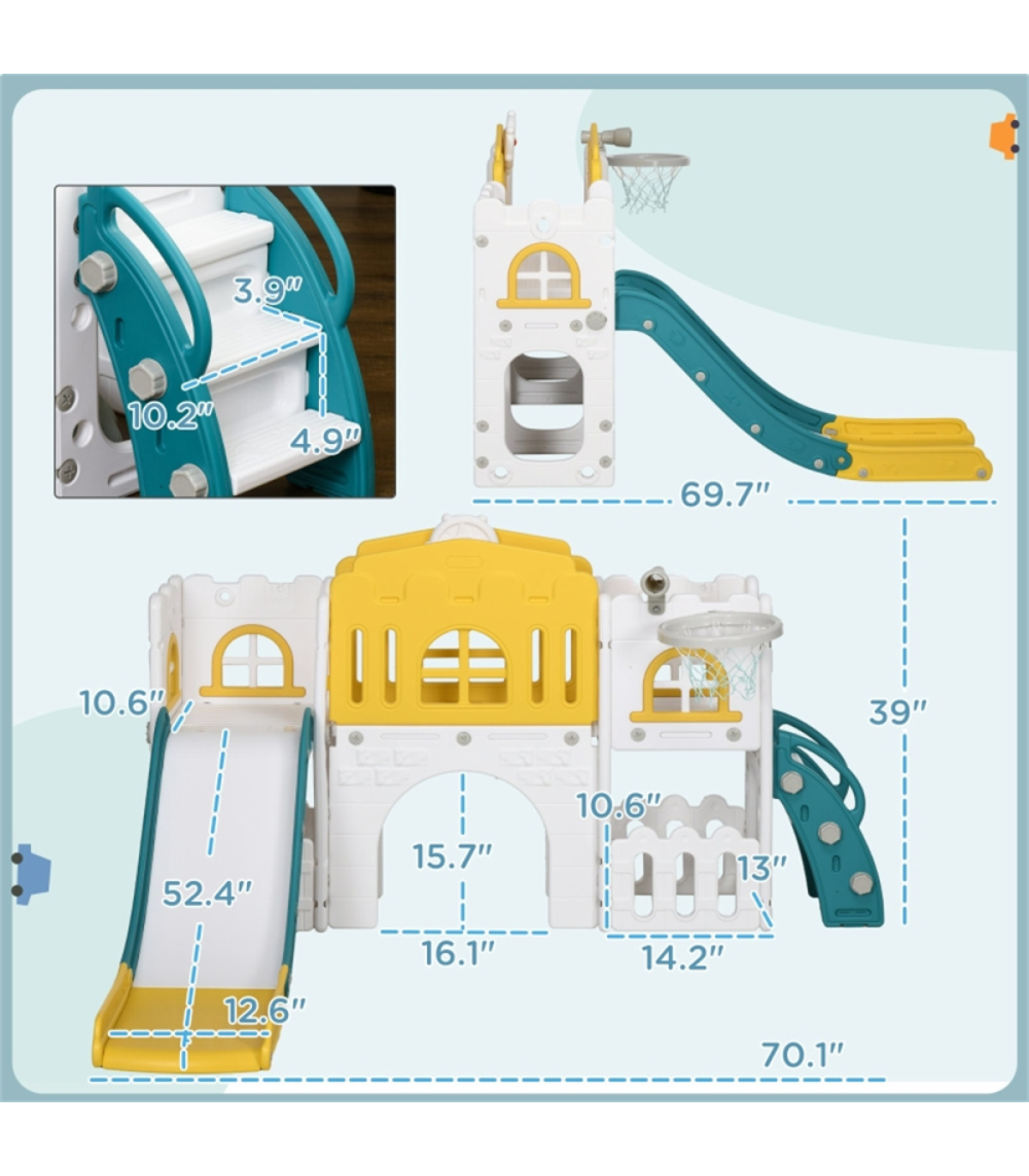 - - Slide: 52.4" L x 12.6" W x 20.5" H