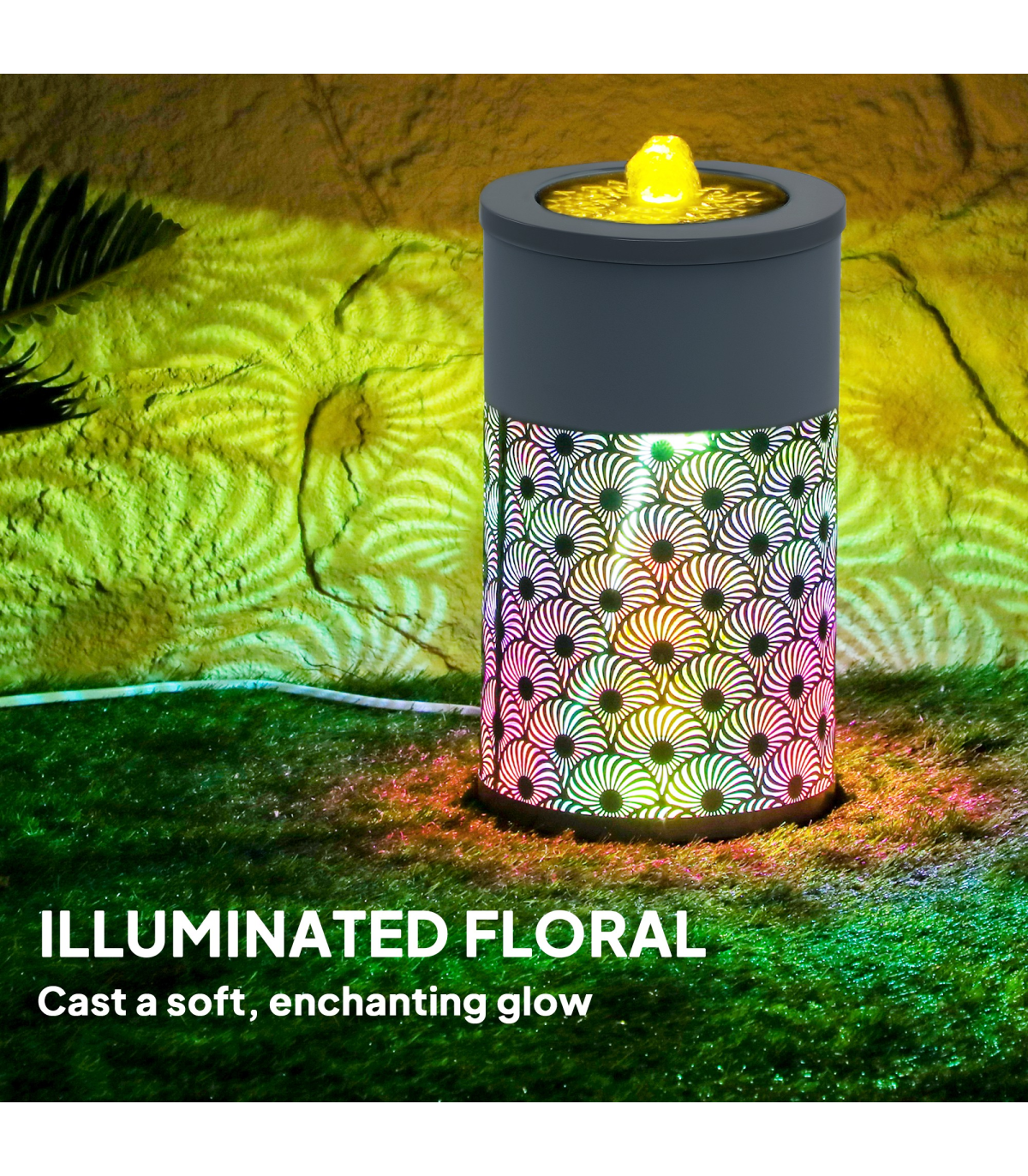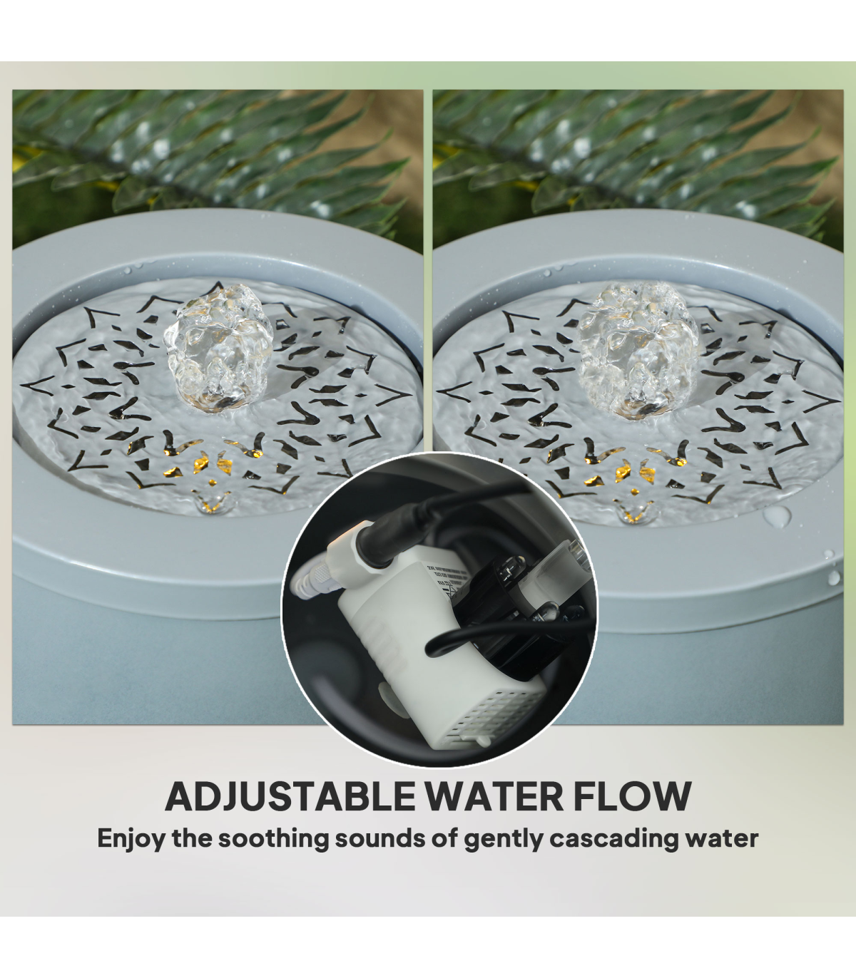 ● Water sprays from the top, creating a soft, tranquil ambiance