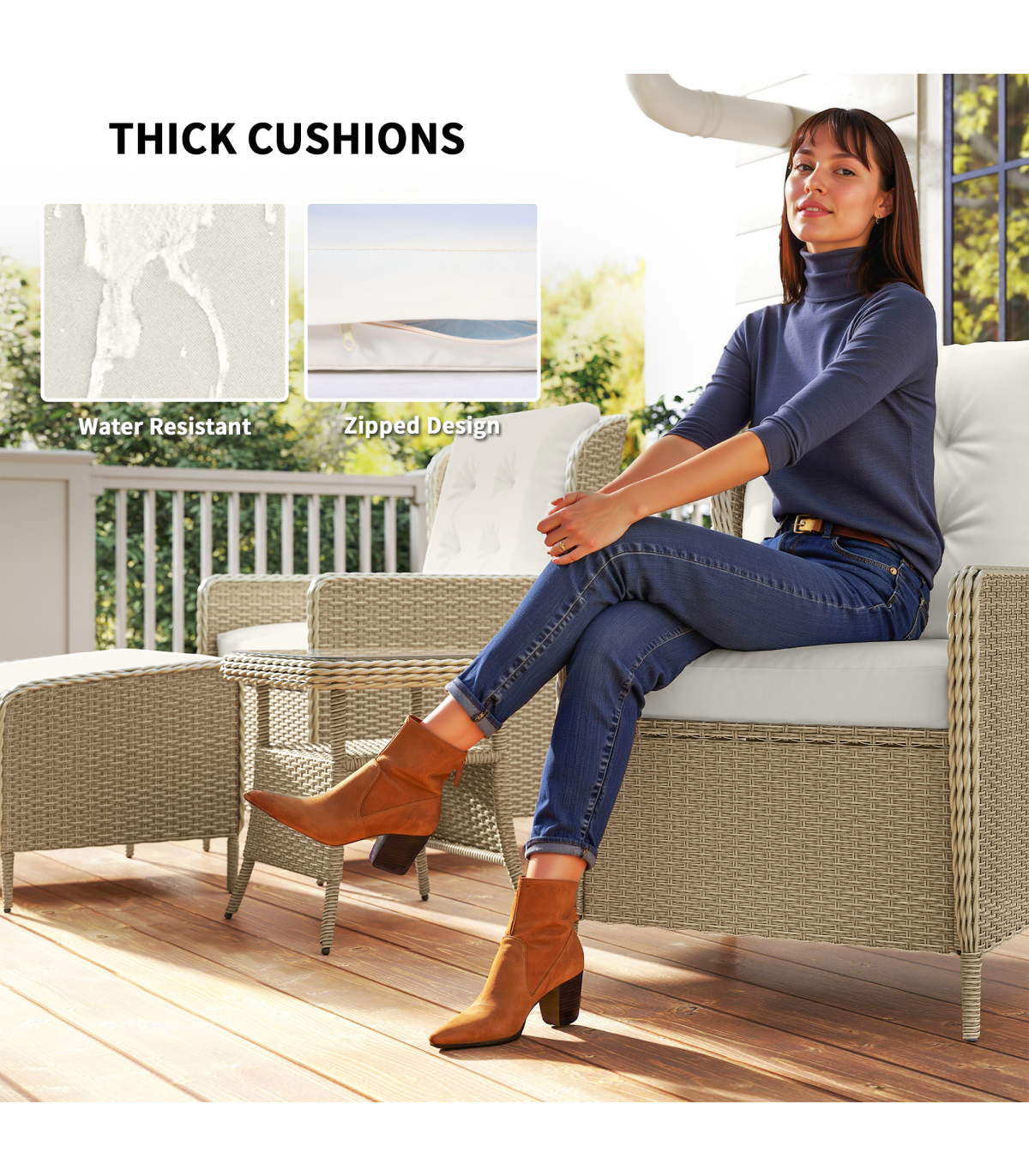 ● Cushion Thickness: 8 cm (seat/footstool), 14 cm (back)