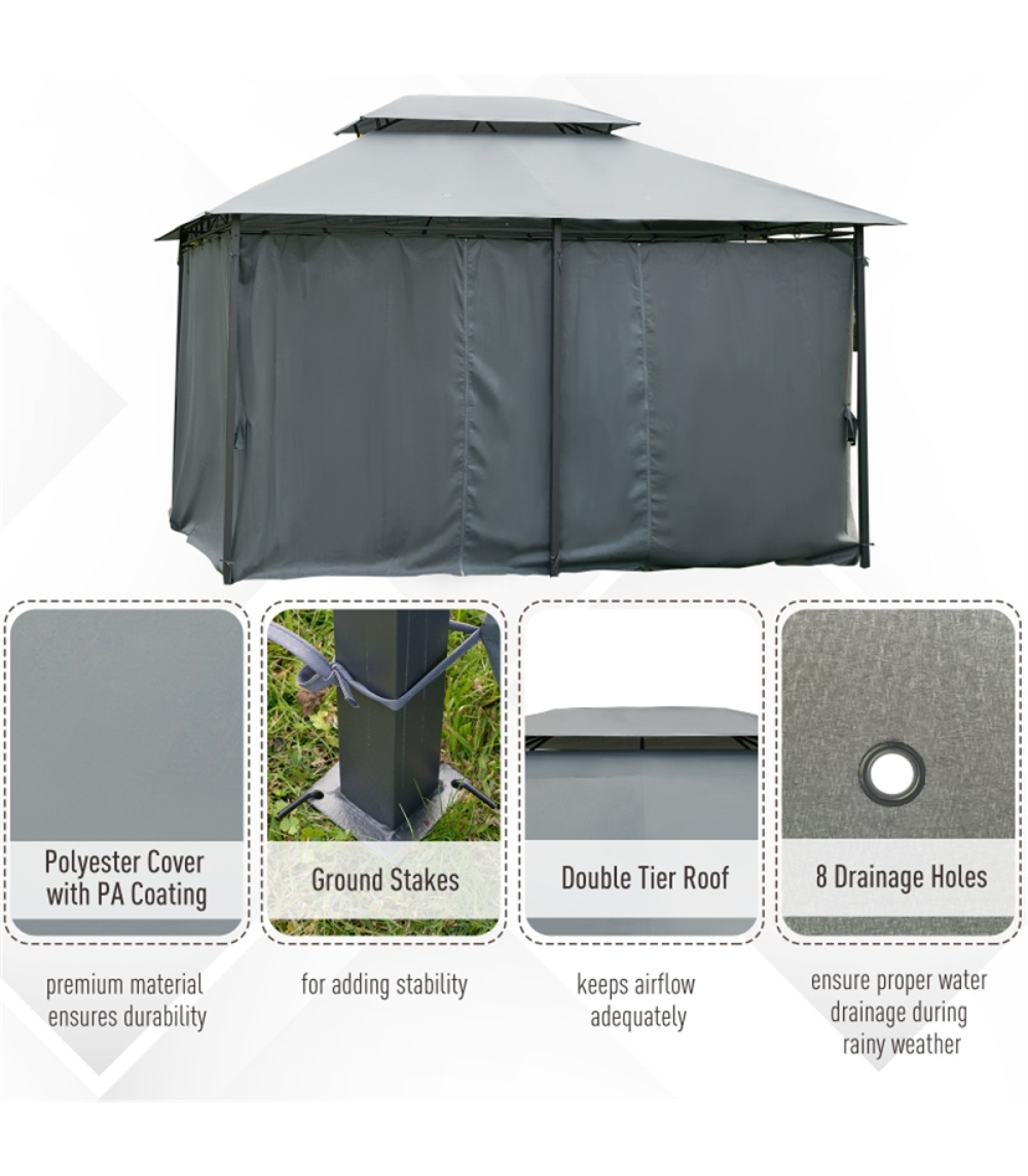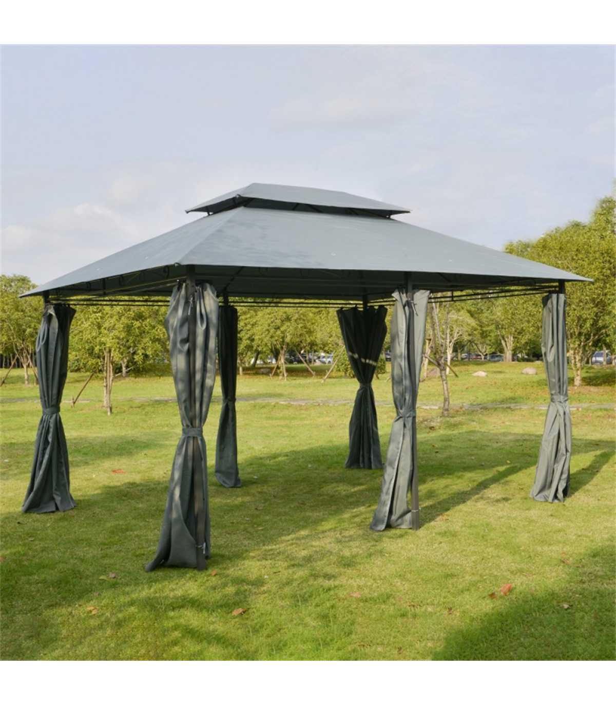 - - Gazebo with a two-tier fabric canopy for supplying shade
