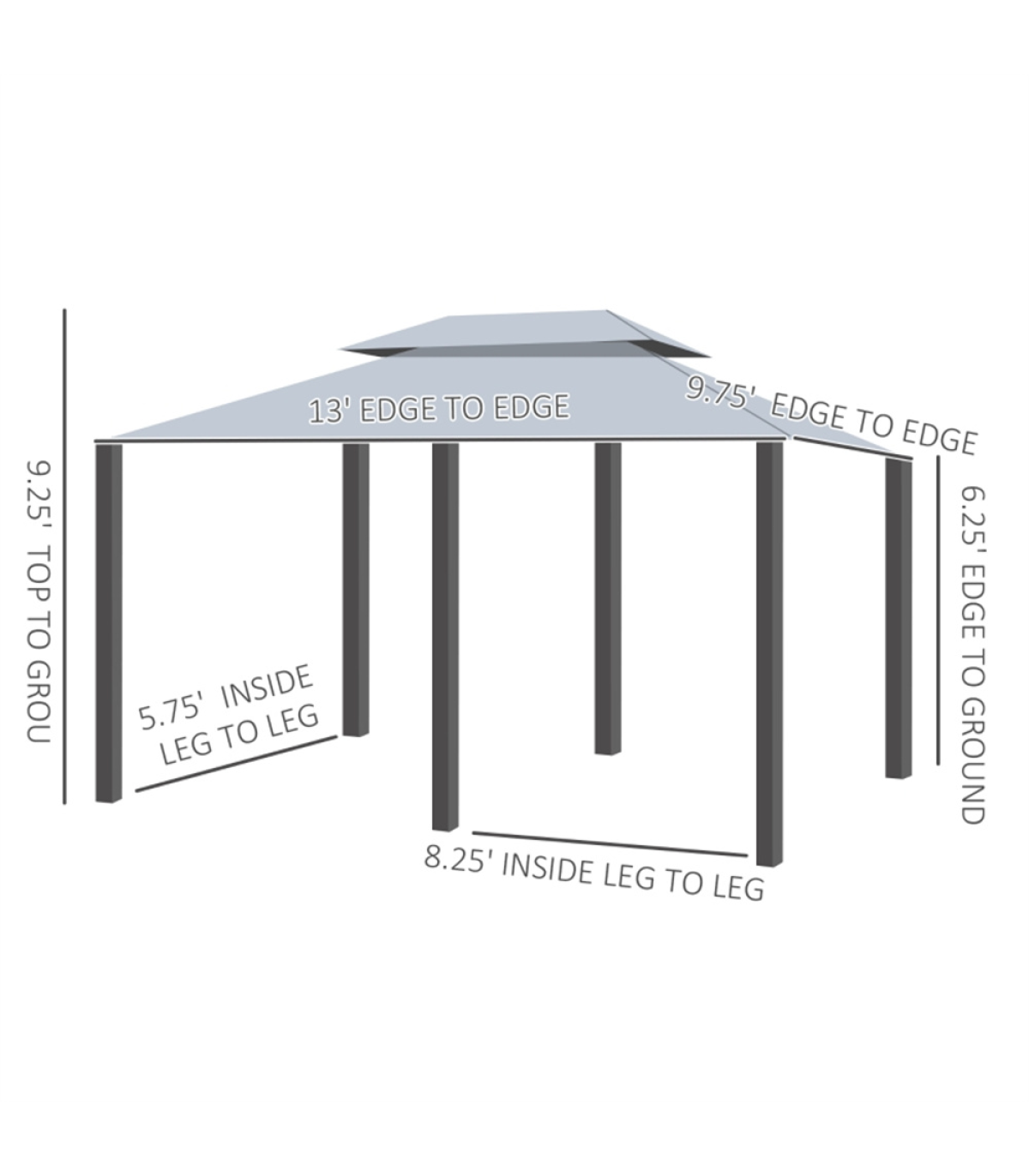- - Overall Dimensions: 9.75' L x 13' W x 9.2' H