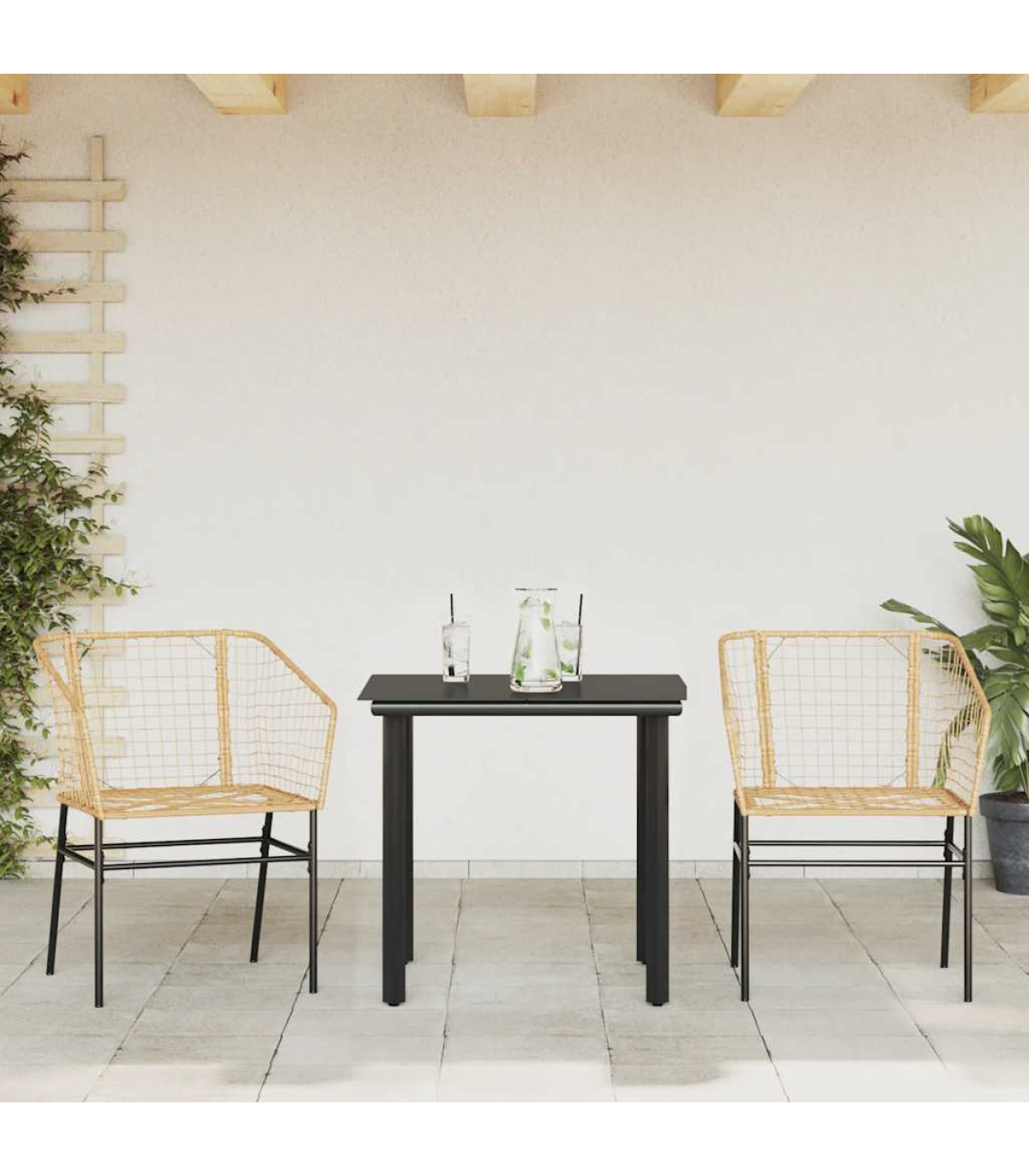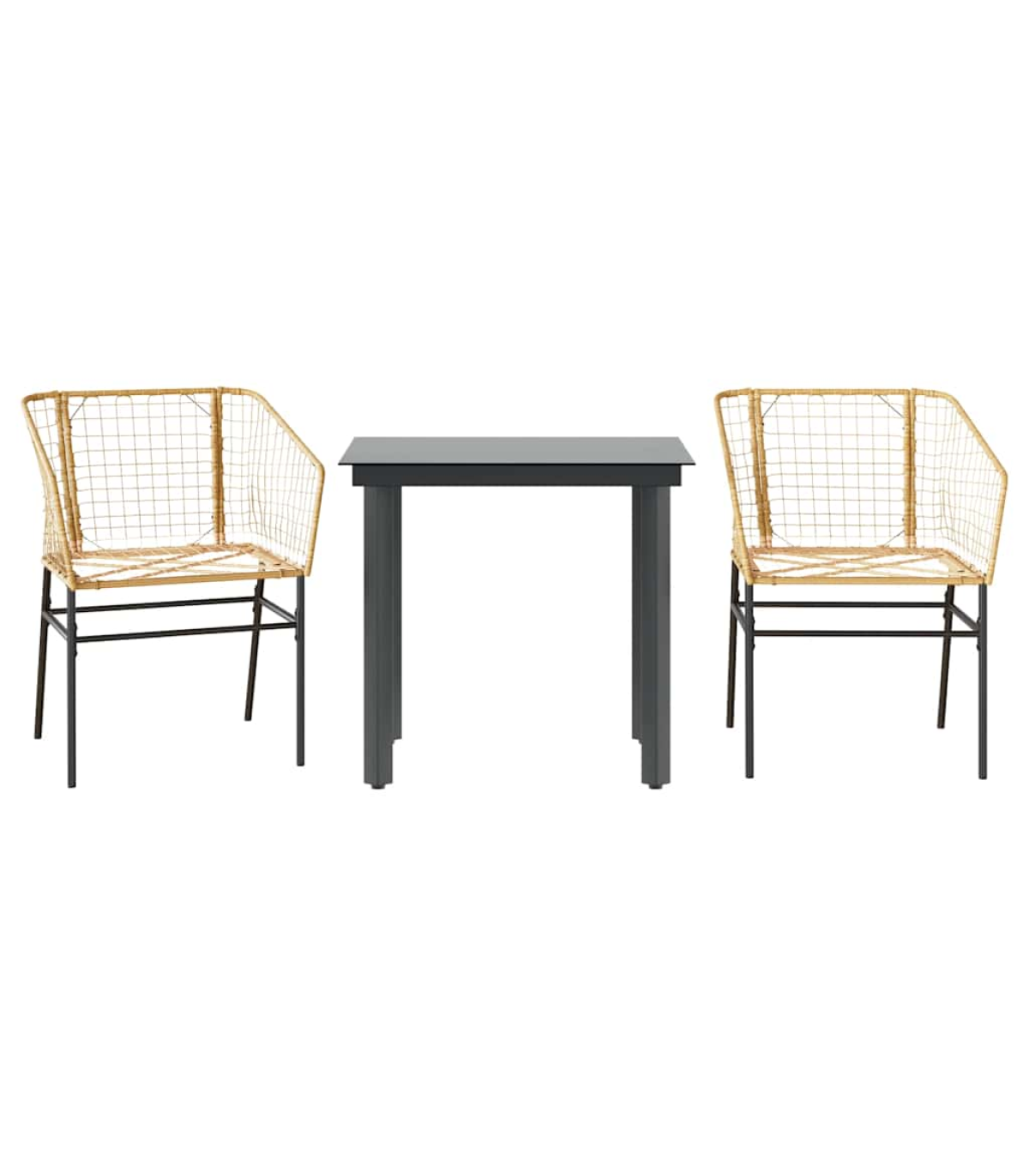 This garden dining set is a great choice for al fresco dining or just relaxing in the garden, backyard, or on the patio. Durable material: PE rattan, also known as poly rattan, is a strong, low-maintenance synthetic material that looks like natural rattan. It's lightweight, easy to clean, and commonly used for outdoor furniture due to its durability and weather-resistant properties.Robust and stable frame: The powder-coated steel frame is strong, stable, durable, and resistant to corrosion and harsh weather, ensuring long-lasting performance.Practical backrest and armrest: This garden chair features a backrest and two armrests that offer optimal support and comfort for users.Glass tabletop: The outdoor table's top is made from strong and durable tempered glass, making it easy to clean with a damp cloth and adding a touch of elegance to your outdoor space. Good to know:To make sure your outdoor furniture stays beautiful, we recommend protecting it with a waterproof cover. Maximum 110 kg per seat.