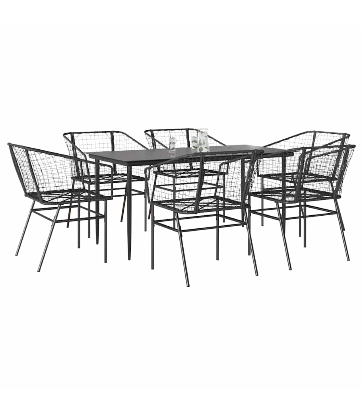 vidaXL 7 Piece Garden Dining Set Black Poly Rattan Glass