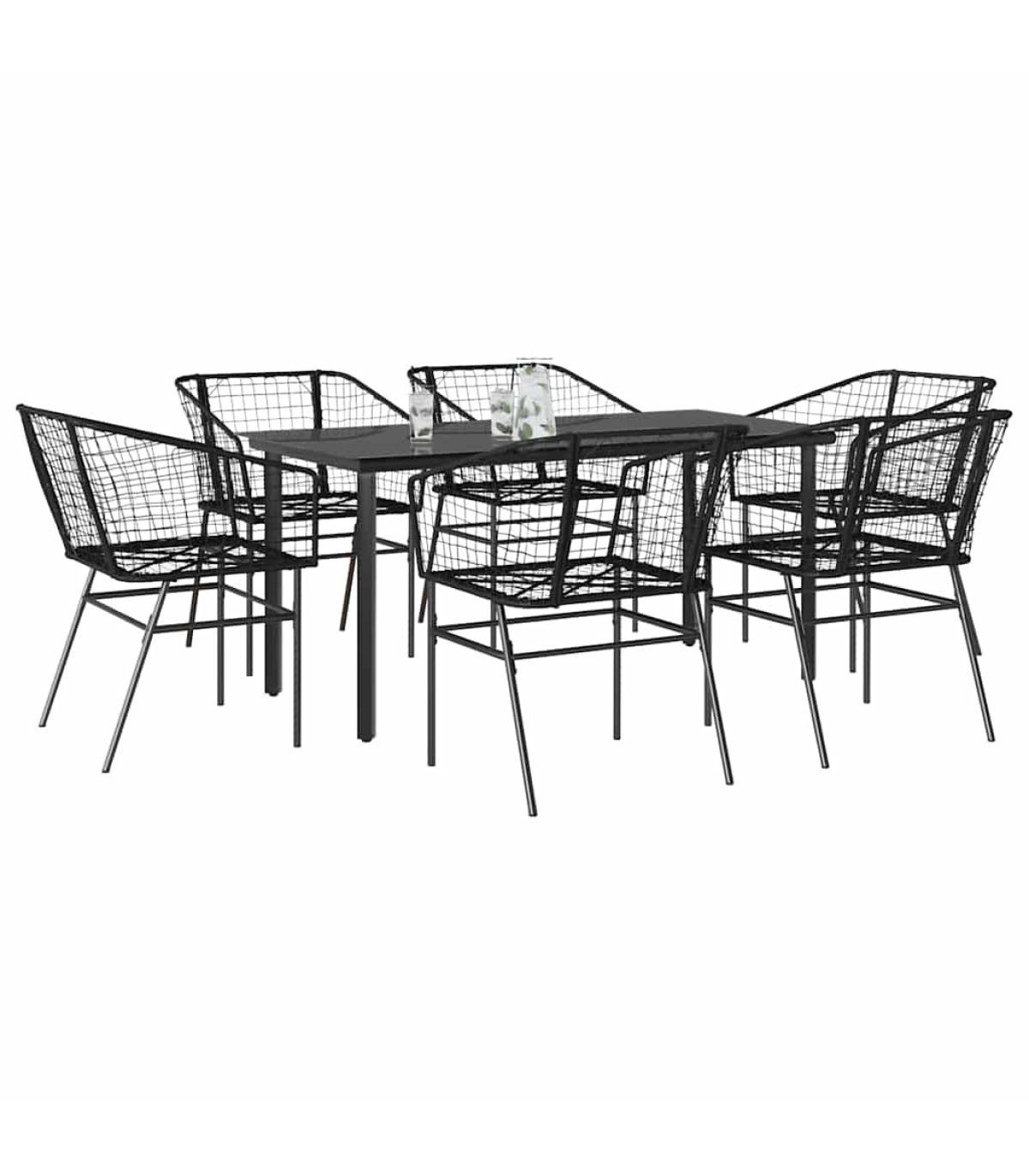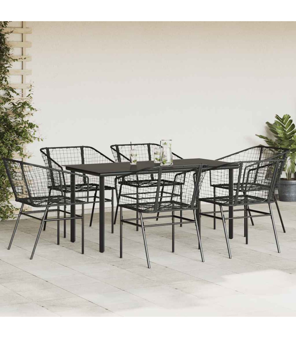 vidaXL 7 Piece Garden Dining Set Black Poly Rattan Glass