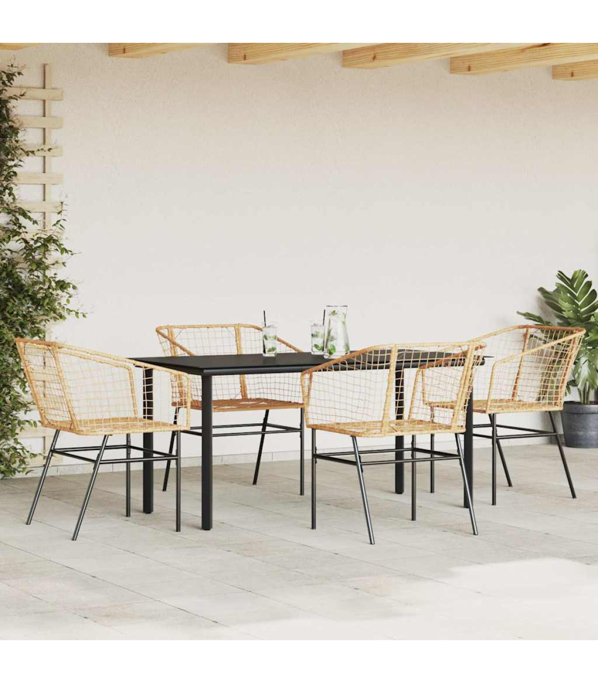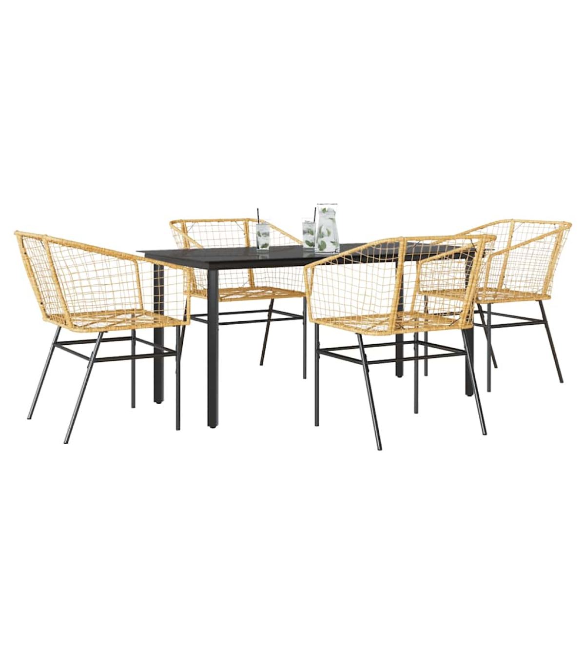 vidaXL 5 Piece Garden Dining Set Brown Poly Rattan Glass
