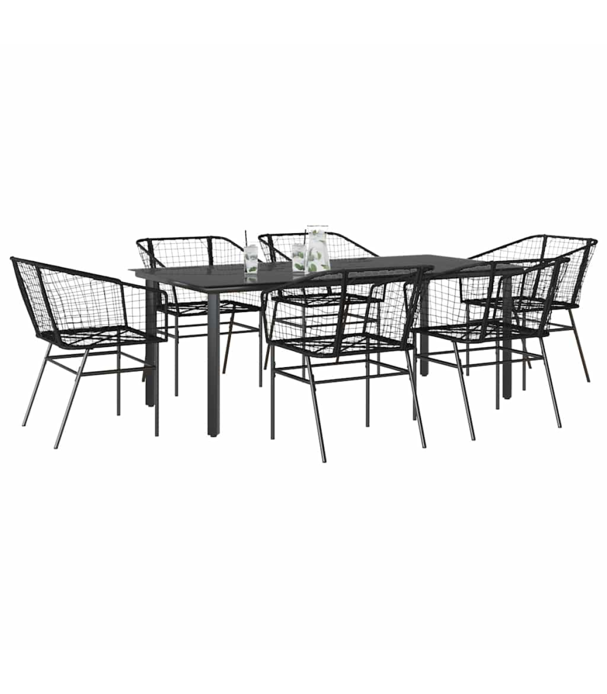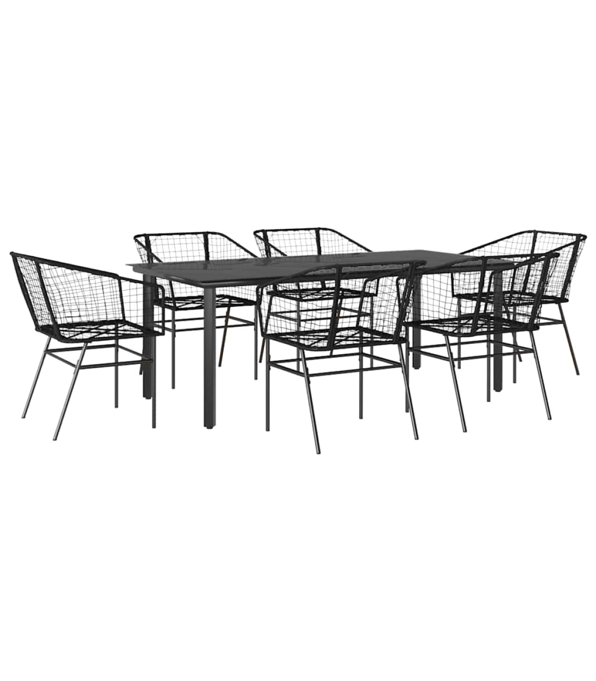 vidaXL 7 Piece Garden Dining Set Black Poly Rattan Glass