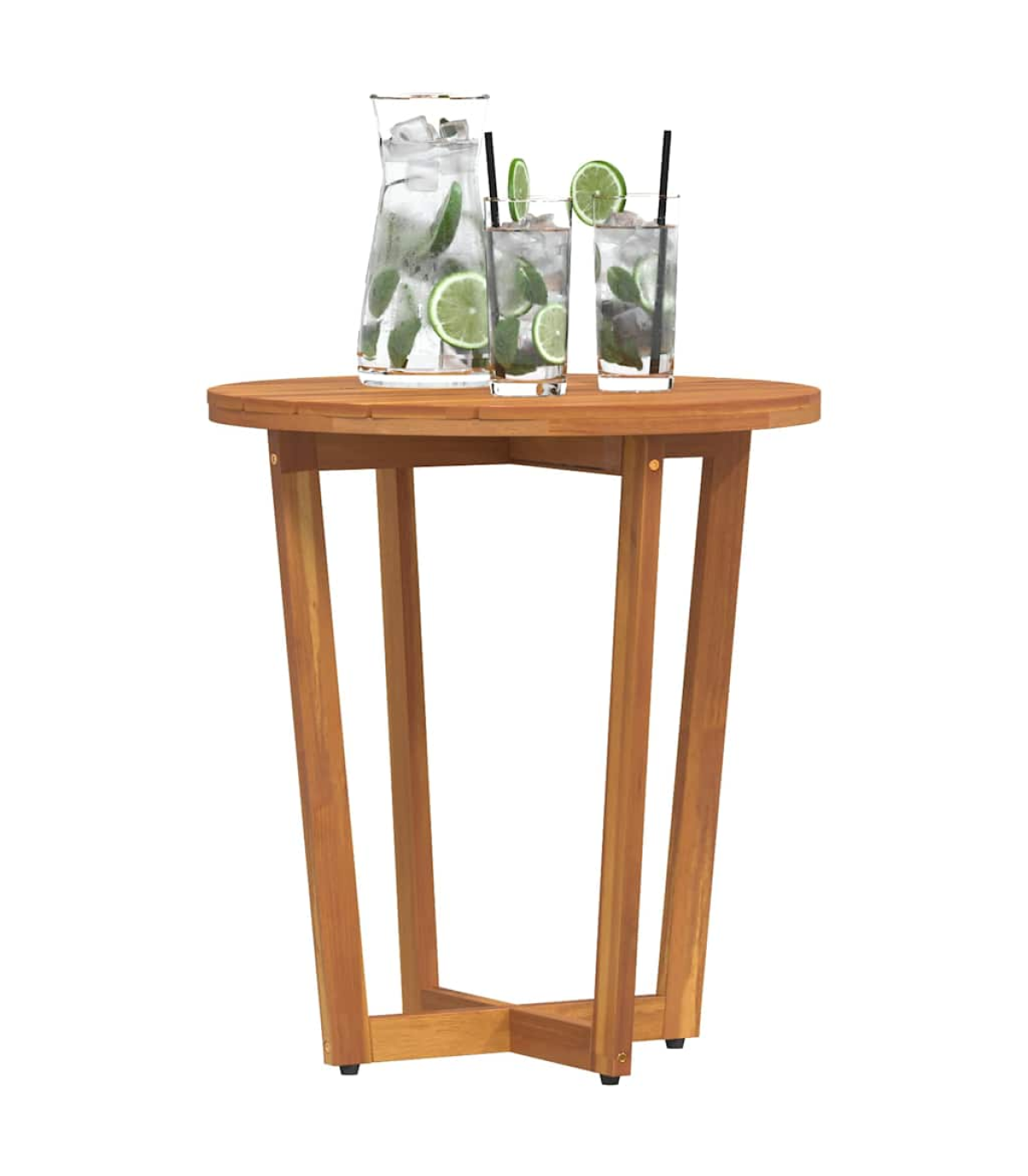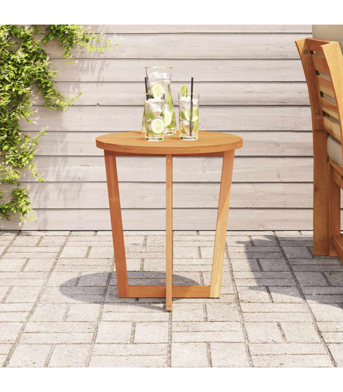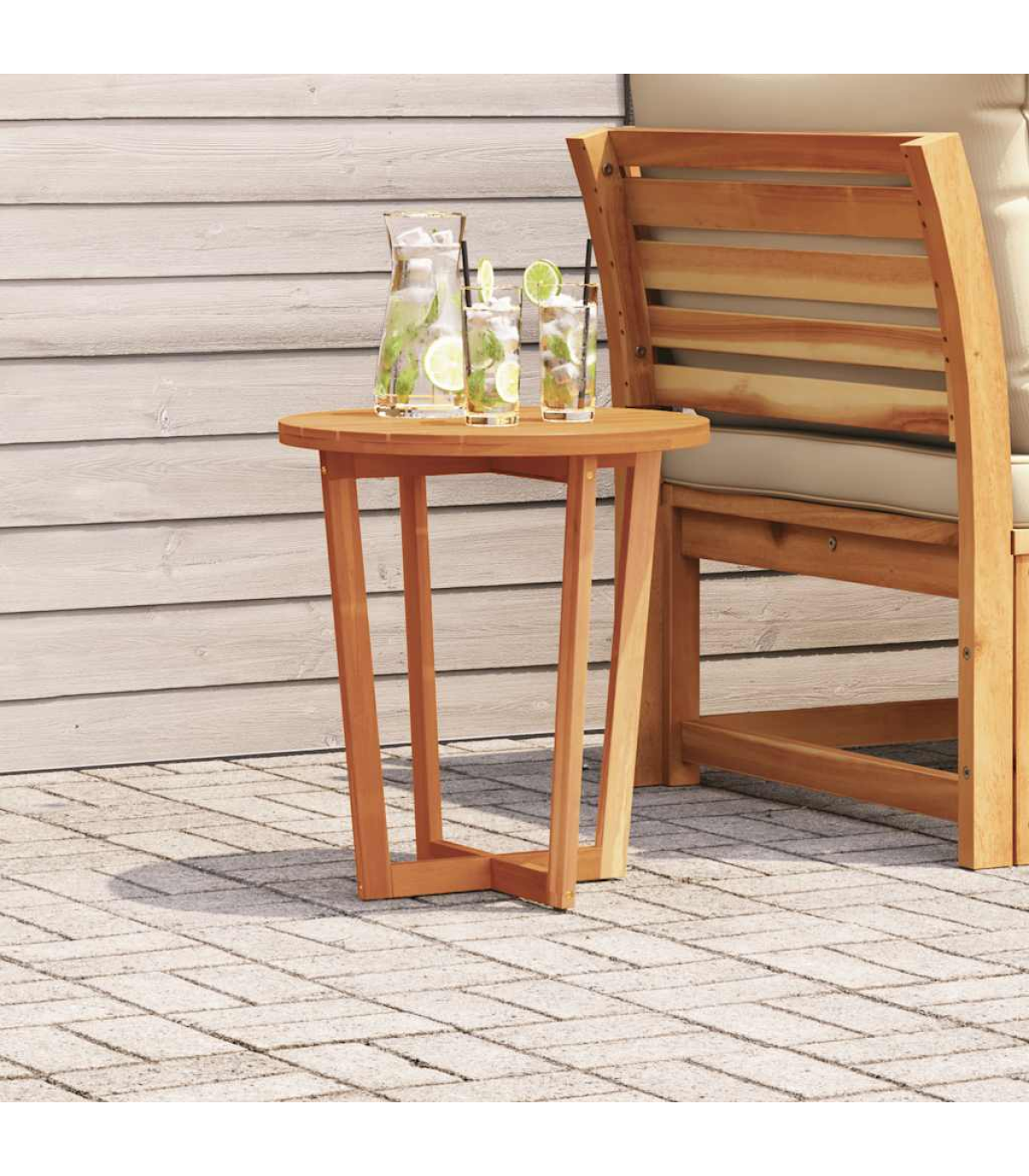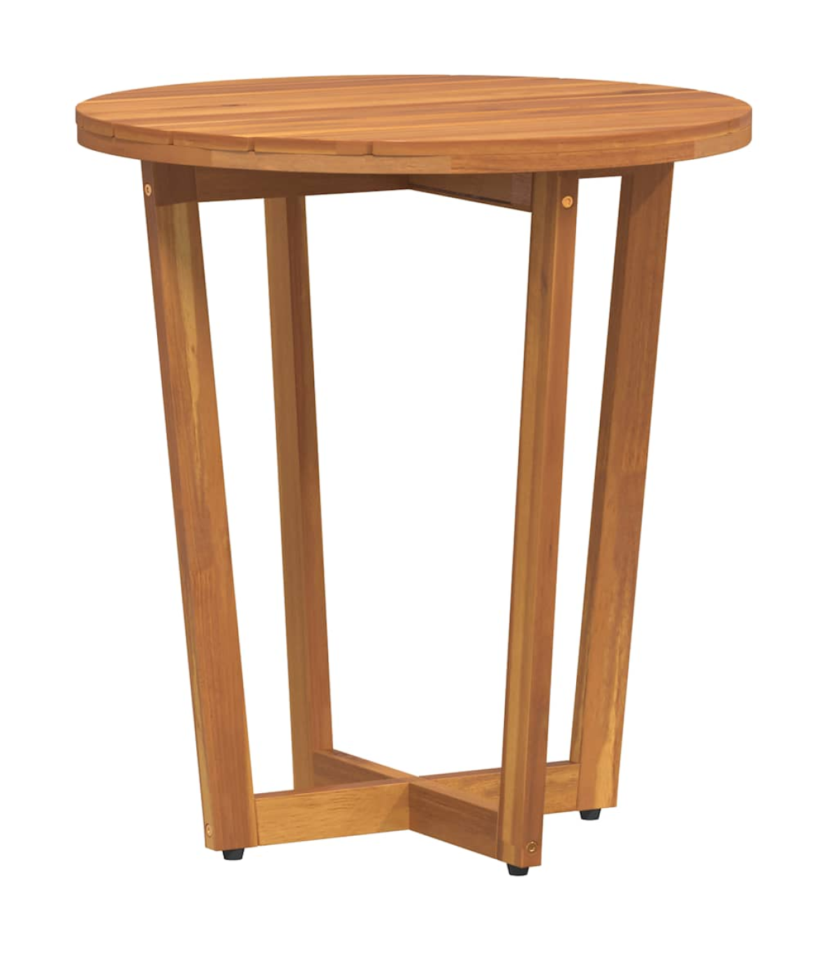 This garden side table is perfect for patios, gardens, and outdoor spaces, offering a practical and inviting area for family and friends to relax, dine, or enjoy quality time together. Robust and stable material: Solid acacia wood is renowned for its strength and durability, complemented by unique grain patterns that enhance its visual appeal. Finished with a protective oil layer, the table is designed for outdoor use, offering resistance to the elements while preserving its beautiful wood grain.Stable tabletop: The sturdy surface with slats design provides reliable support for holding drinks, snacks, fruit baskets, or your favourite decorations.Sturdy cross-leg structure: The sturdy cross-leg base enhances stability, offering reliable support for daily use without compromising on style.Slatted tabletop for a timeless look: The slatted surface, featuring natural wood grains, adds a touch of classic elegance, making it perfect for both decorative and functional use.Wide application: The garden table is ideal for a variety of outdoor settings, including patios, gardens, balconies, and terraces. Whether you're enjoying a cup of coffee, relaxing, or entertaining guests, it adapts to any outdoor occasion, offering both functionality and aesthetics for your space. Good to know:To make sure your outdoor furniture stays beautiful, we recommend protecting it with a waterproof cover.