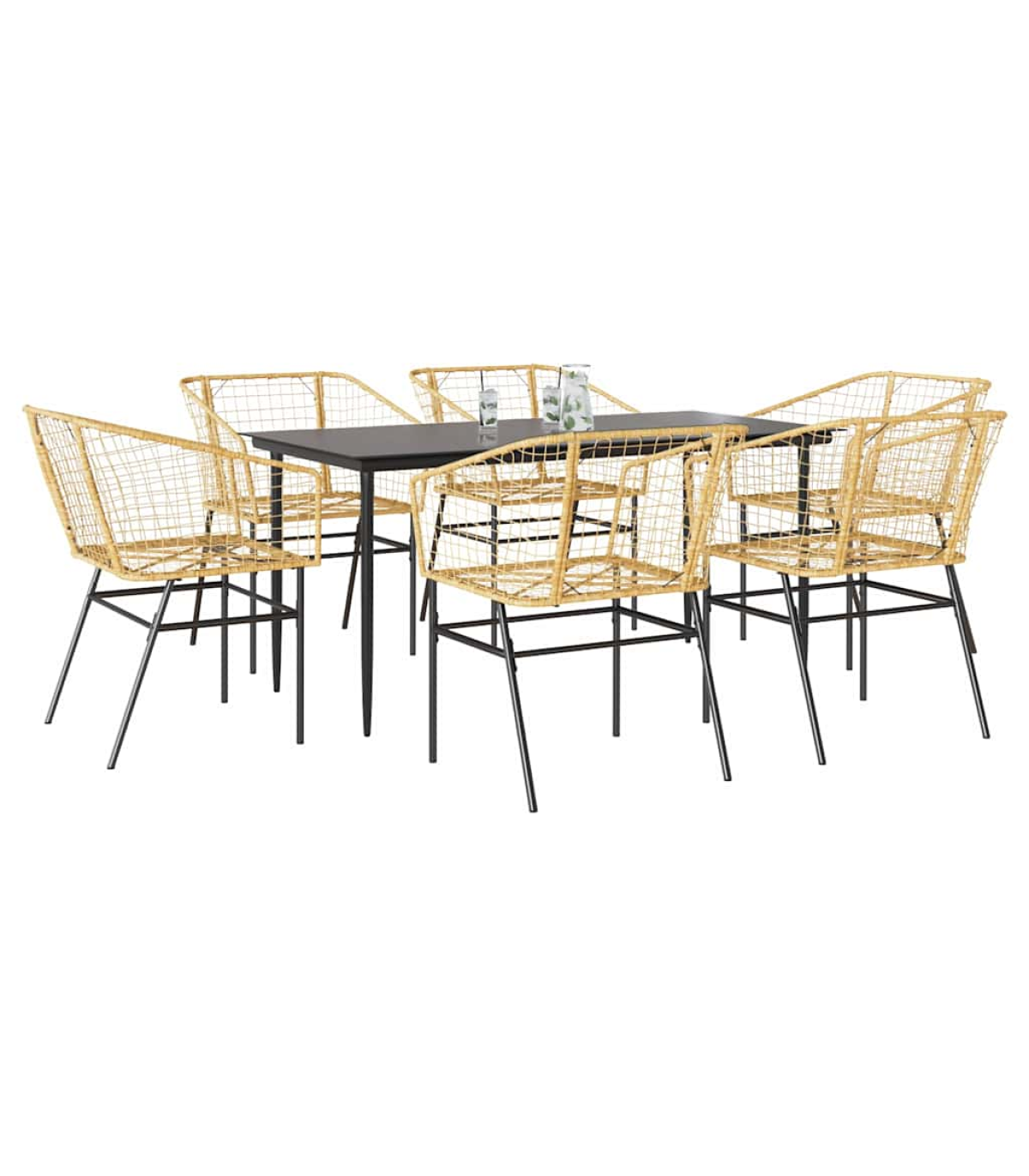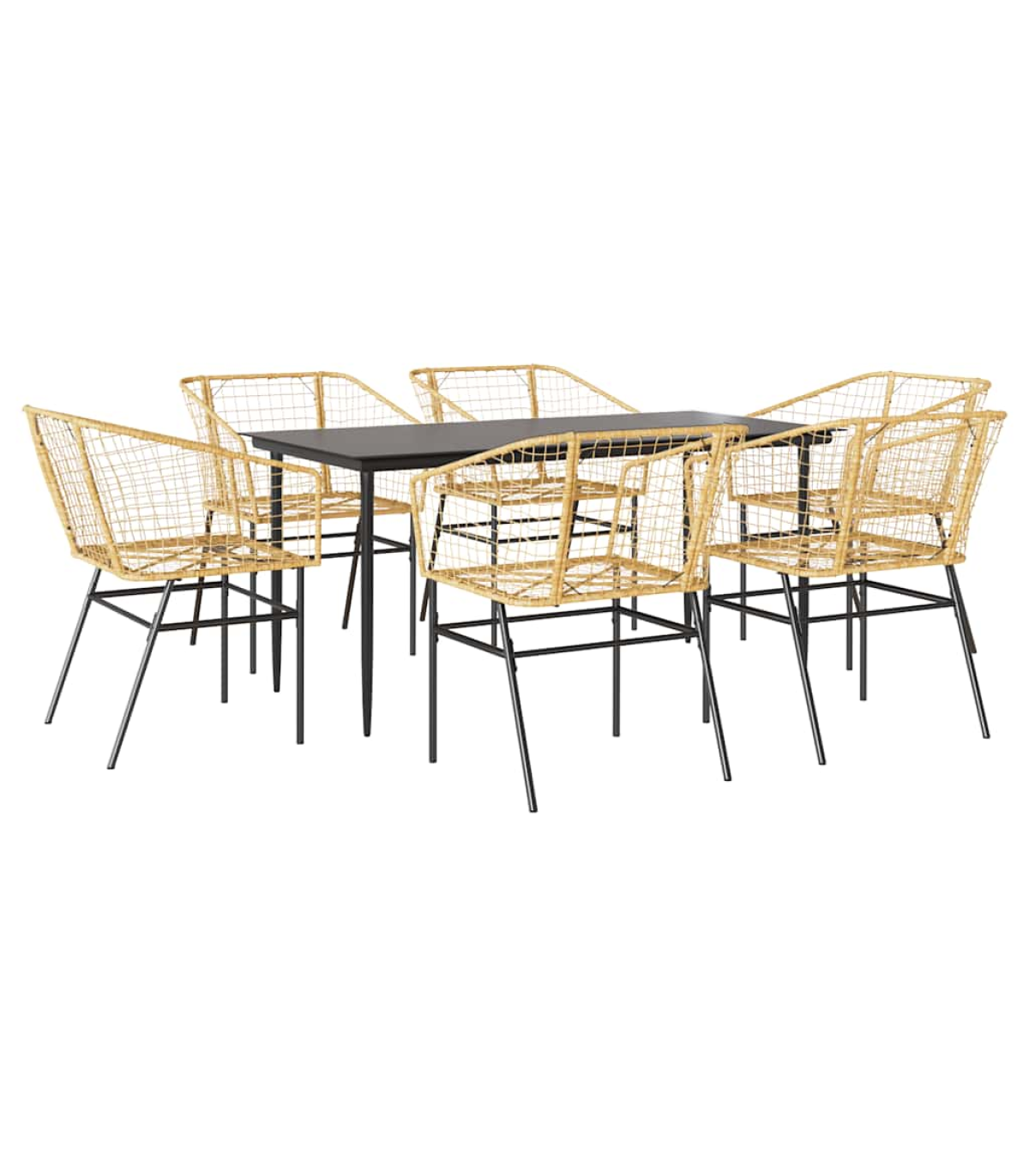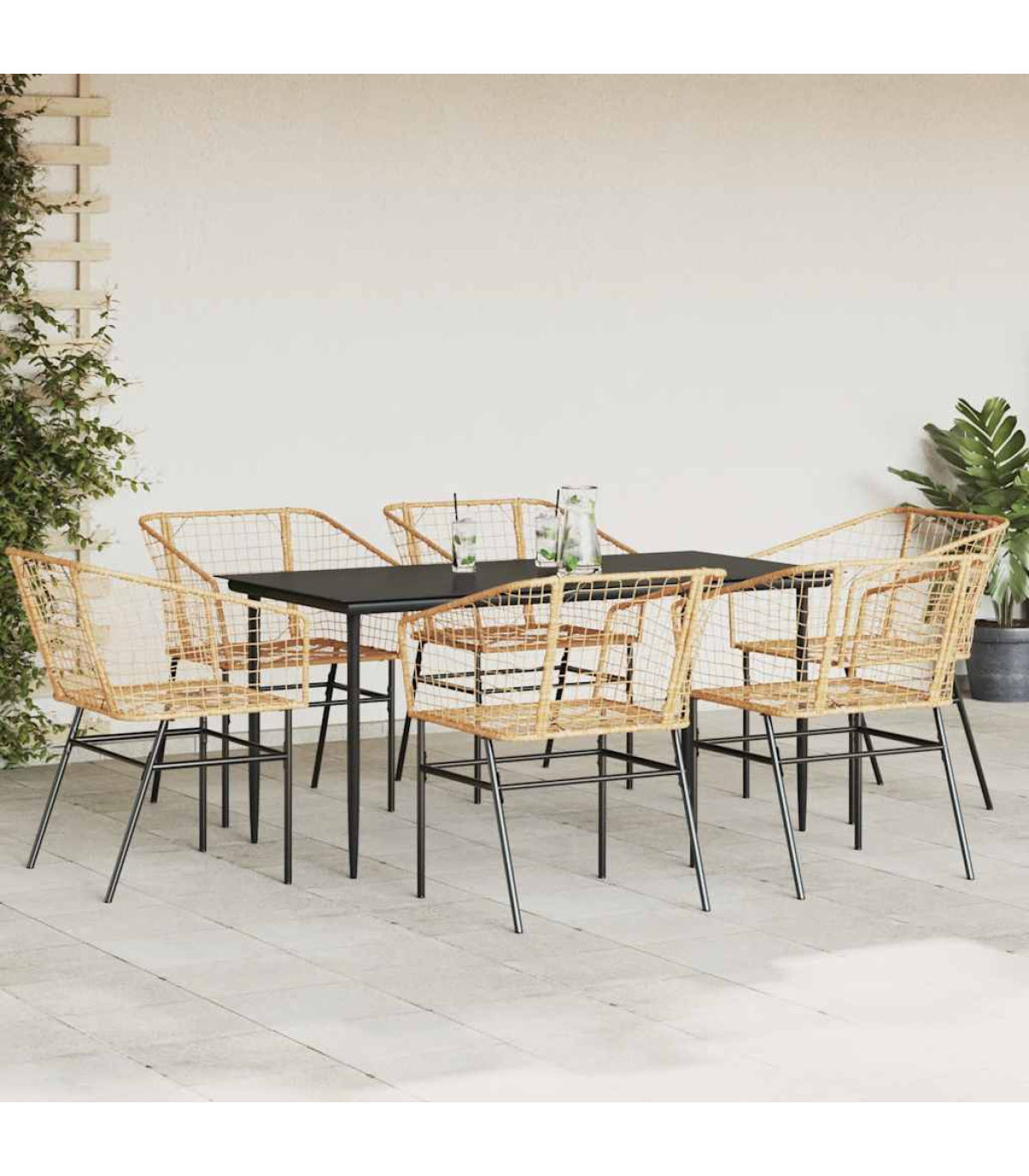 This garden dining set is a great choice for al fresco dining or just relaxing in the garden, backyard, or on the patio. Durable material: PE rattan, also known as poly rattan, is a strong, low-maintenance synthetic material that looks like natural rattan. It's lightweight, easy to clean, and commonly used for outdoor furniture due to its durability and weather-resistant properties.Robust and stable frame: The powder-coated steel frame is strong, stable, durable, and resistant to corrosion and harsh weather, ensuring long-lasting performance.Practical backrest and armrest: This garden chair features a backrest and two armrests that offer optimal support and comfort for users.Glass tabletop: The outdoor table's top is made from strong and durable tempered glass, making it easy to clean with a damp cloth and adding a touch of elegance to your outdoor space. Good to know:To make sure your outdoor furniture stays beautiful, we recommend protecting it with a waterproof cover. Maximum 110 kg per seat.
