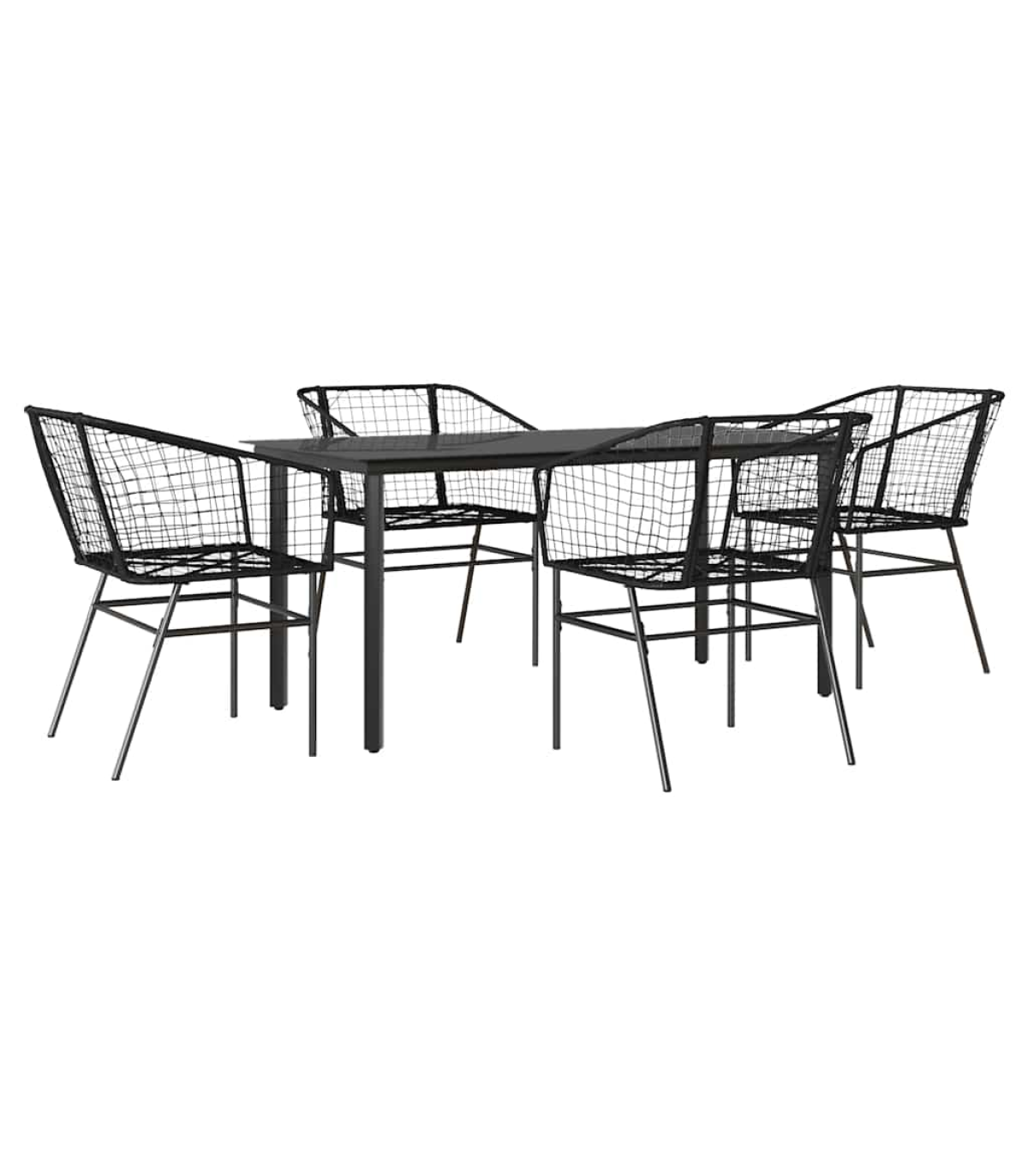 vidaXL 5 Piece Garden Dining Set Black Poly Rattan Glass