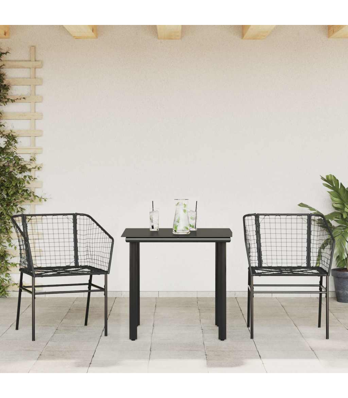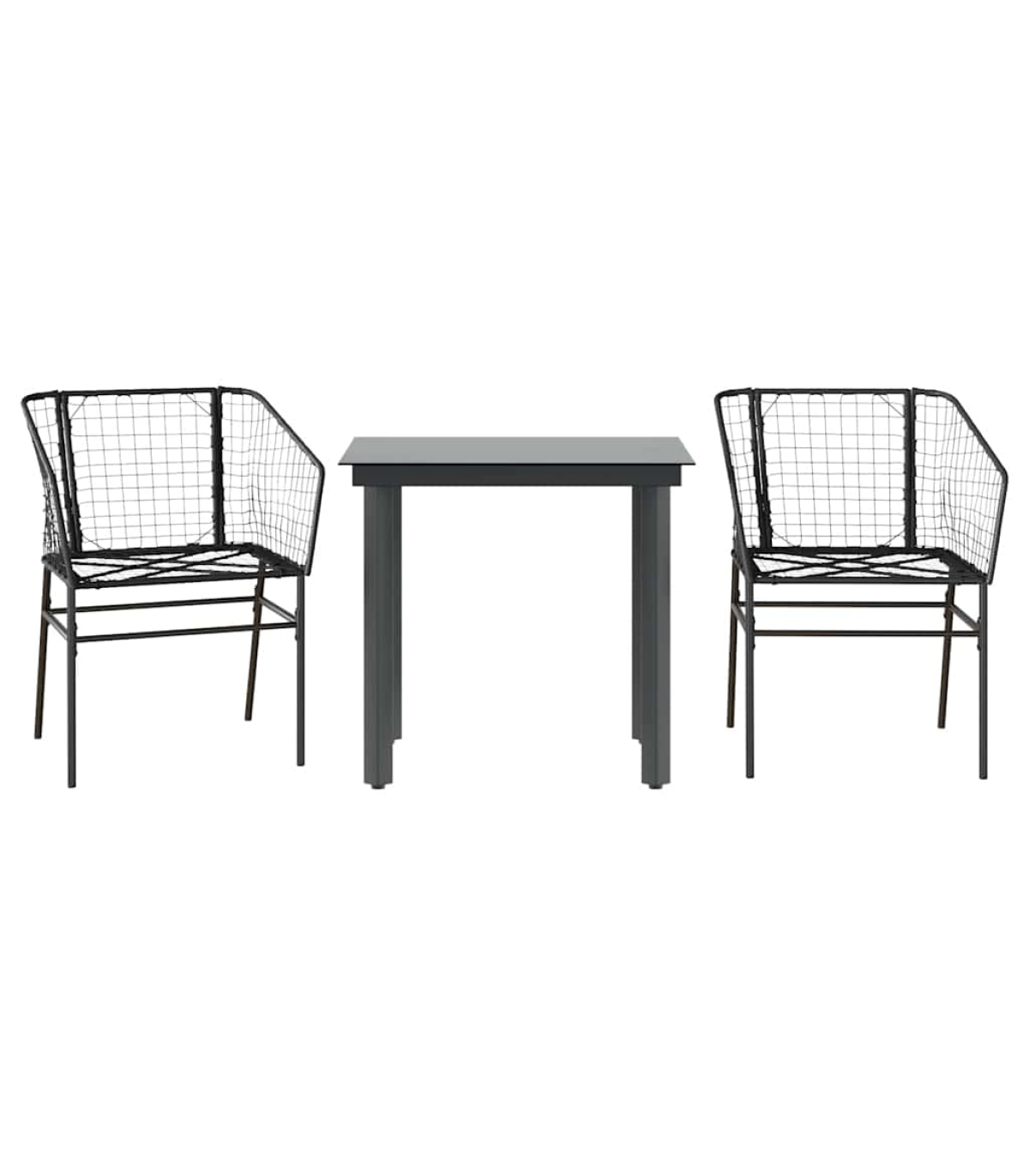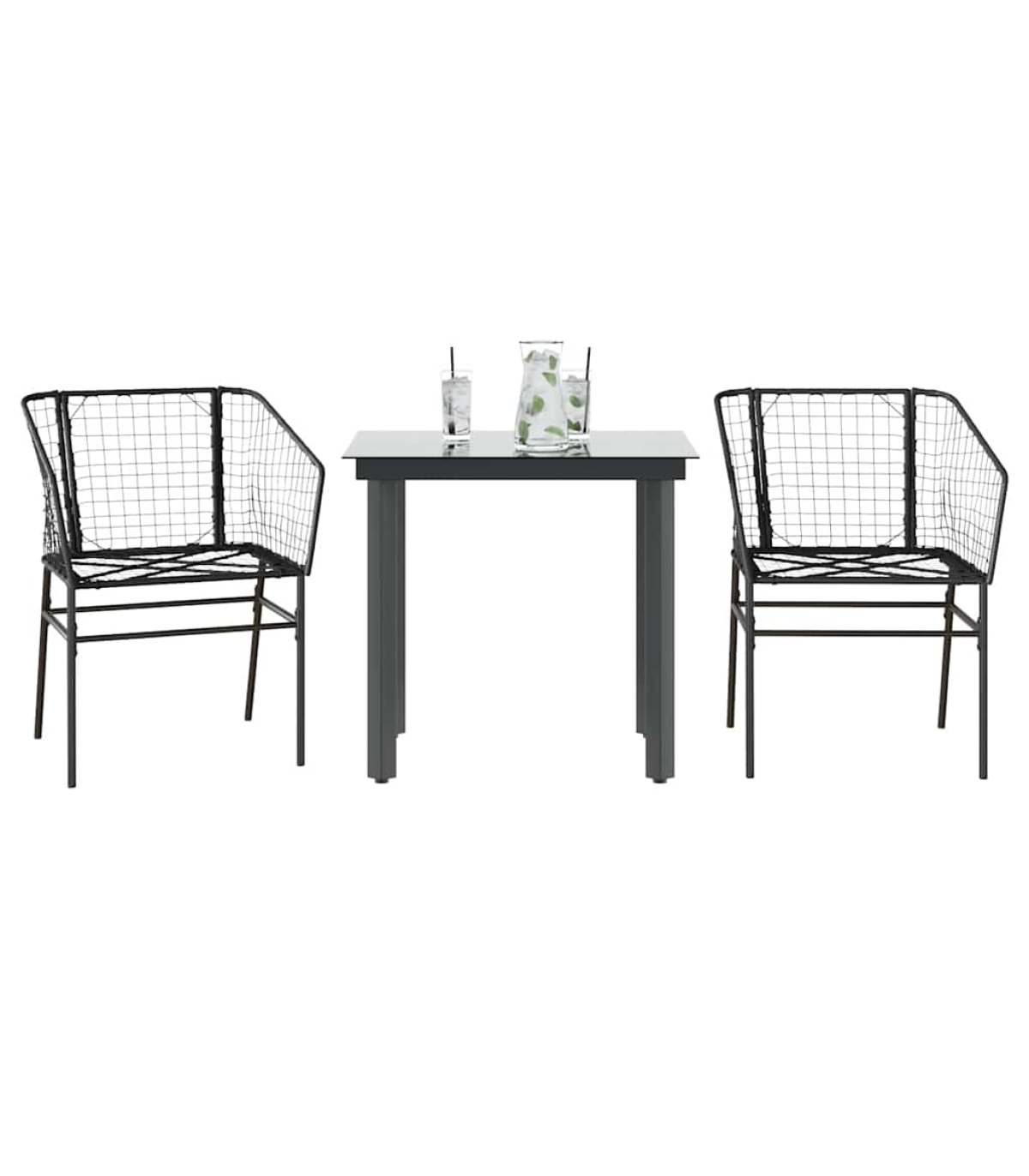 vidaXL 3 Piece Garden Dining Set Black Poly Rattan Glass