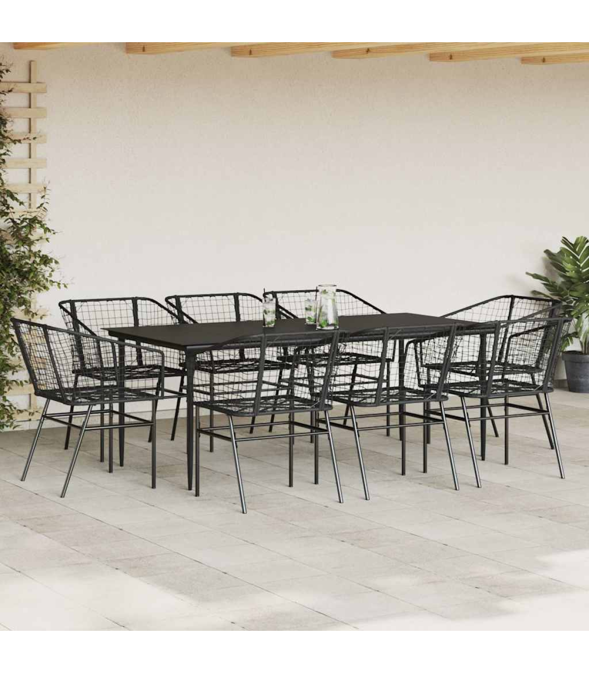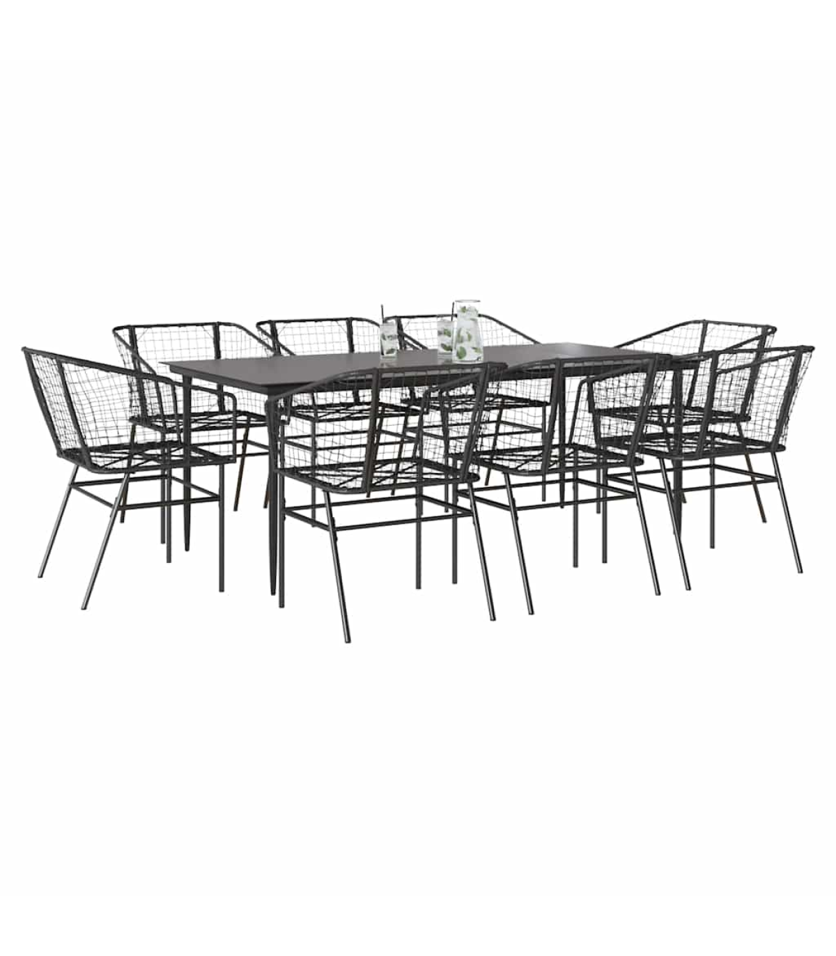 vidaXL 9 Piece Garden Dining Set Black Poly Rattan Glass