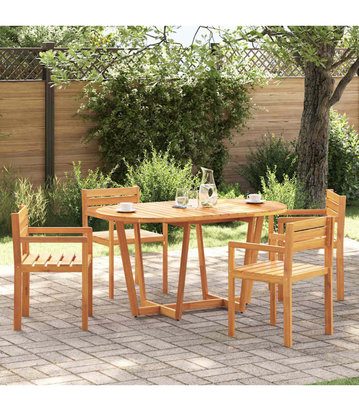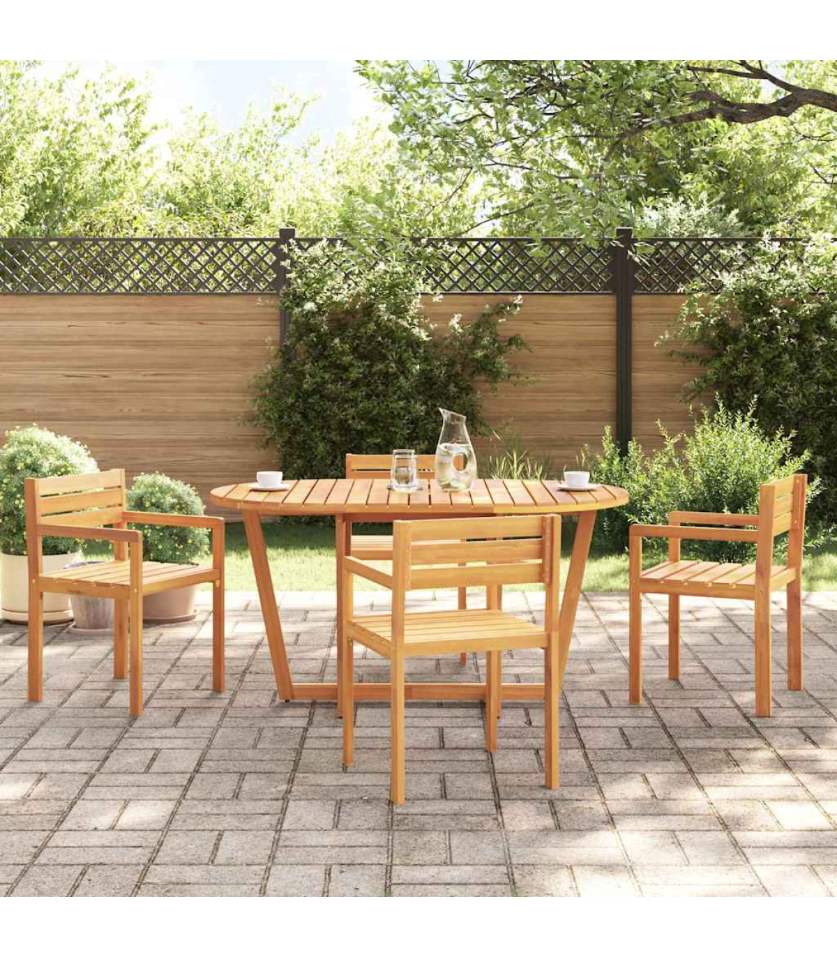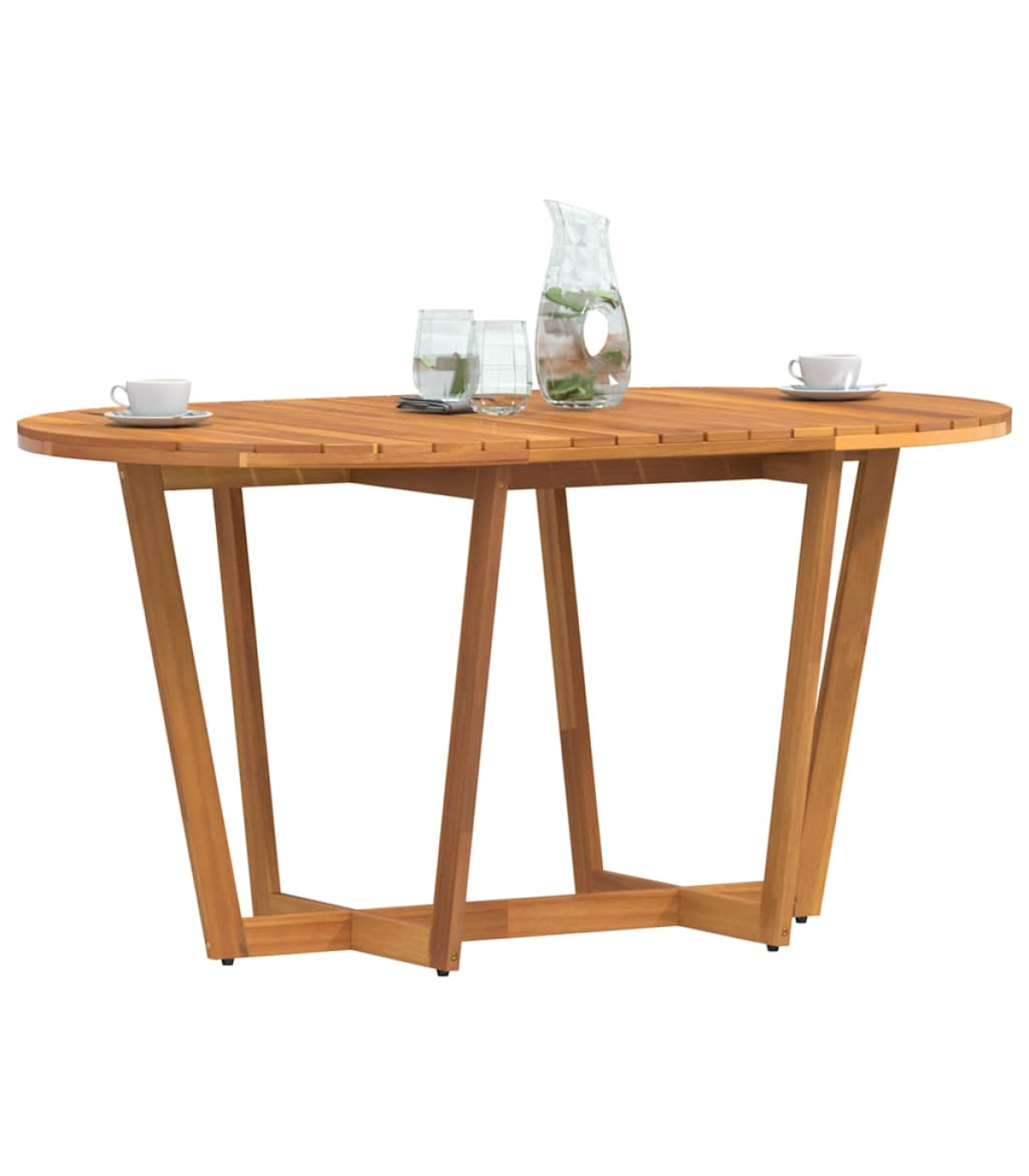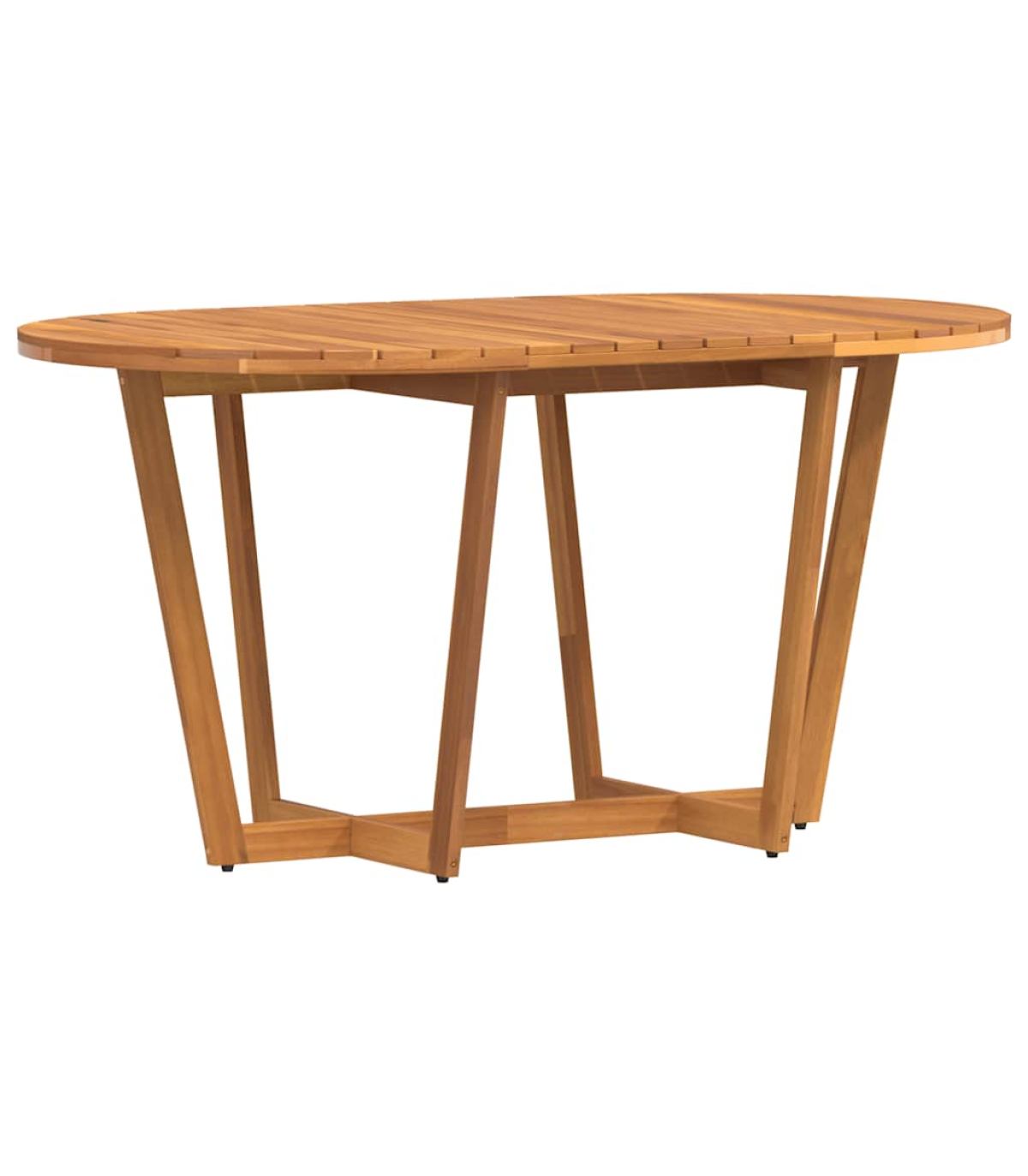 This garden dining table is perfect for patios, gardens, and outdoor spaces, offering a practical and inviting area for family and friends to relax, dine, or enjoy quality time together. Robust and stable material: Solid acacia wood is renowned for its strength and durability, complemented by unique grain patterns that enhance its visual appeal. Finished with a protective oil layer, the table is designed for outdoor use, offering resistance to the elements while preserving its beautiful wood grain.Stable tabletop: The sturdy surface with slats design provides reliable support for holding drinks, snacks, fruit baskets, or your favourite decorations.Sturdy cross-leg structure: The sturdy cross-leg base enhances stability, offering reliable support for daily use without compromising on style.Slatted tabletop for a timeless look: The slatted surface, featuring natural wood grains, adds a touch of classic elegance, making it perfect for both decorative and functional use.Wide application: Perfect for various outdoor settings, this table is versatile enough for patios, gardens, balconies, and terraces. Ideal for dining, relaxing, or entertaining, it adapts to your needs for any outdoor occasion. Good to know:To make sure your outdoor furniture stays beautiful, we recommend protecting it with a waterproof cover.