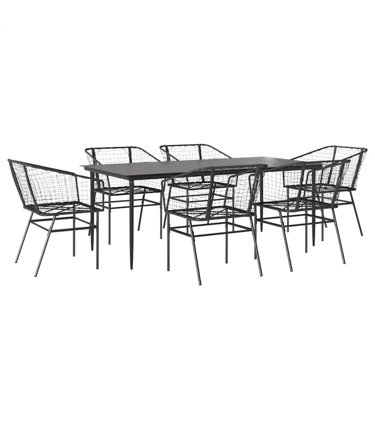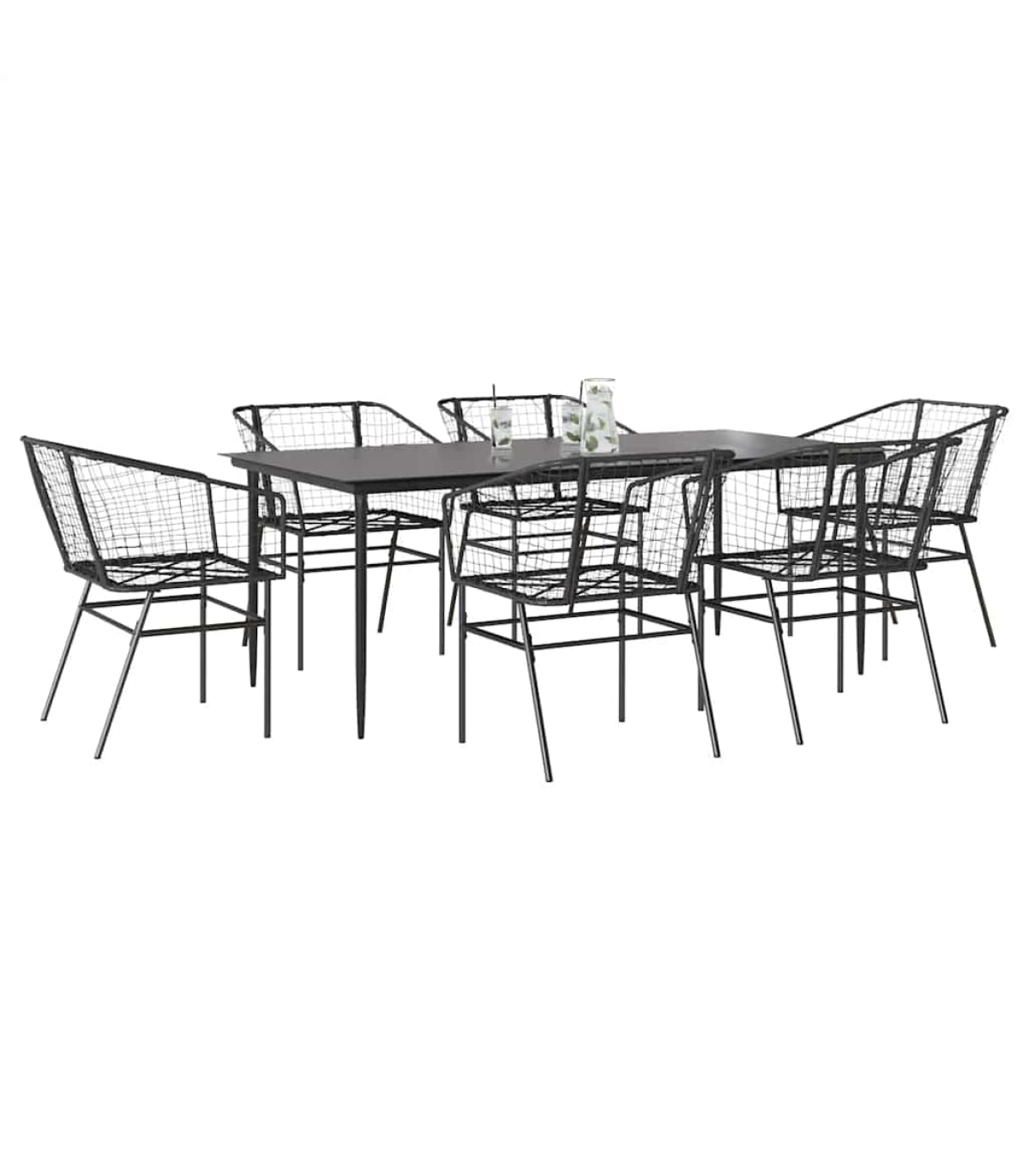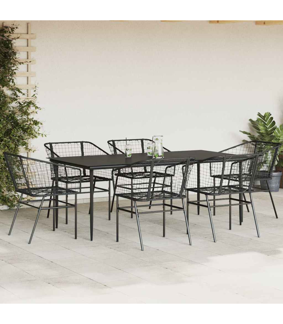 vidaXL 7 Piece Garden Dining Set Black Poly Rattan Glass