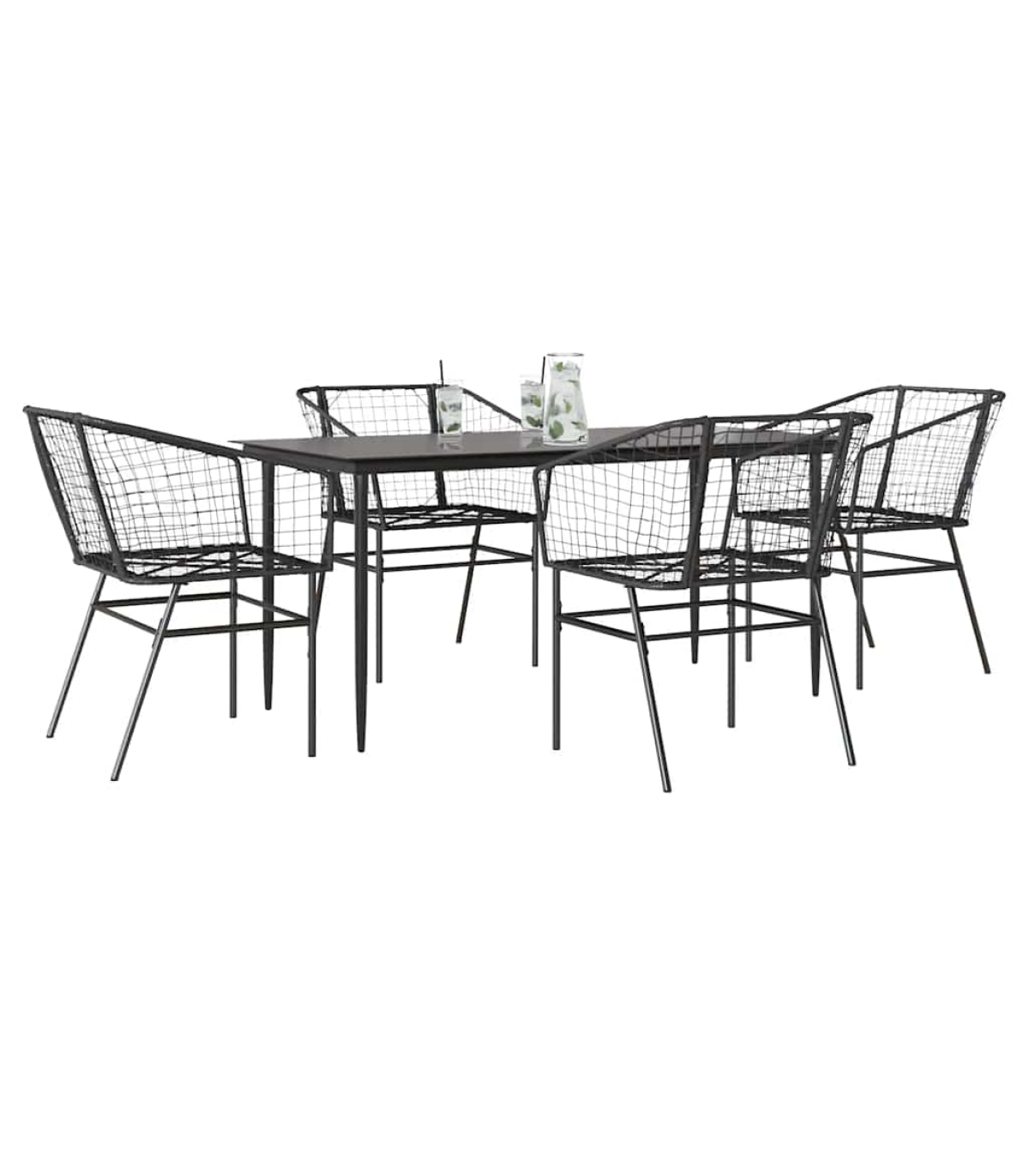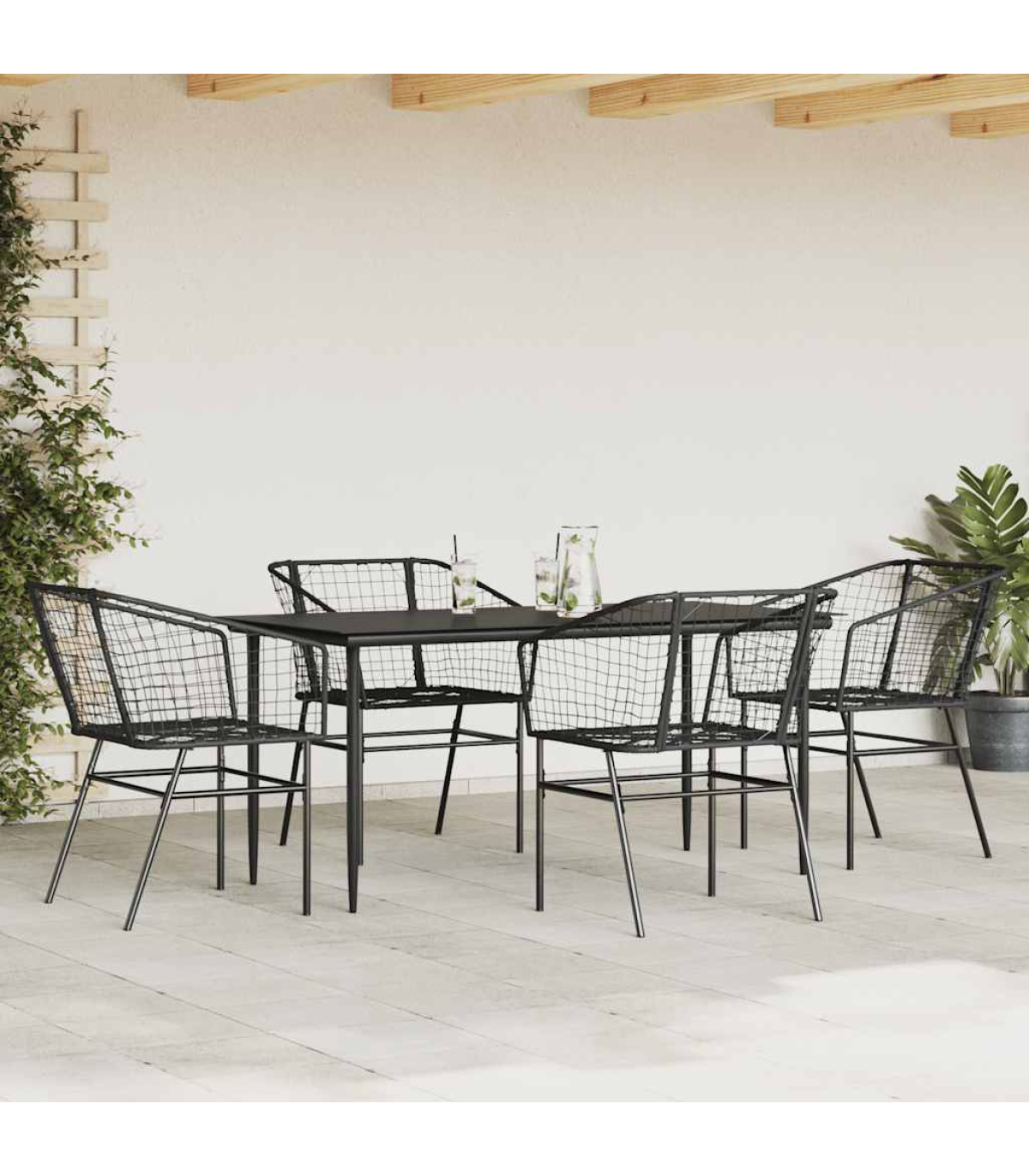 This garden dining set is a great choice for al fresco dining or just relaxing in the garden, backyard, or on the patio. Durable material: PE rattan, also known as poly rattan, is a strong, low-maintenance synthetic material that looks like natural rattan. It's lightweight, easy to clean, and commonly used for outdoor furniture due to its durability and weather-resistant properties.Robust and stable frame: The powder-coated steel frame is strong, stable, durable, and resistant to corrosion and harsh weather, ensuring long-lasting performance.Practical backrest and armrest: This garden chair features a backrest and two armrests that offer optimal support and comfort for users.Glass tabletop: The outdoor table's top is made from strong and durable tempered glass, making it easy to clean with a damp cloth and adding a touch of elegance to your outdoor space. Good to know:To make sure your outdoor furniture stays beautiful, we recommend protecting it with a waterproof cover. Maximum 110 kg per seat.