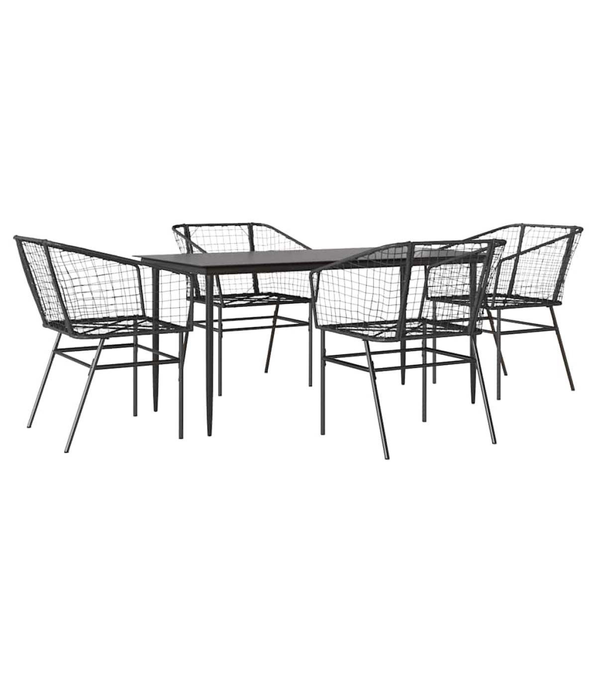 vidaXL 5 Piece Garden Dining Set Black Poly Rattan Glass