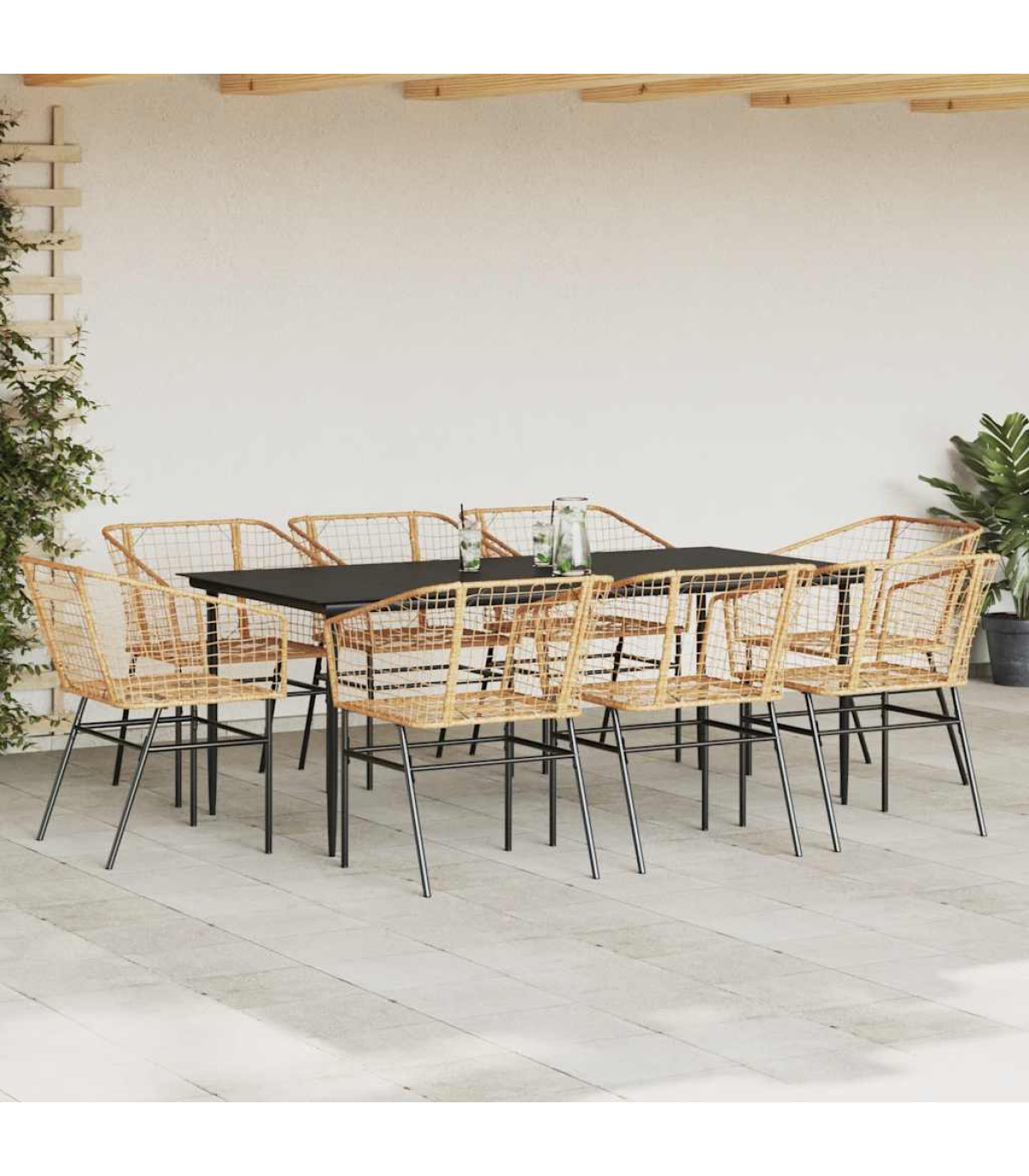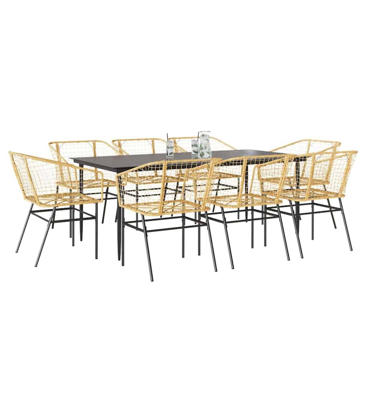 vidaXL 9 Piece Garden Dining Set Brown Poly Rattan Glass
