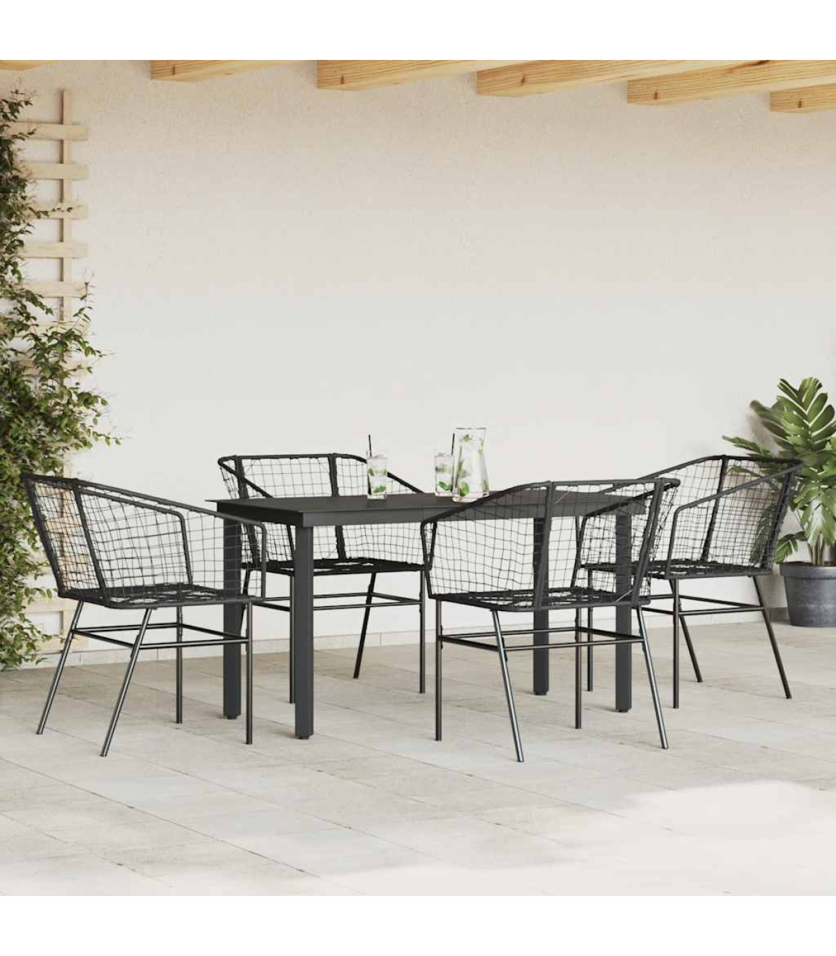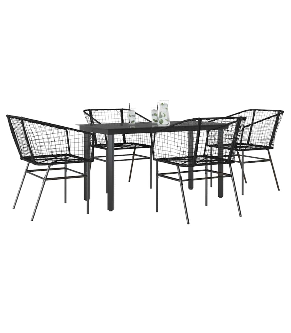 vidaXL 5 Piece Garden Dining Set Black Poly Rattan Glass