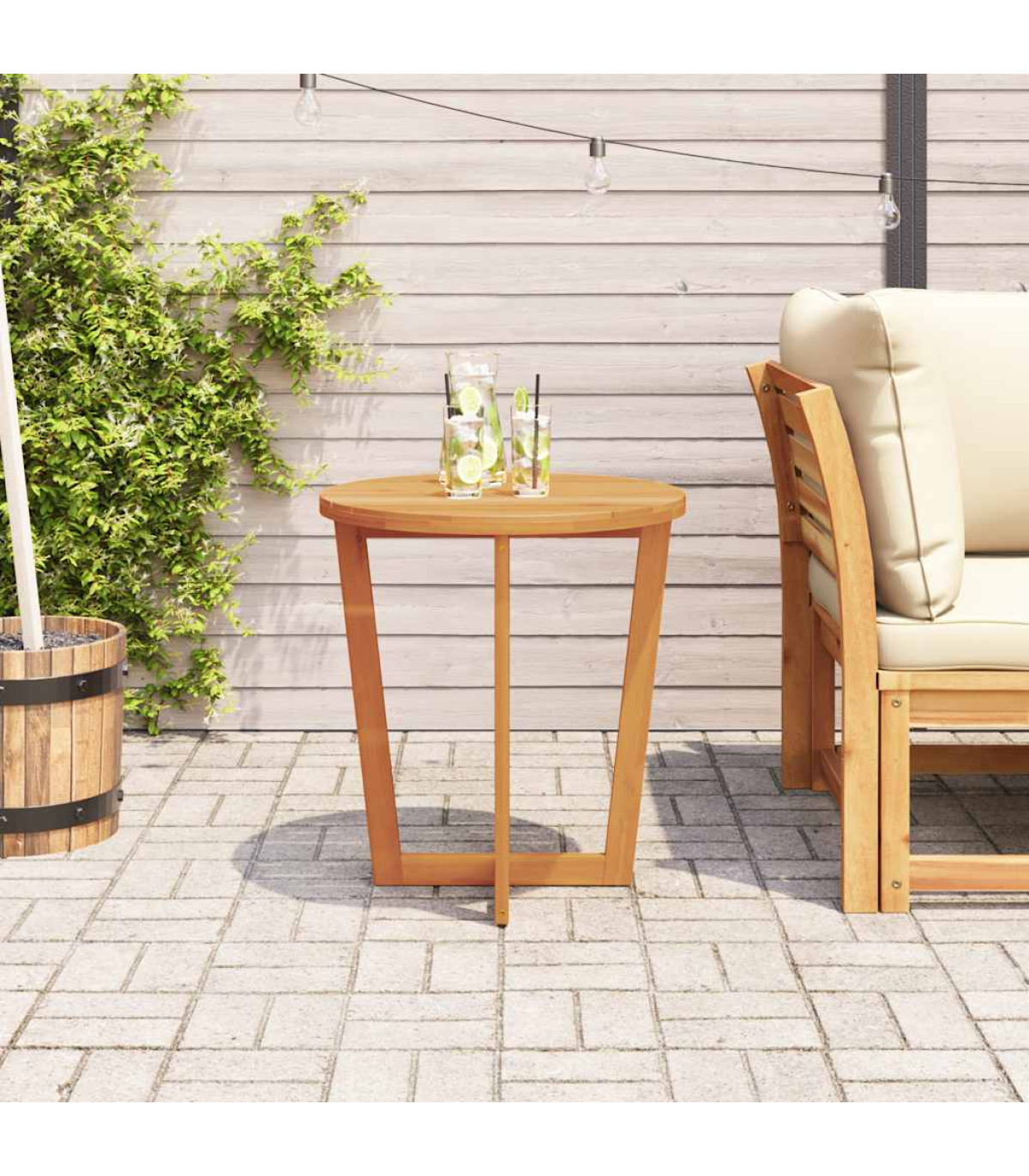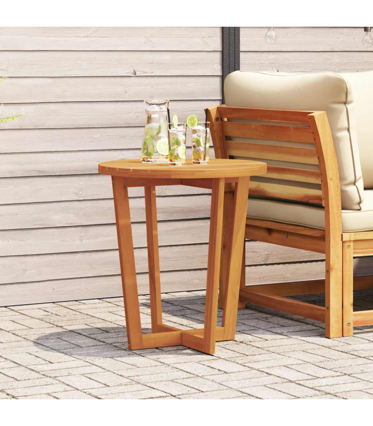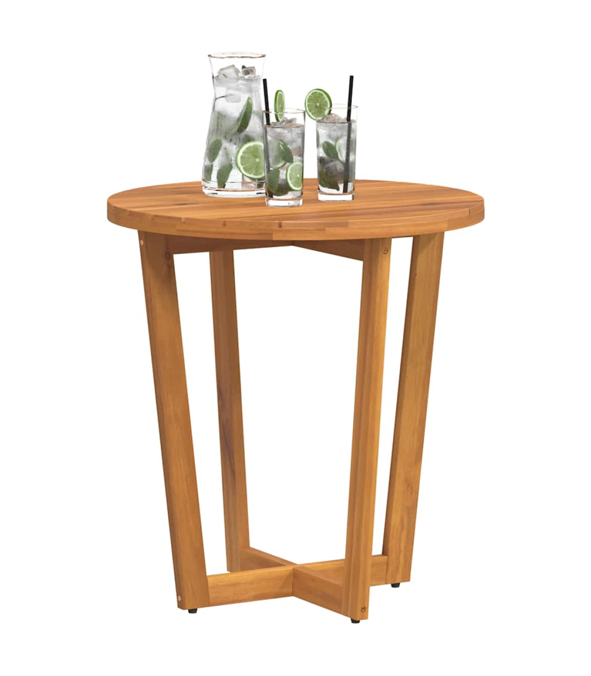 This garden side table is perfect for patios, gardens, and outdoor spaces, offering a practical and inviting area for family and friends to relax, dine, or enjoy quality time together. Robust and stable material: Solid acacia wood is renowned for its strength and durability, complemented by unique grain patterns that enhance its visual appeal. Finished with a protective oil layer, the table is designed for outdoor use, offering resistance to the elements while preserving its beautiful wood grain.Stable tabletop: The sturdy surface with slats design provides reliable support for holding drinks, snacks, fruit baskets, or your favourite decorations.Sturdy cross-leg structure: The sturdy cross-leg base enhances stability, offering reliable support for daily use without compromising on style.Slatted tabletop for a timeless look: The slatted surface, featuring natural wood grains, adds a touch of classic elegance, making it perfect for both decorative and functional use.Wide application: The garden table is ideal for a variety of outdoor settings, including patios, gardens, balconies, and terraces. Whether you're enjoying a cup of coffee, relaxing, or entertaining guests, it adapts to any outdoor occasion, offering both functionality and aesthetics for your space. Good to know:To make sure your outdoor furniture stays beautiful, we recommend protecting it with a waterproof cover.