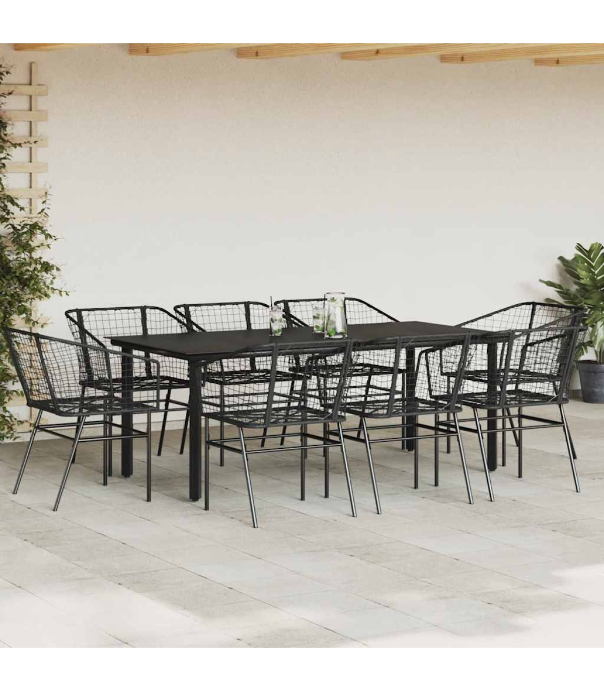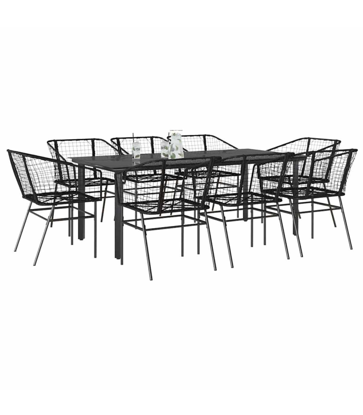 vidaXL 9 Piece Garden Dining Set Black Poly Rattan Glass