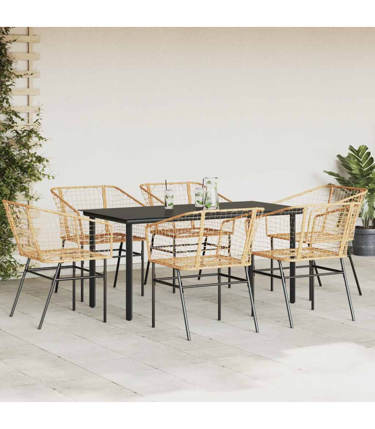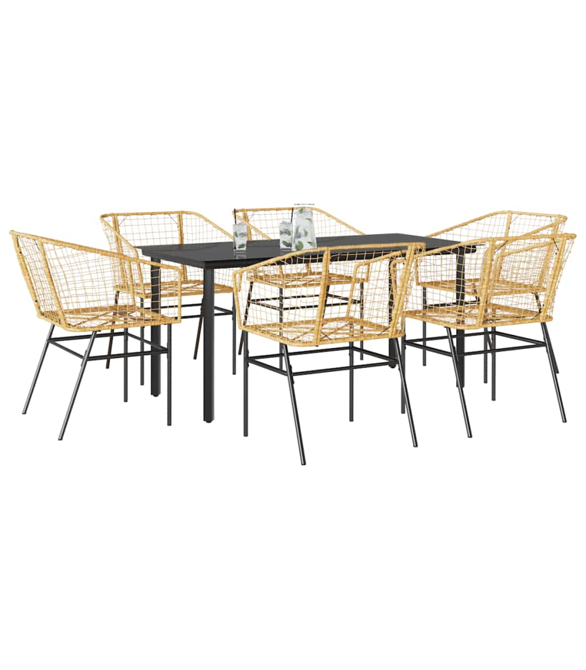 vidaXL 7 Piece Garden Dining Set Brown Poly Rattan Glass