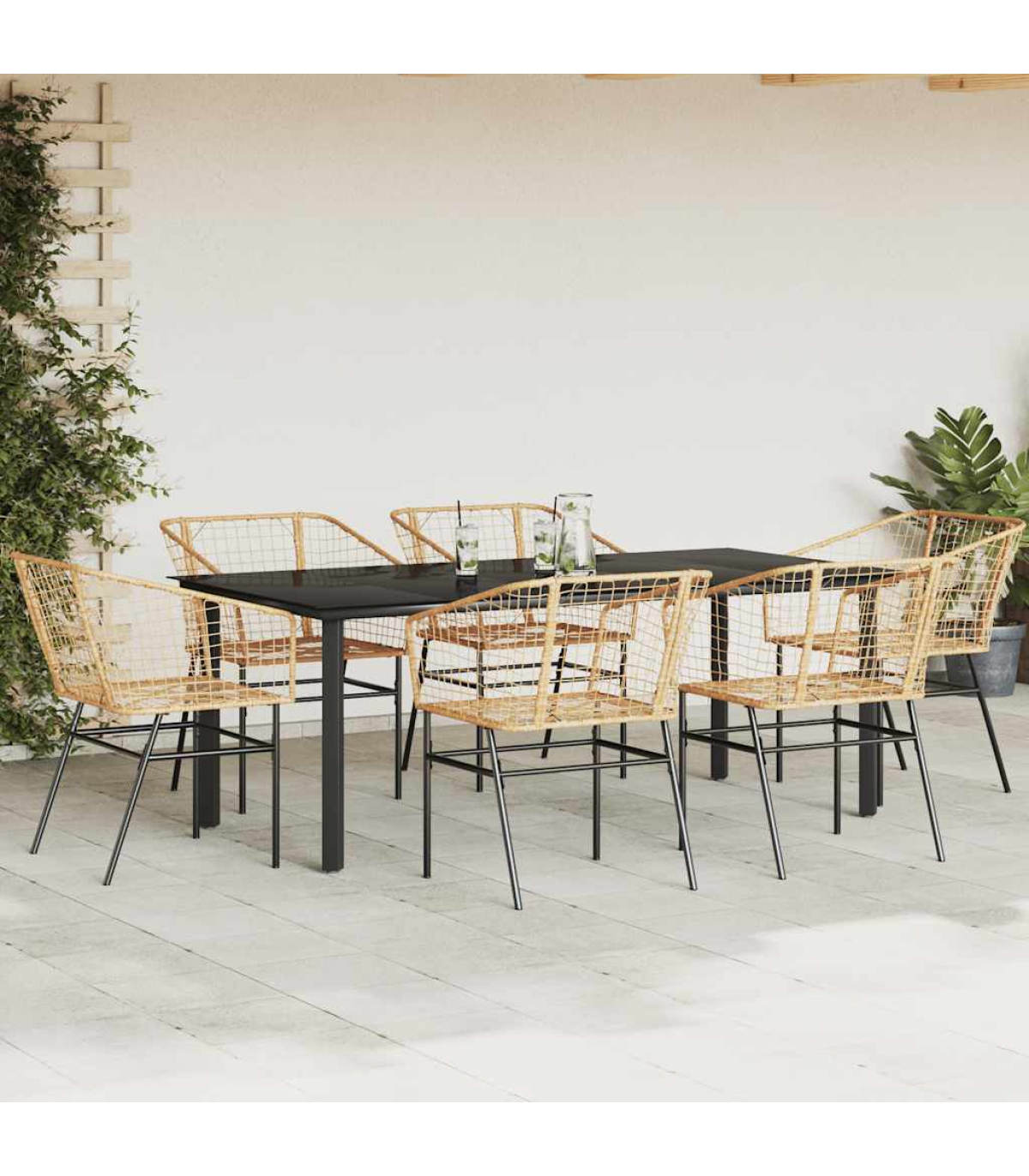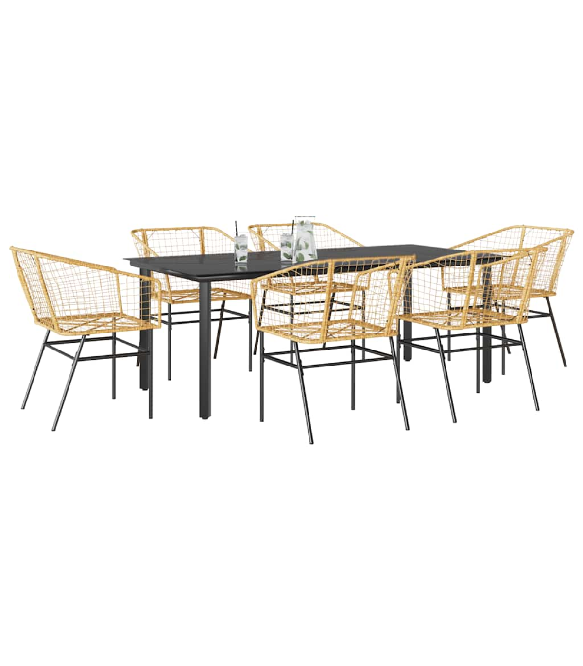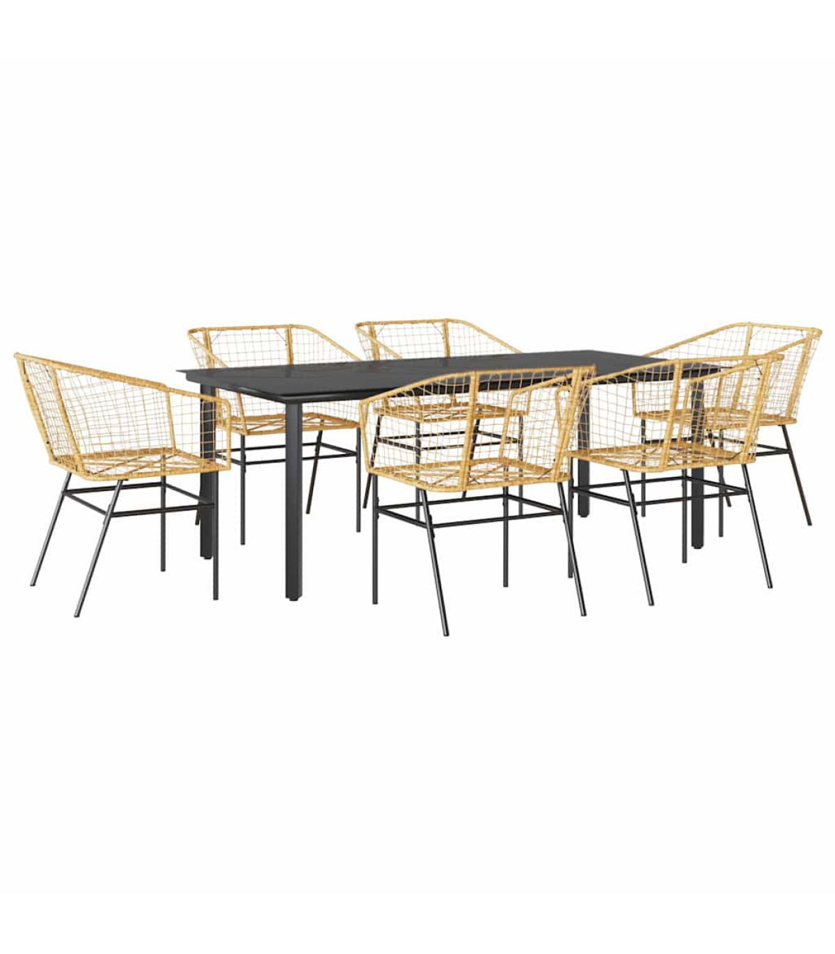 vidaXL 7 Piece Garden Dining Set Brown Poly Rattan Glass