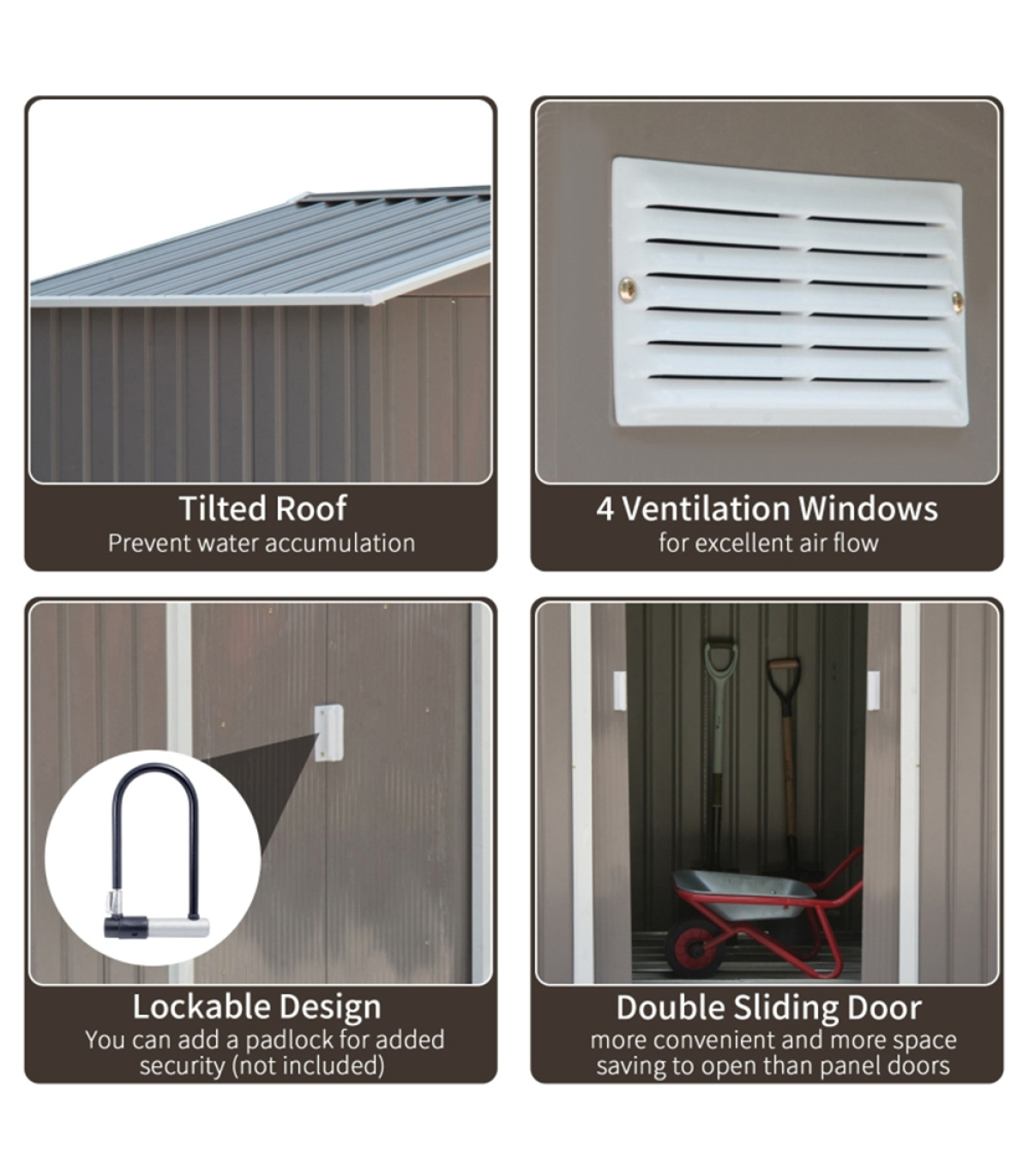 - Features: -Spacious storage space for garden tools, outdoor tools, equipment, and gardening gear