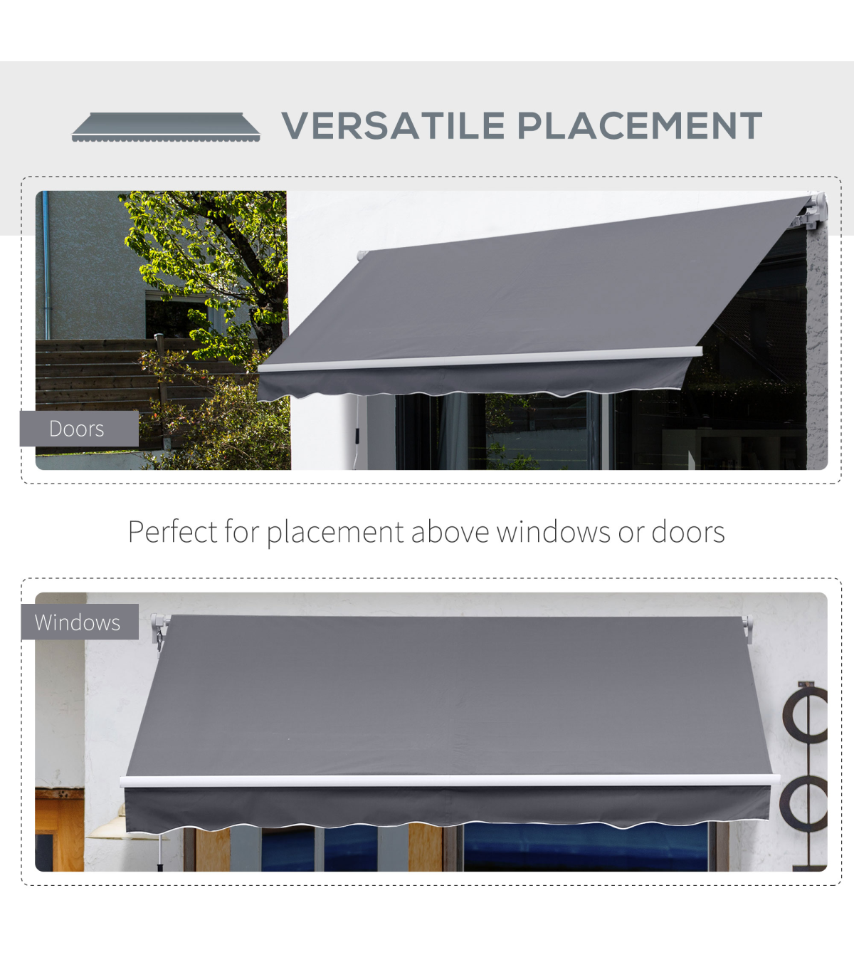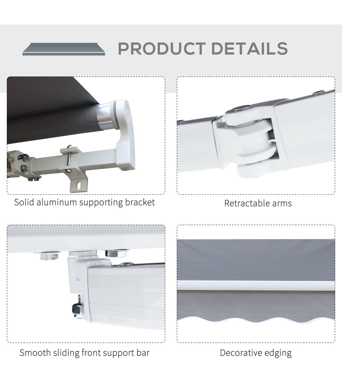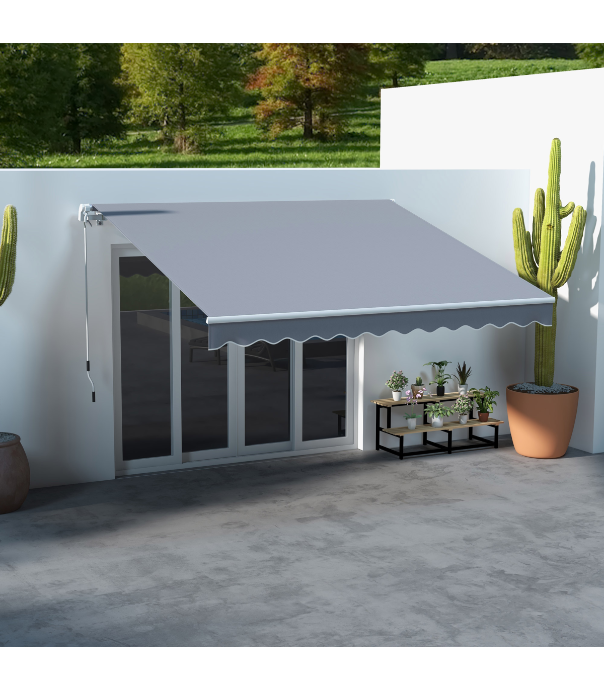 With a sturdy aluminum frame, this patio awning from Outsunny is ideal for providing shade. The reinforced frame and water-resistant polyester fabrics with PU coating make the awning superior in material and excellent in workmanship. It can be easily mounted on the wall with the included accessories. Our awning will create a nice and cool place in your patio and protect you from direct sunlight. Enjoy the beauty and protection with this awning at a leisurely afternoon.