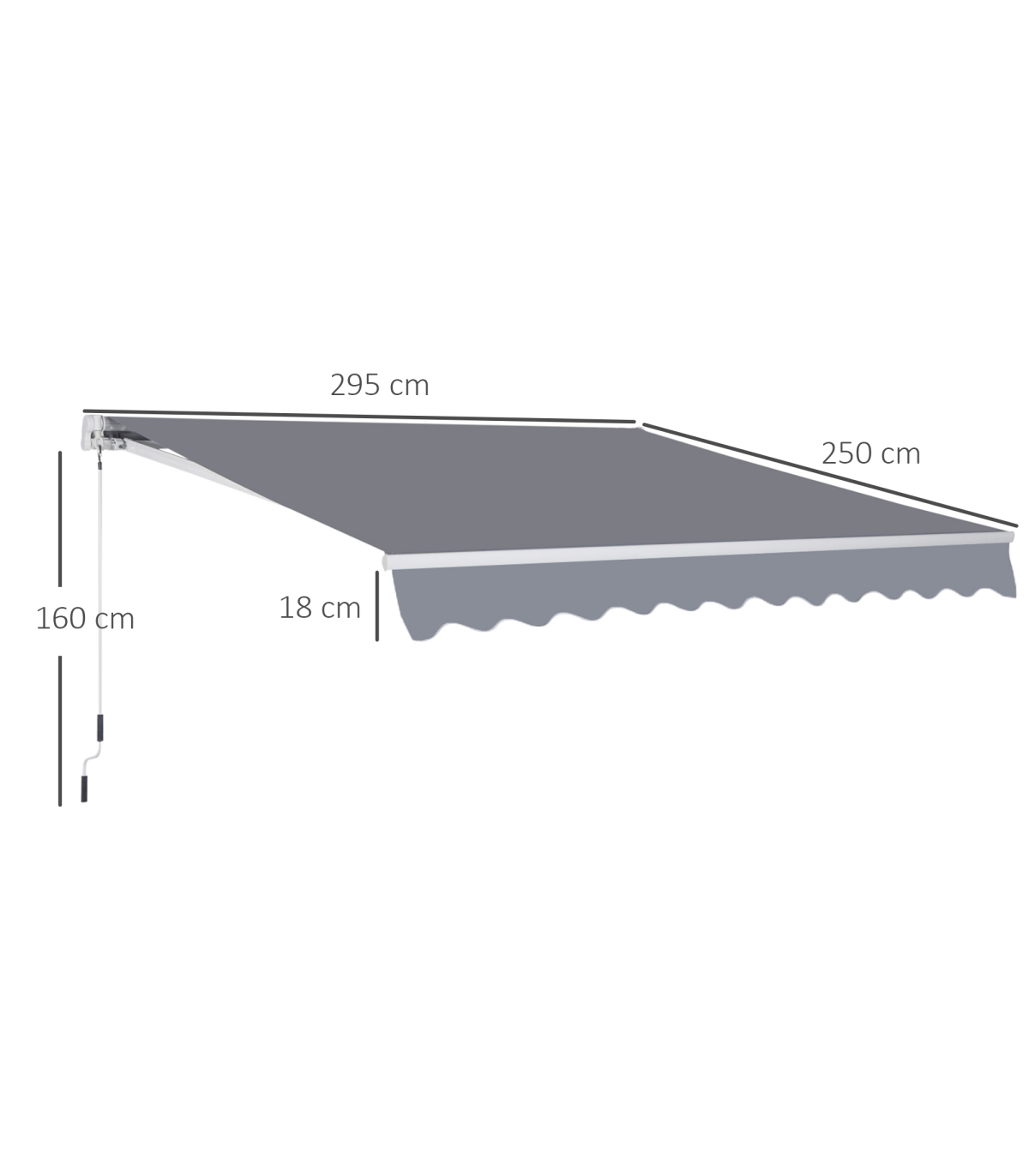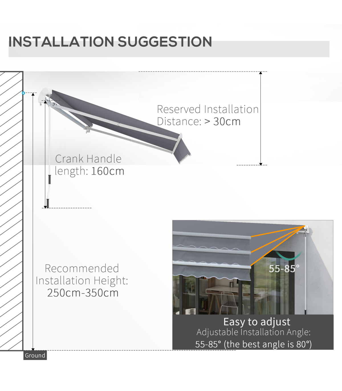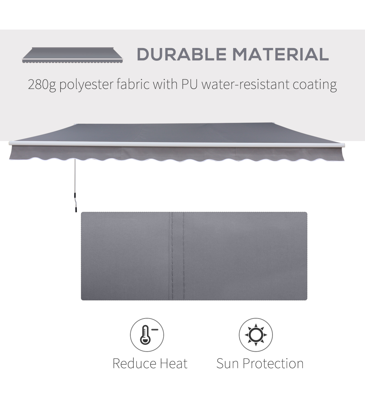 With a sturdy aluminum frame, this patio awning from Outsunny is ideal for providing shade. The reinforced frame and water-resistant polyester fabrics with PU coating make the awning superior in material and excellent in workmanship. It can be easily mounted on the wall with the included accessories. Our awning will create a nice and cool place in your patio and protect you from direct sunlight. Enjoy the beauty and protection with this awning at a leisurely afternoon.