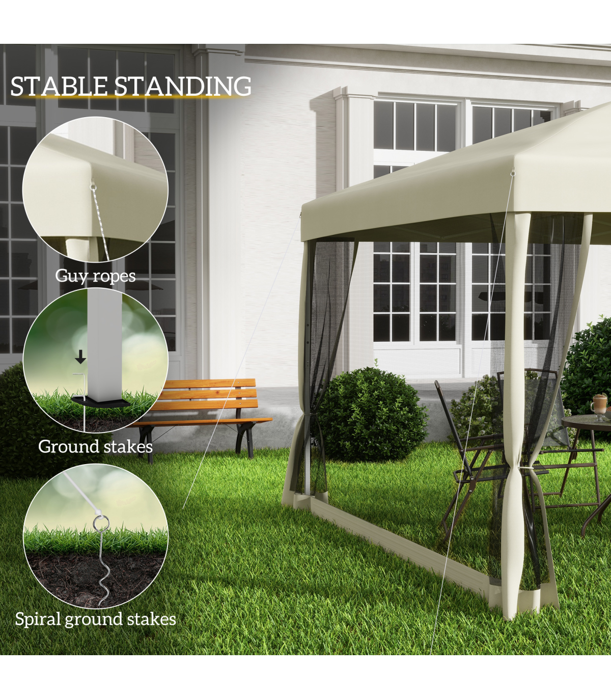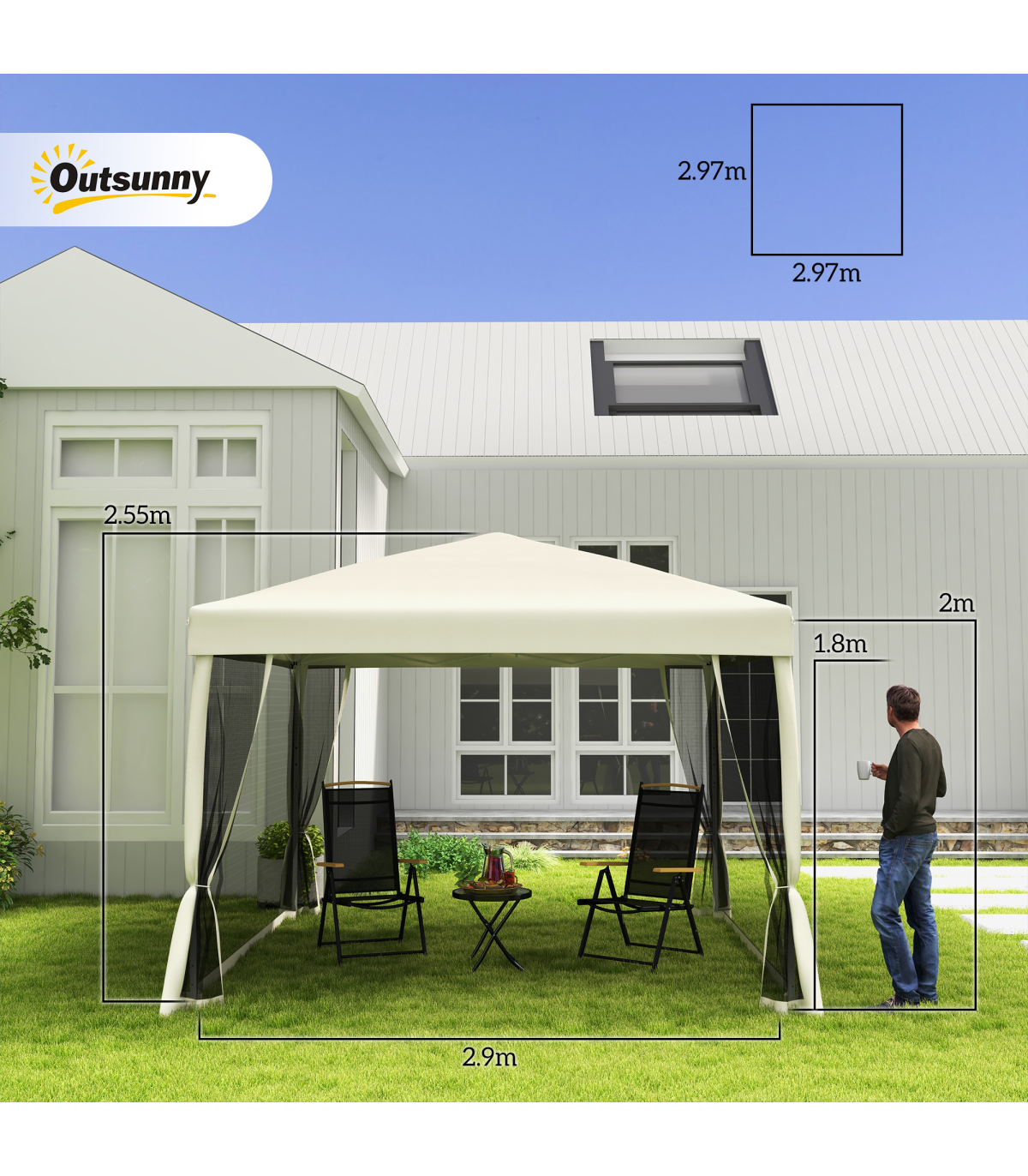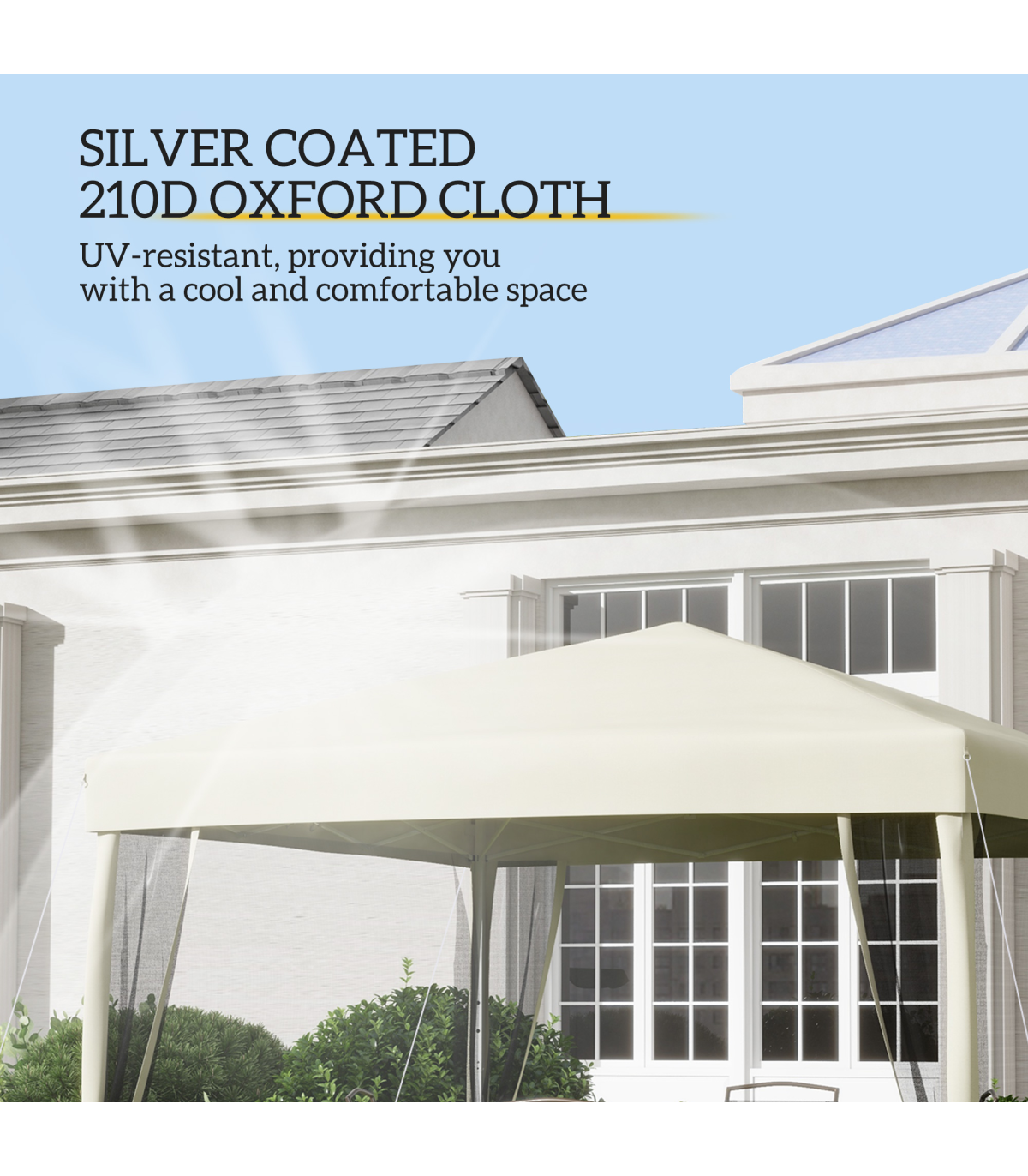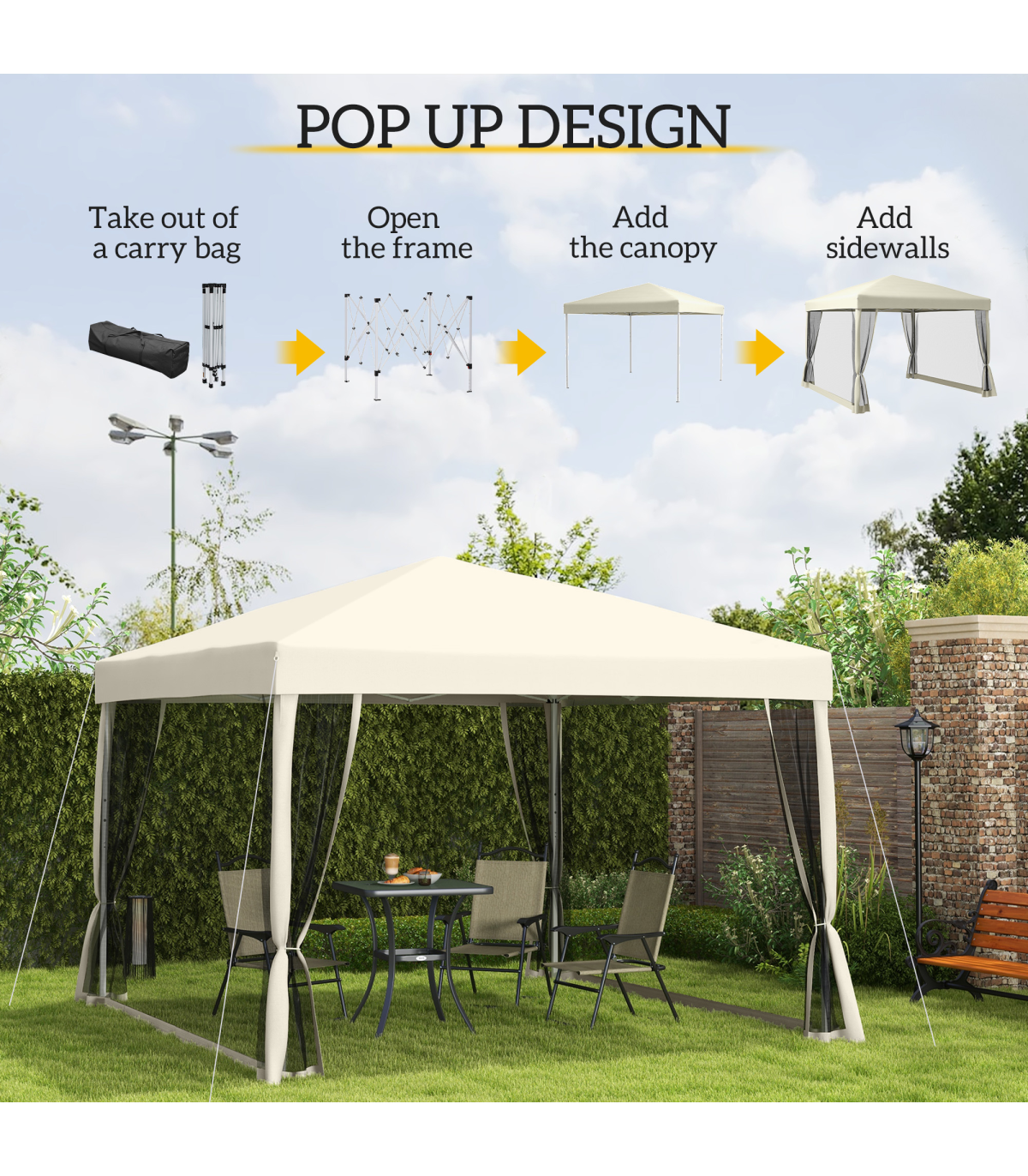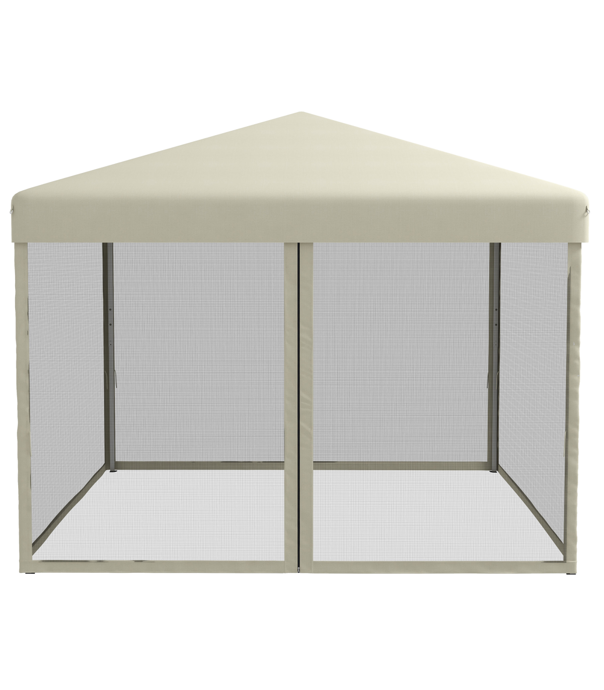 This Outsunny mesh screen pop up tent is great for camping, backyard parties, events, the beach, or can even be used as a nice vendor's booth. Constructed from metal, the frame provides both strength and stability, and has a durable mesh screen that encloses all four sides so this tent is sure to keep the bugs out. This gazebo can be set up within minutes and will be a great addition to your lifestyle.