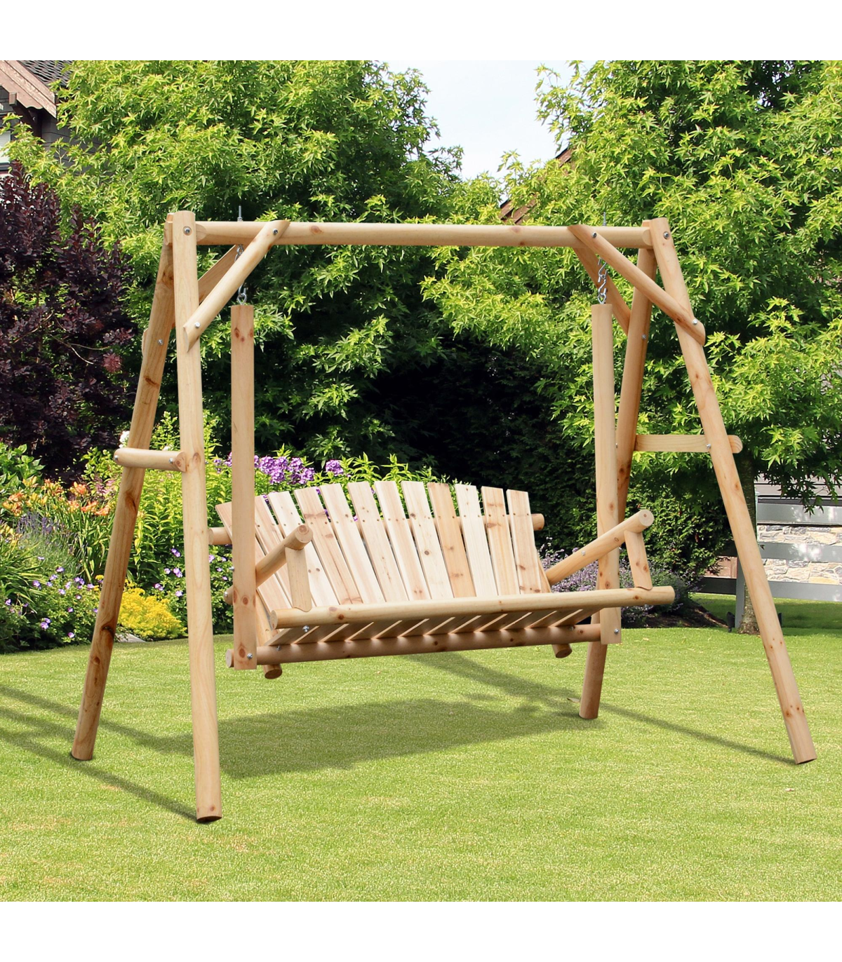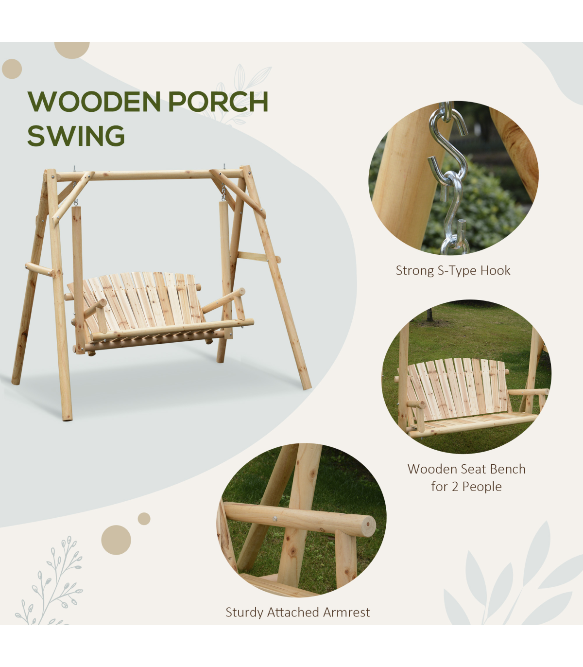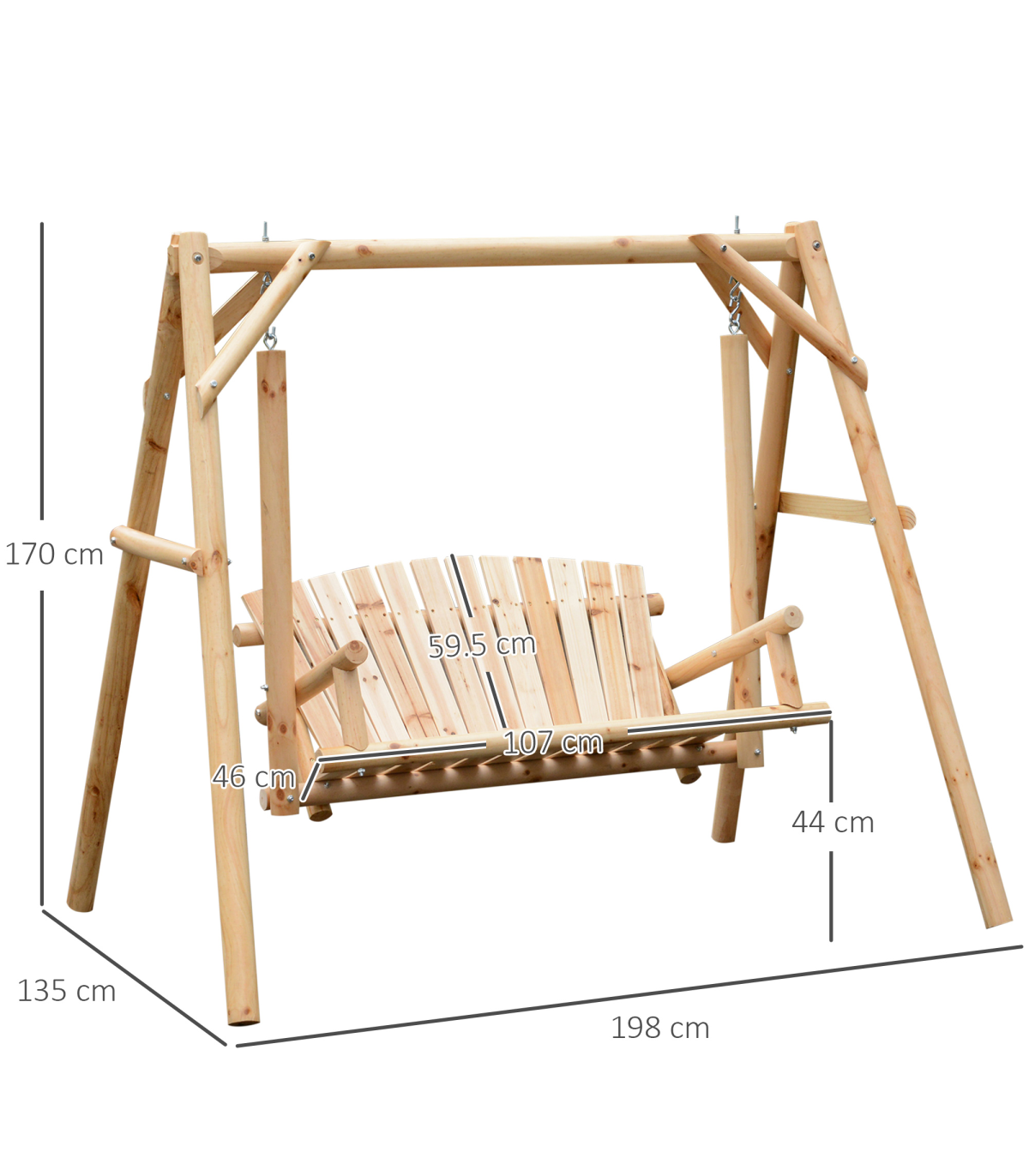 Relax the day away in style with this swing bench from Outsunny. Crafted from solid fir and Pine wood, it is durable and sturdy, allowing it to be a mainstay in your garden and outdoor furniture for years to come. The painted finish makes it resistant to rotting, decaying and damage from insects and bugs. Crafted into a comfortable design, with a curved back and wide armrests, the seat allows you to relax for hours on end with no problems. Finished with sturdy hooks to hang up, it is the perfect balance of style meets functionality.