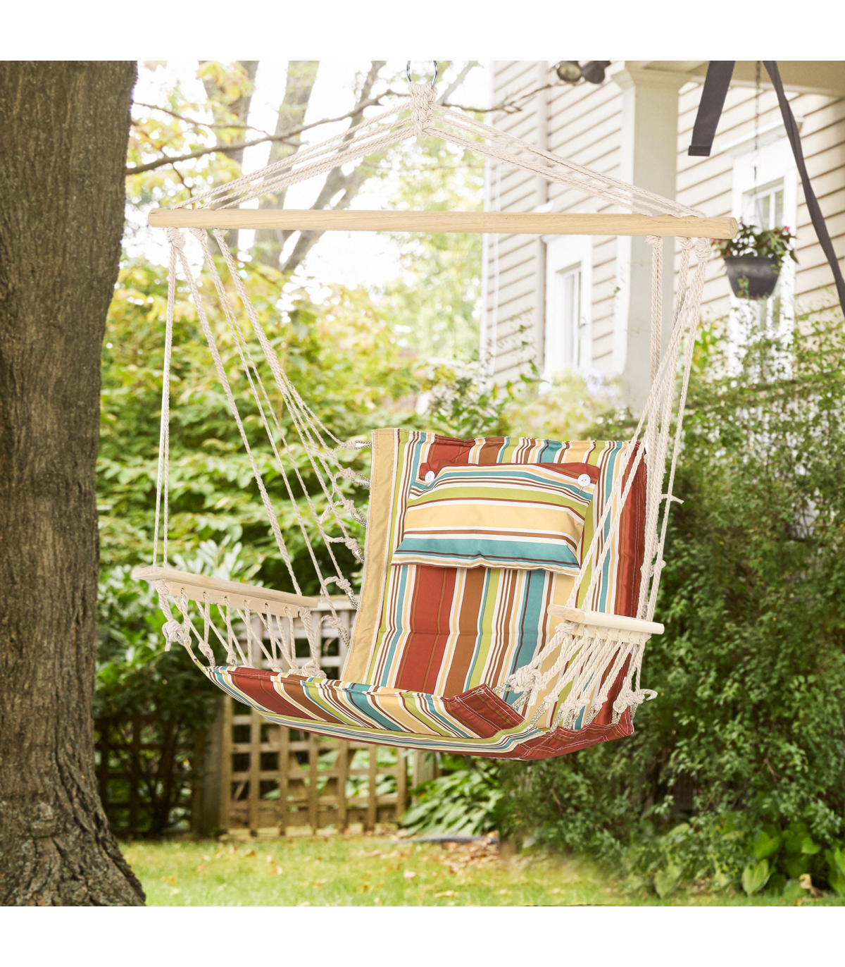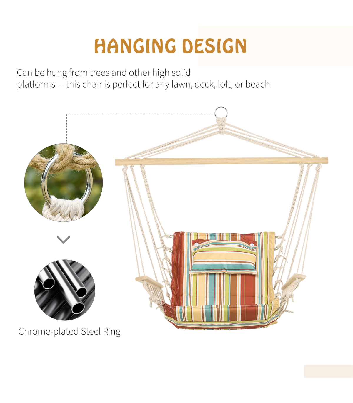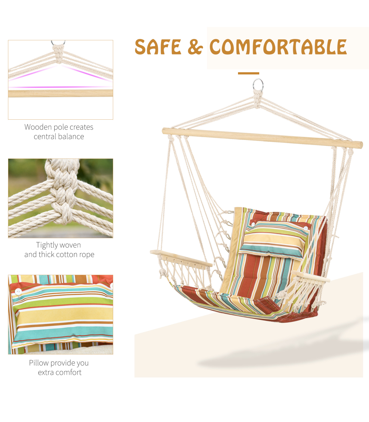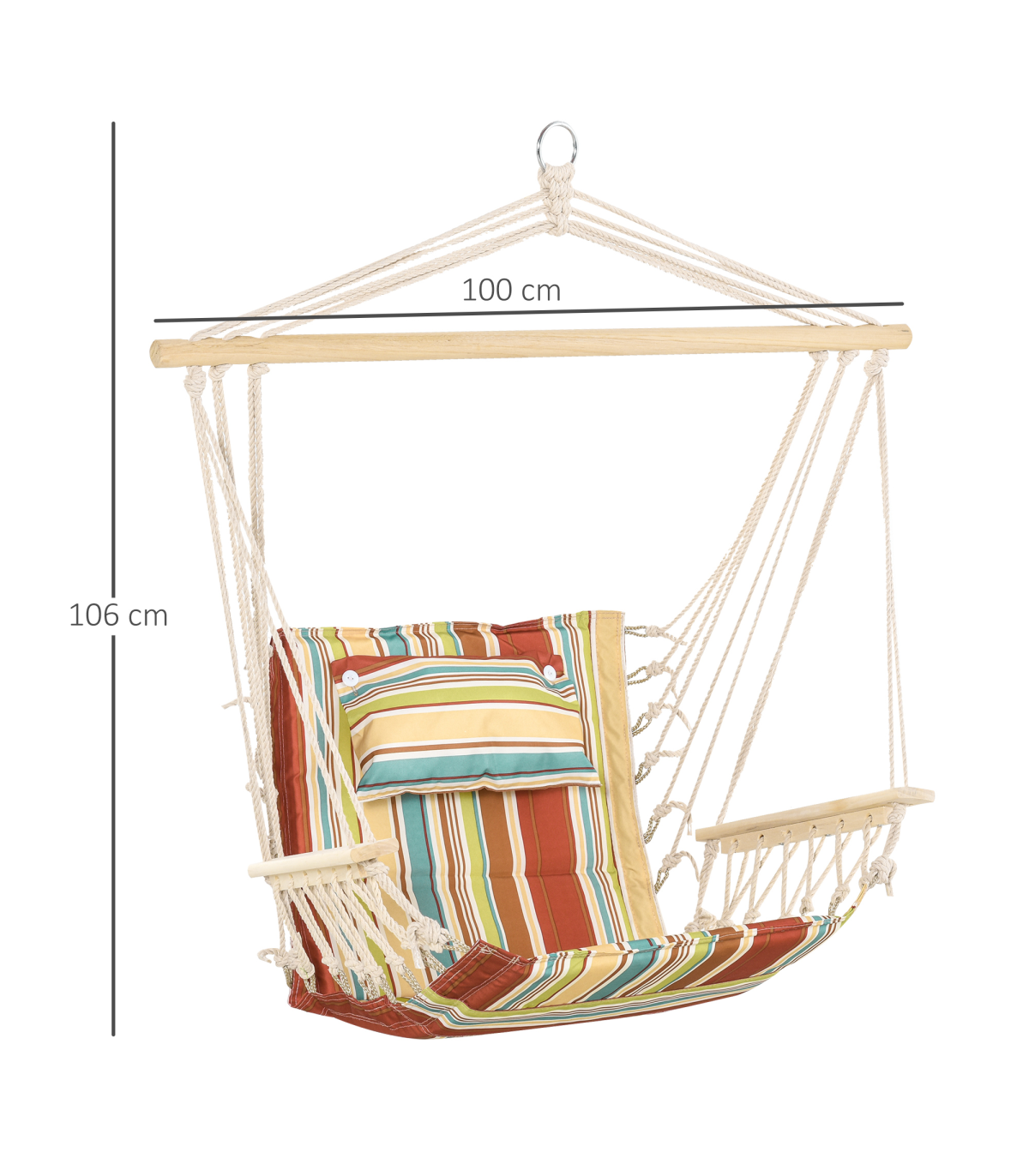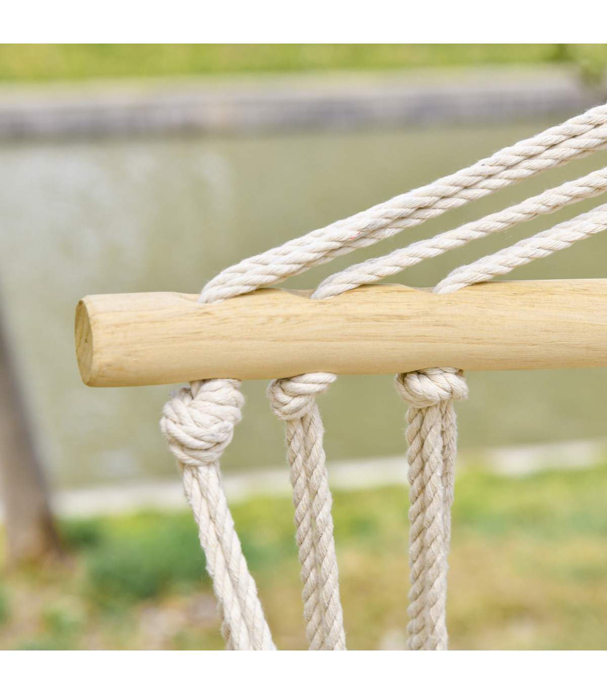 Cocoon yourself in comfort, creating the ultimate hideaway place outdoors with this hammock seat from Outsunny. Its rigid structure, which handles up to 105kg, is formed from thick high-quality grade rope for safety, with the seat securely attached for full support. It's finished with wooden armrests and a wooden bar on the top to keep the balance central and stable. A spot you'll love sinking into for a long afternoon under the sun.