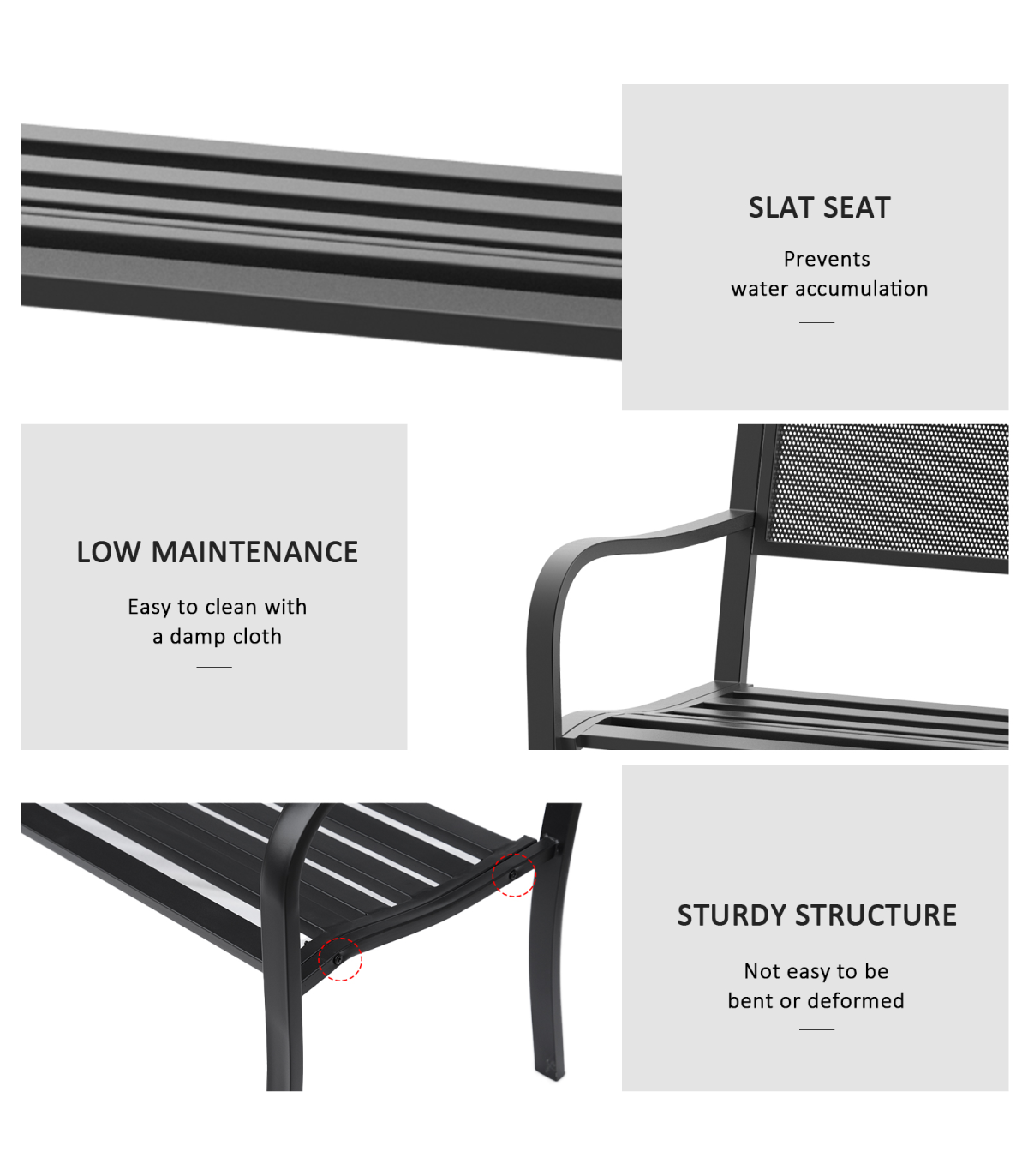 2 Person Garden Bench, Steel-Black