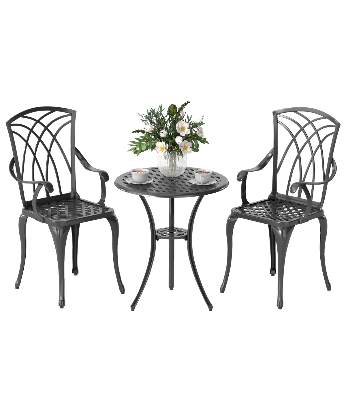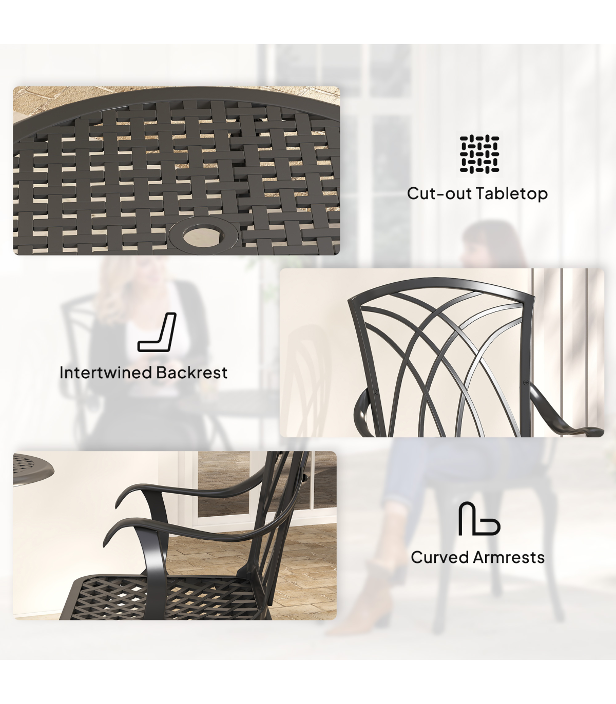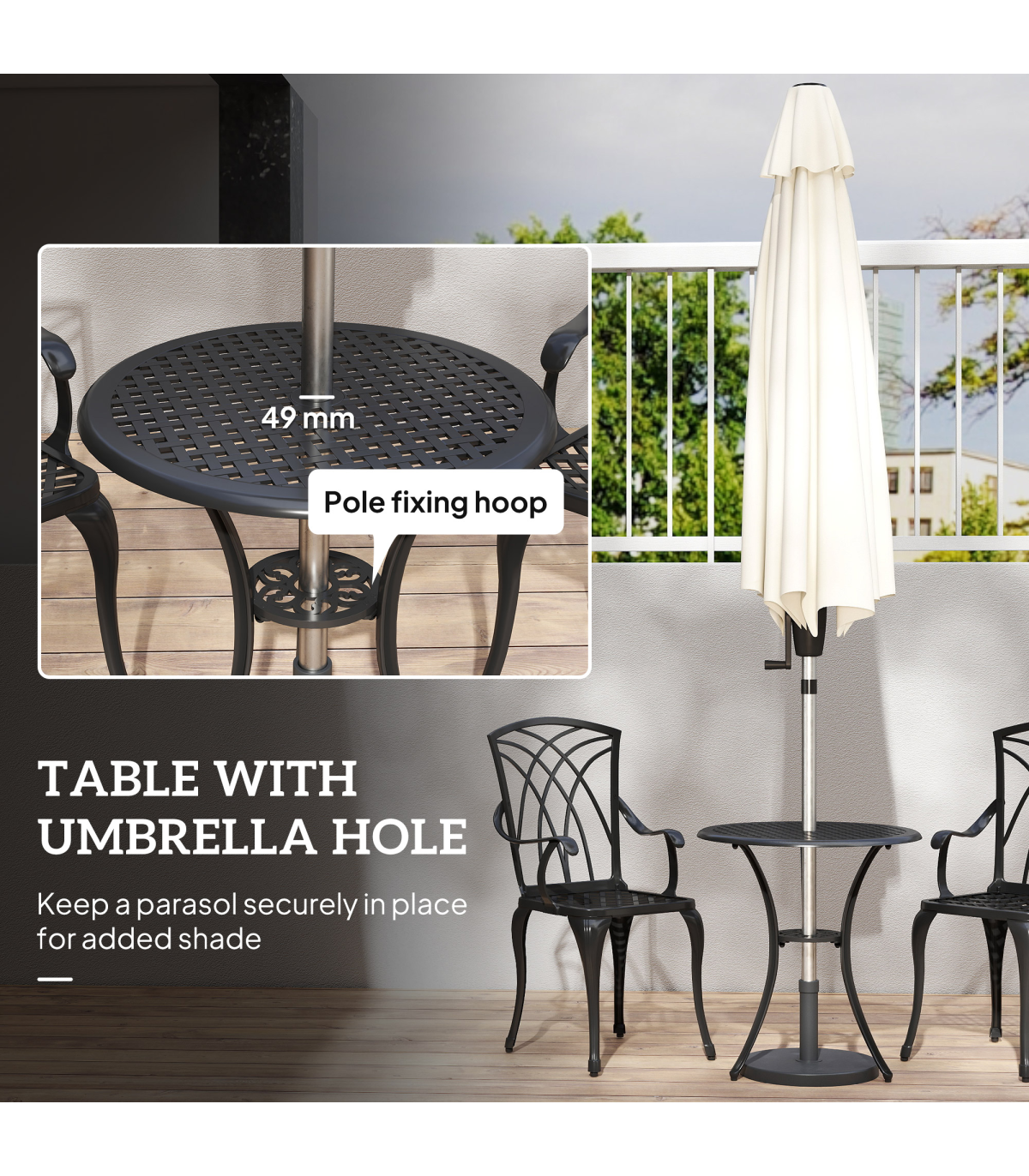 If you plan on spending hours in the sun, make sure you have a place to sit. Make of high-end cast aluminium, this table and chairs set is weather-resist. A built-in umbrella hole in the center of the table, 3.5cm wide diameter suits for most sunshade. So that it's suitable for serving food, playing games, having conversation. The ability to be set up anywhere make this table a must have for enjoying the fun in the sun.