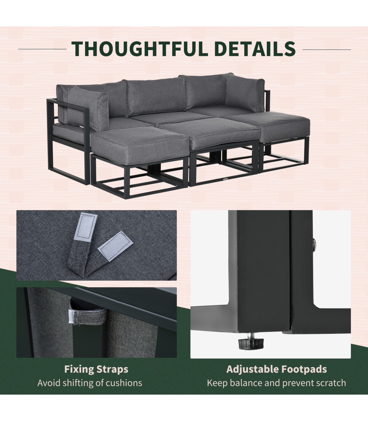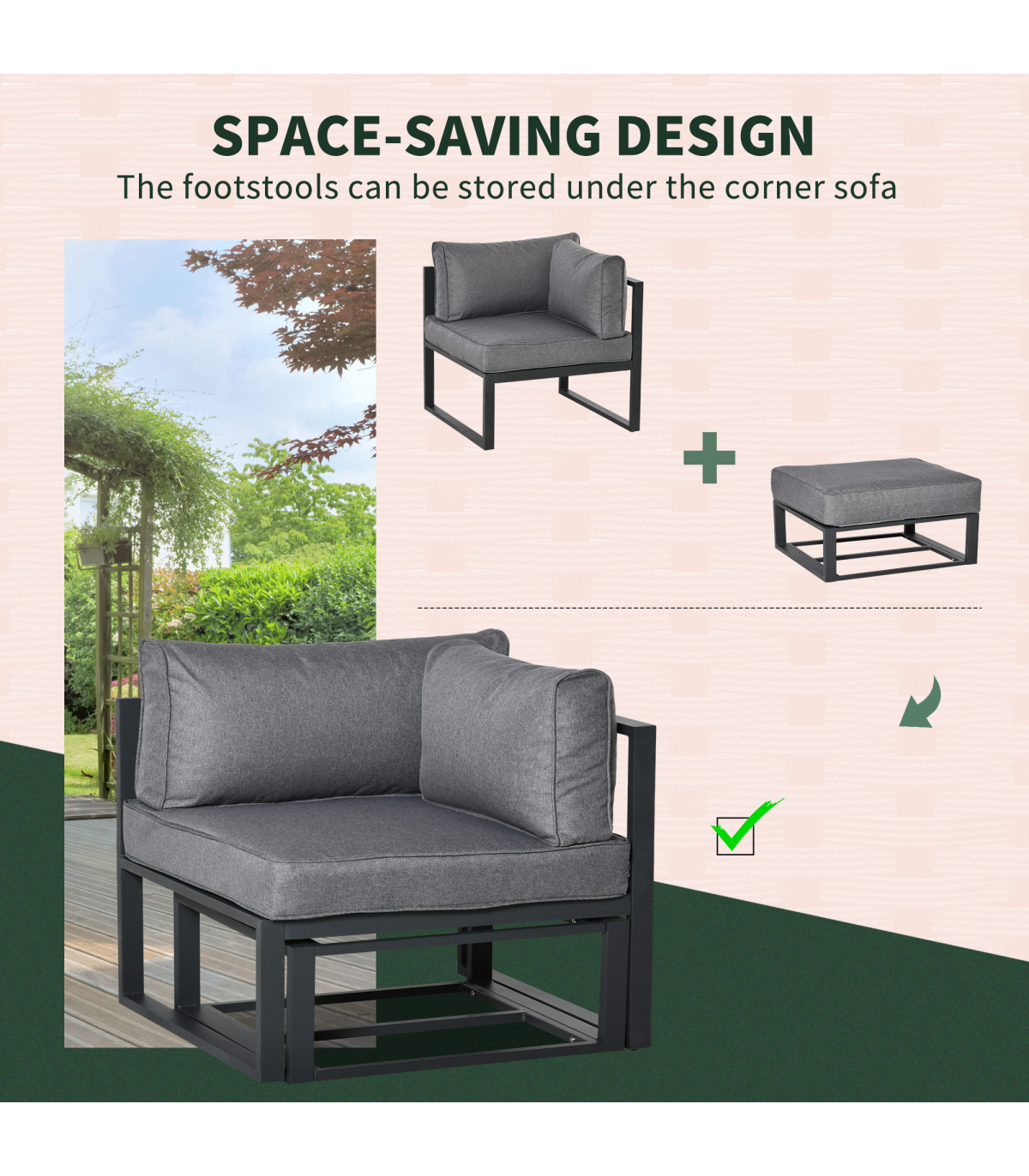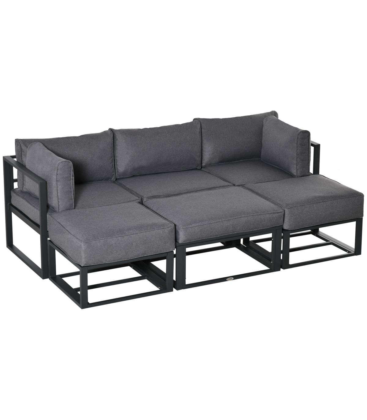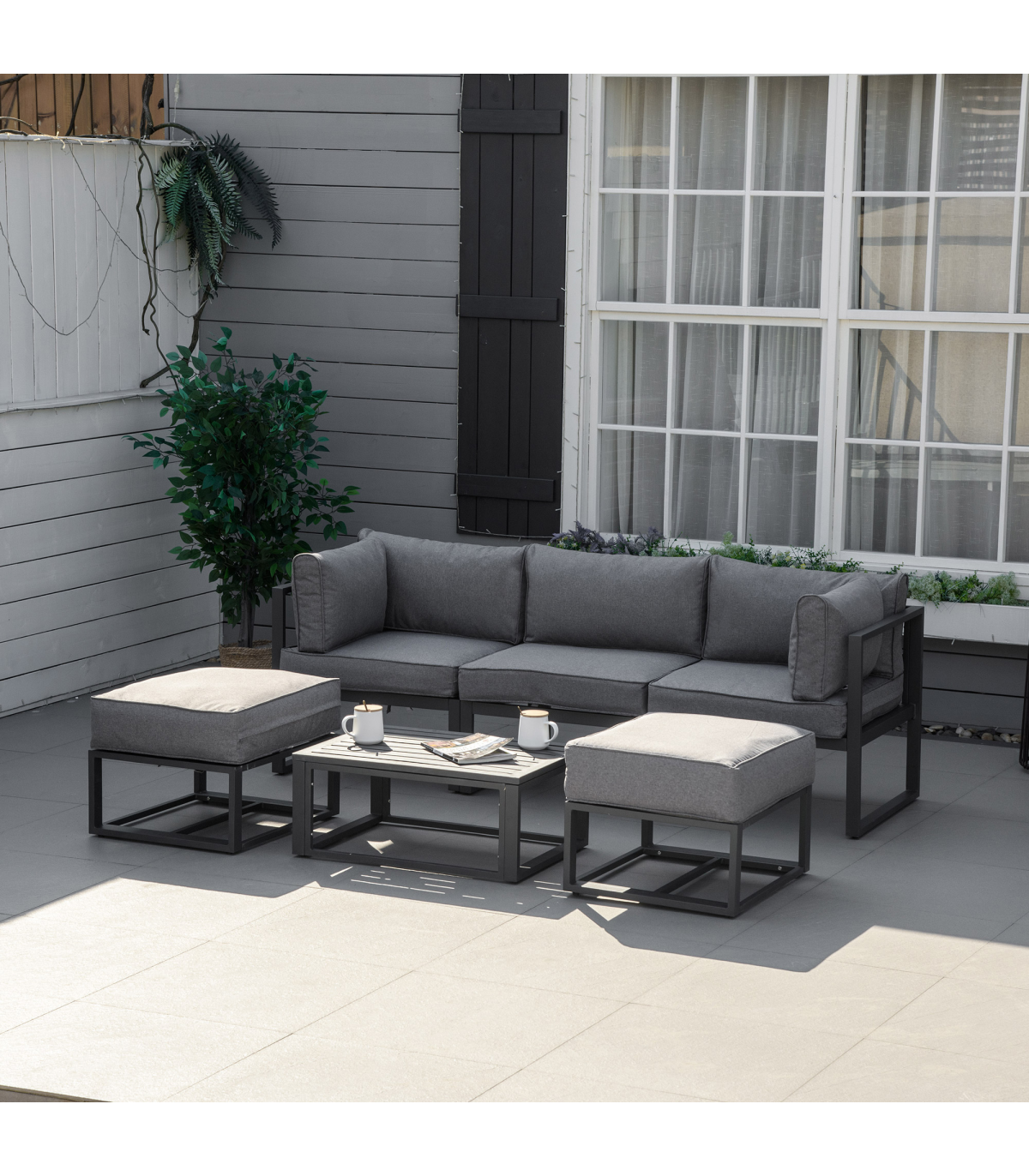 - - 6 Piece Set: 2 x Corner Sofa, 1 x Middle Sofa, 1 x Coffee Table, 2 x Footstool