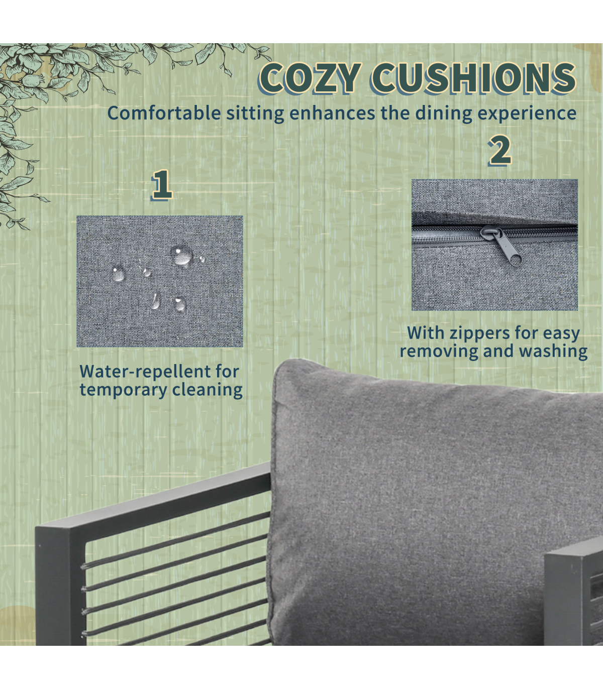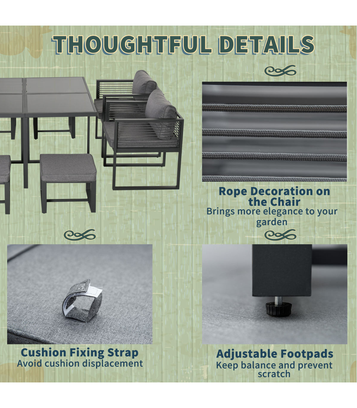 Use this fashionable garden dining table and chair set to create a warm and convenient dining space in the outdoor garden. The aluminium frame is sturdy and also lightweight and can be used for a long time. The tempered glass tabletop can save you a lot of cleaning time. The 8 seater garden table set can seat up to eight people, providing a comfortable place for your outdoor dining. Come and have this garden furniture set, enjoy the outdoor fun with family and friends.
