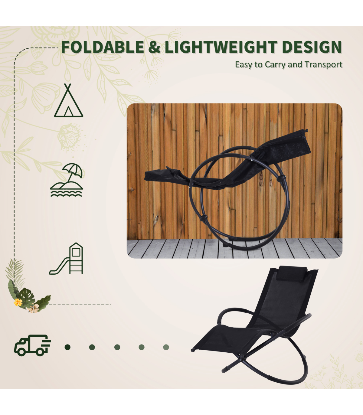 Bring a futuristic feel to your garden furniture with this orbital lounger from Outsunny. Made from powder-coated steel in a unique shape, this zero-gravity chair is ideal for relaxing for hours comfortably, allowing your weight to be evenly distributed and giving you all the support you need. Strong and sturdy, it features a breathable texteline cover and can be folded up to move and store easily. Finished with padding on the bottom and arms, this chair is perfect for relaxing in your garden or taking with you to the park, beach and more.