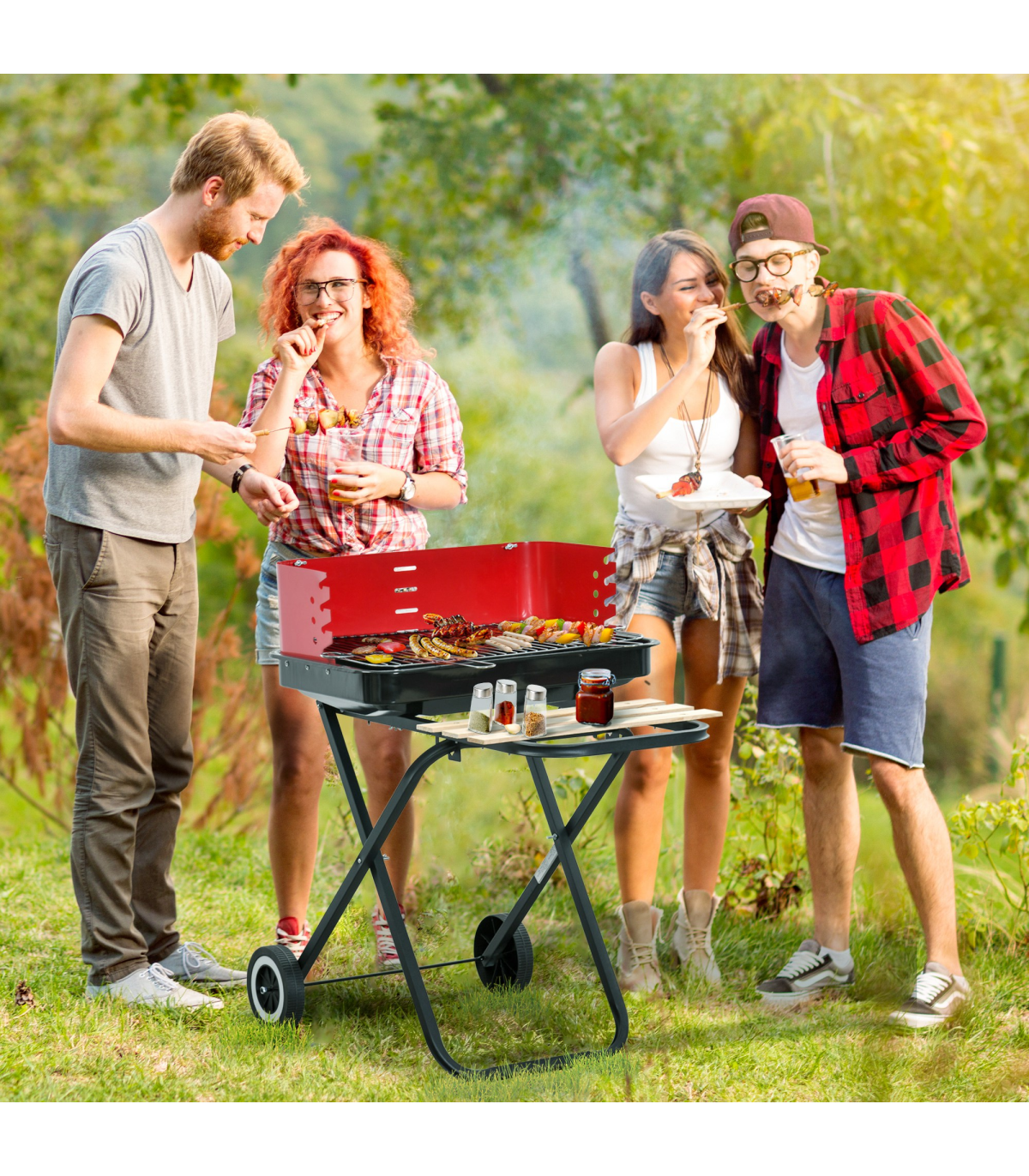 You are looking at a great Charcoal BBQ which offers the finest in design and quality. The grill is the perfect charcoal grill with wheels. Constructed of high temperature black enamel and high temperature powder, the foldable design allows you to easily move your barbecue to wherever you want to go.
