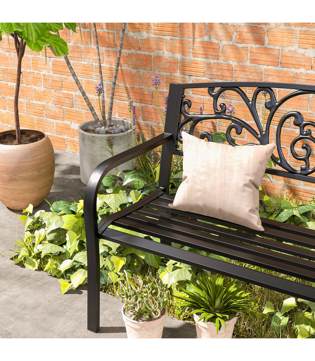 2-Seater Garden Bench, Steel-Black