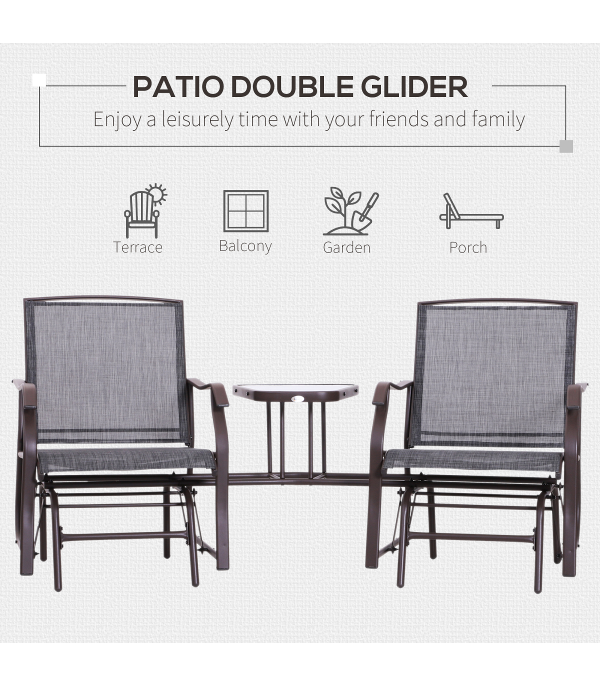 Double Glider Rocking Chairs Garden Table High Back Conversation Duo Set