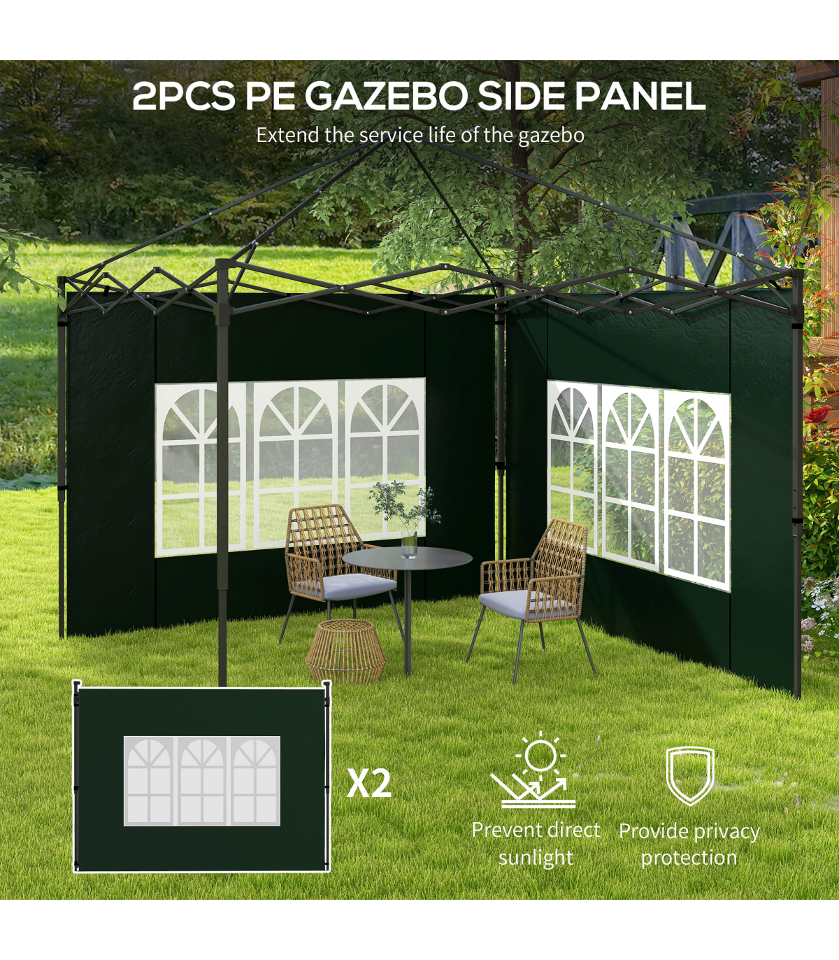 Outsunny Gazebo Side Panels for 3x3(m) or 3x6m Gazebo Canopy, 2 Pack, Green